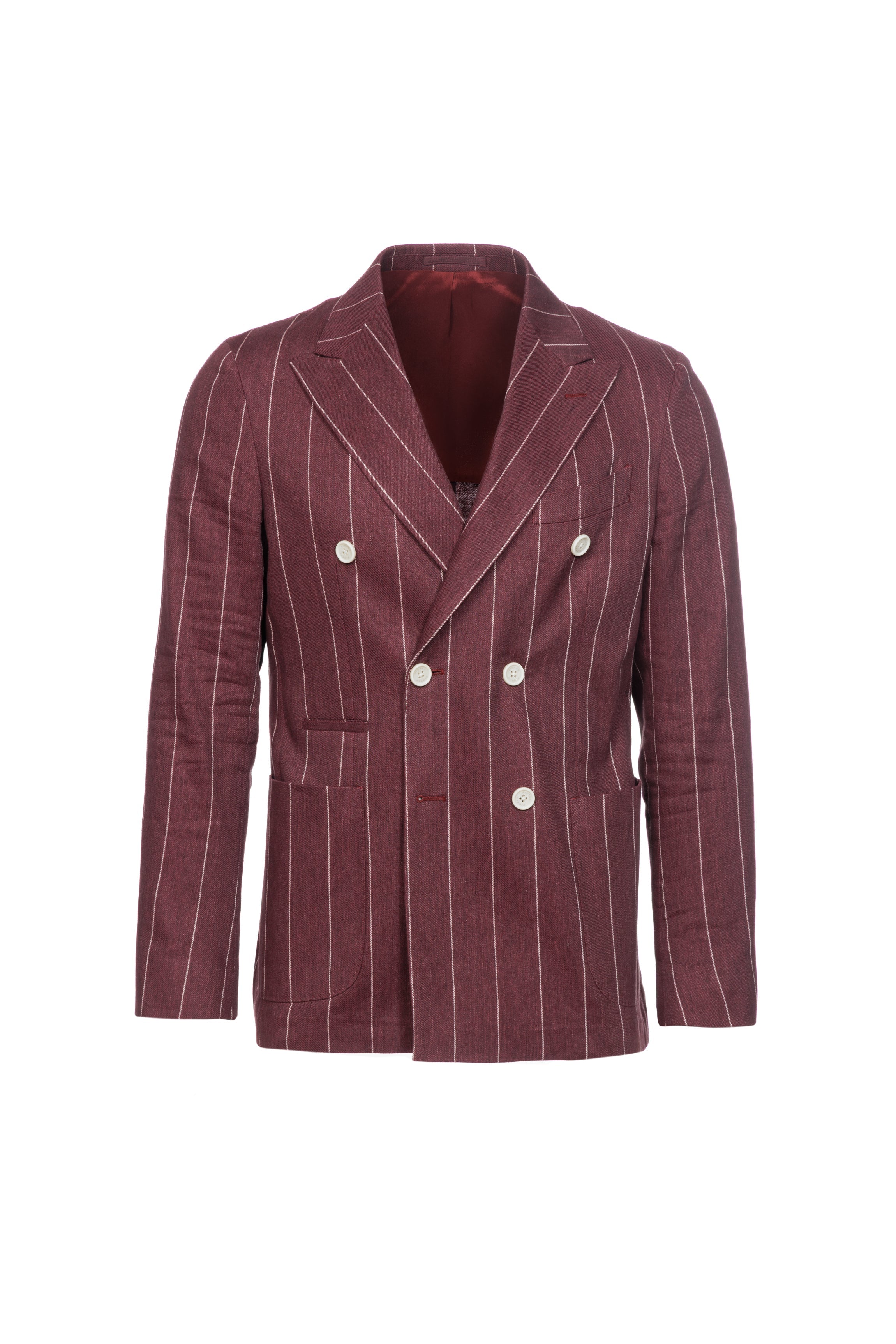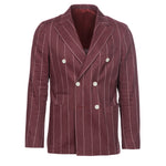 Giacca Venezia doppiopetto in lino e cotone gessata bordeaux