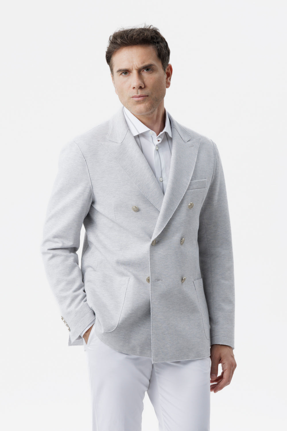 Giacca Siracusa doppiopetto in cotone stretch con taglio vivo e tasche applicate grigio