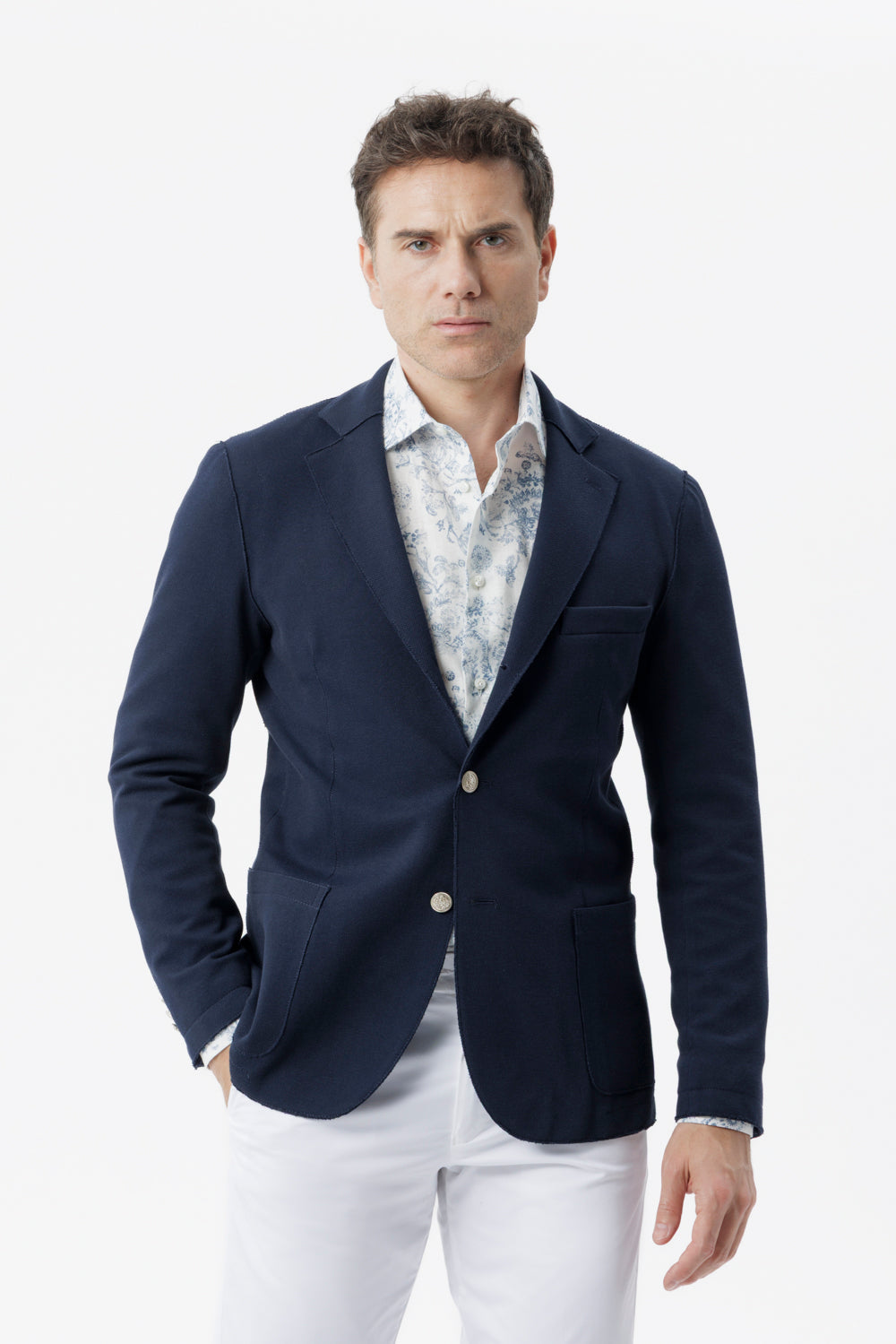 Questa giacca monopetto rappresenta l’unione tra sartorialità contemporanea e funzionalità quotidiana. Il tessuto in cotone elasticizzato si adatta con naturalezza ai movimenti del corpo, offrendo una vestibilità impeccabile e una piacevole sensazione di leggerezza. L’assenza di fodera sul busto aumenta la traspirabilità, rendendola perfetta per le stagioni intermedie o per ambienti dinamici.