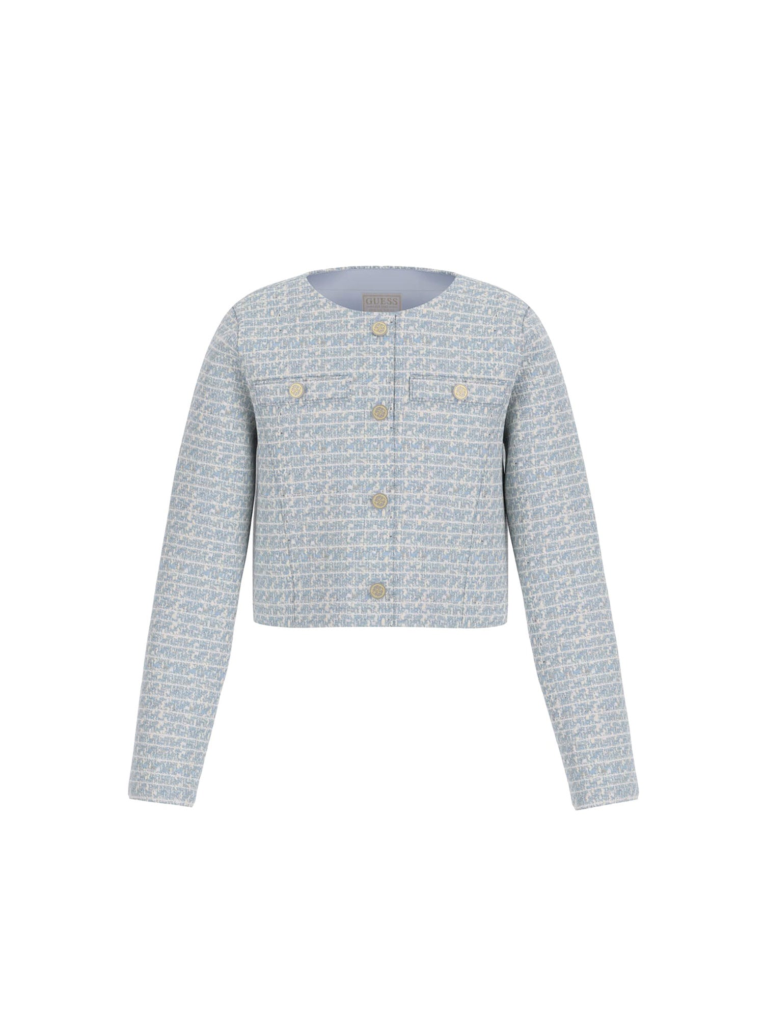 Giacca Guess bambina, un capo elegante e moderno, perfetto per aggiungere un tocco di classe al guardaroba. Il capo presenta una chiusura frontale con bottoni dorati e una trama delicata che lo rende adatto per diverse occasioni. Con una silhouette corta, questo capo si distingue per i suoi dettagli raffinati, come le tasche applicate sul davanti e i bottoni con il logo.