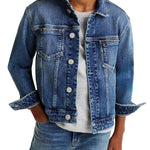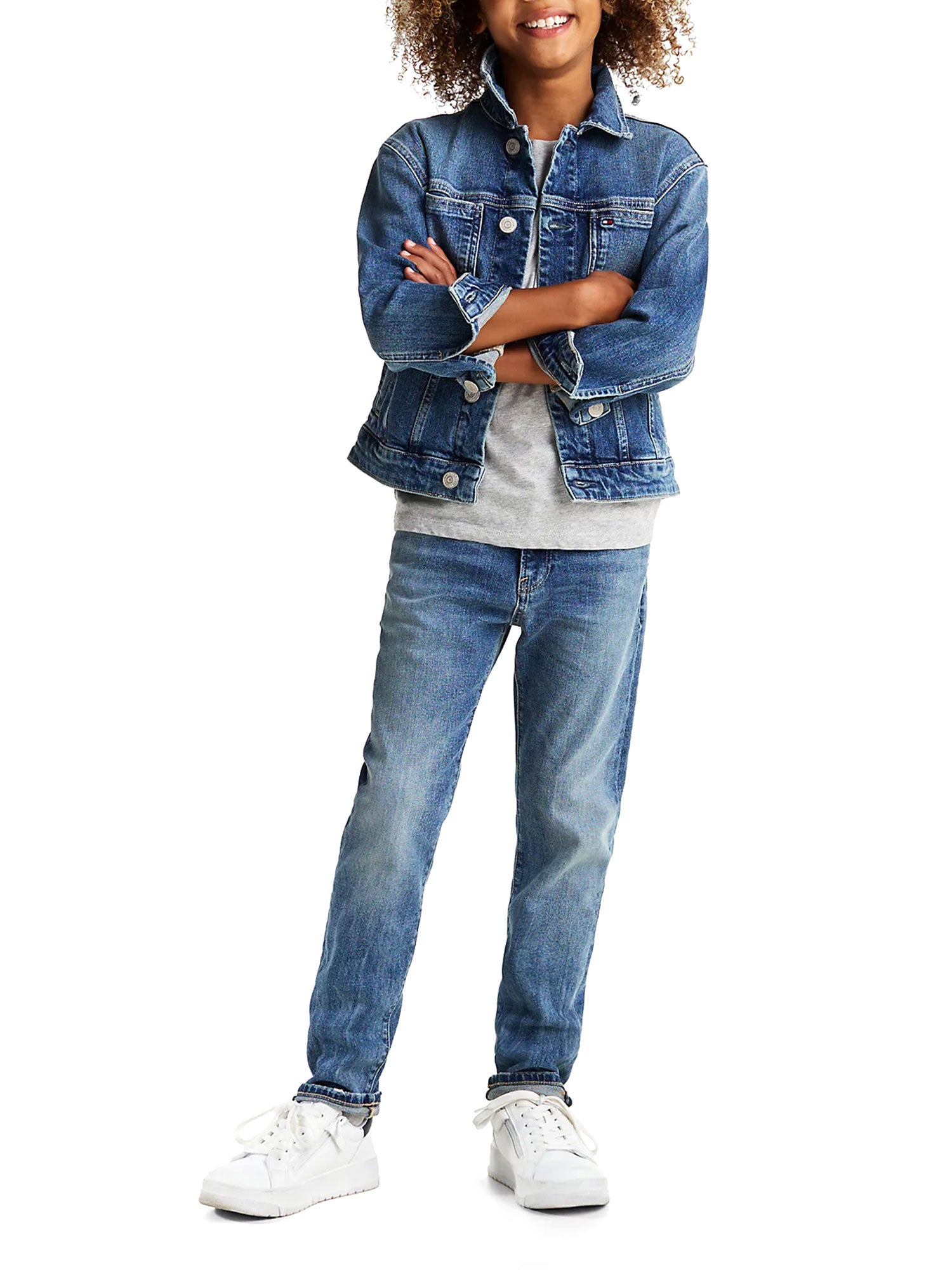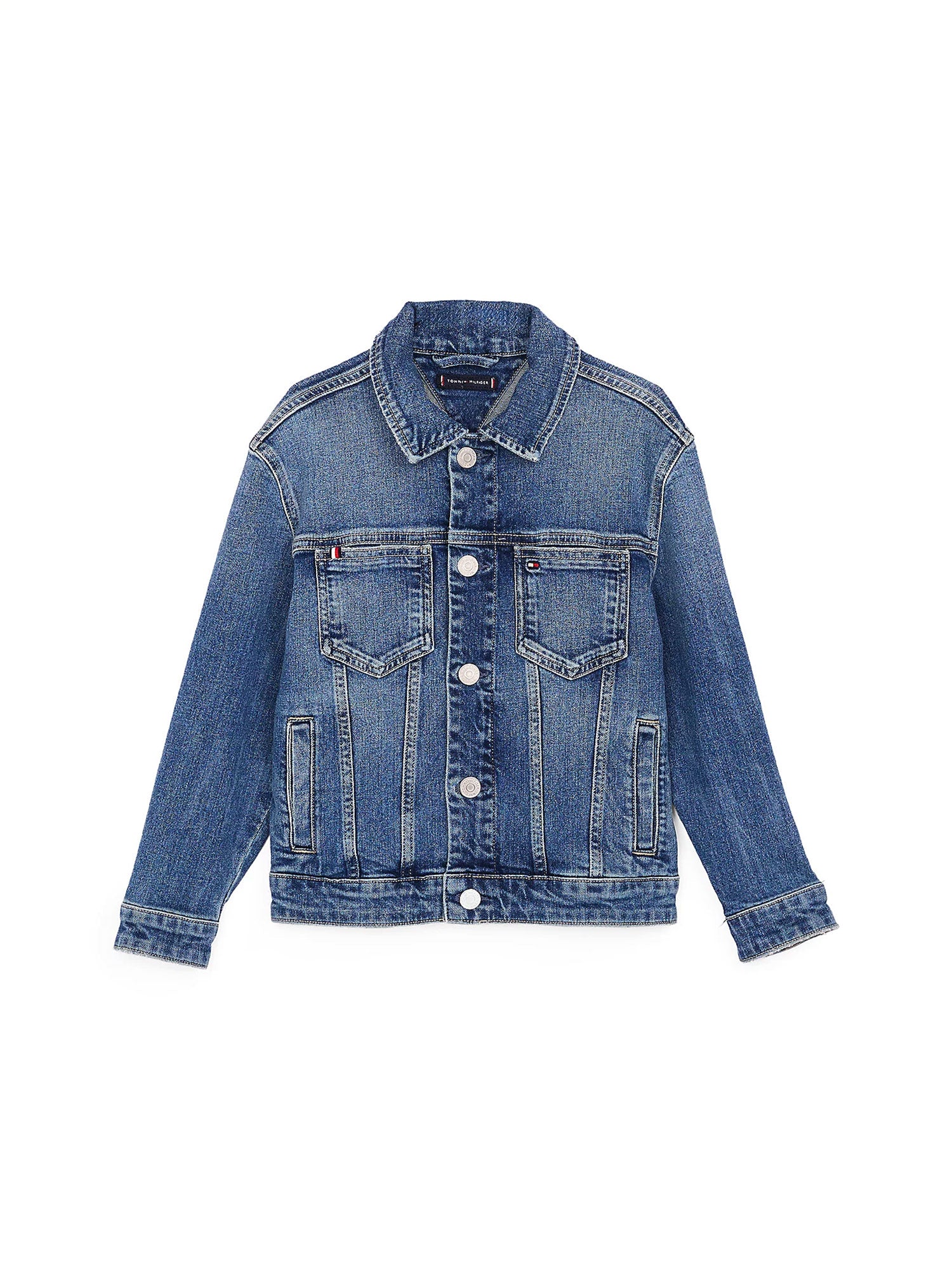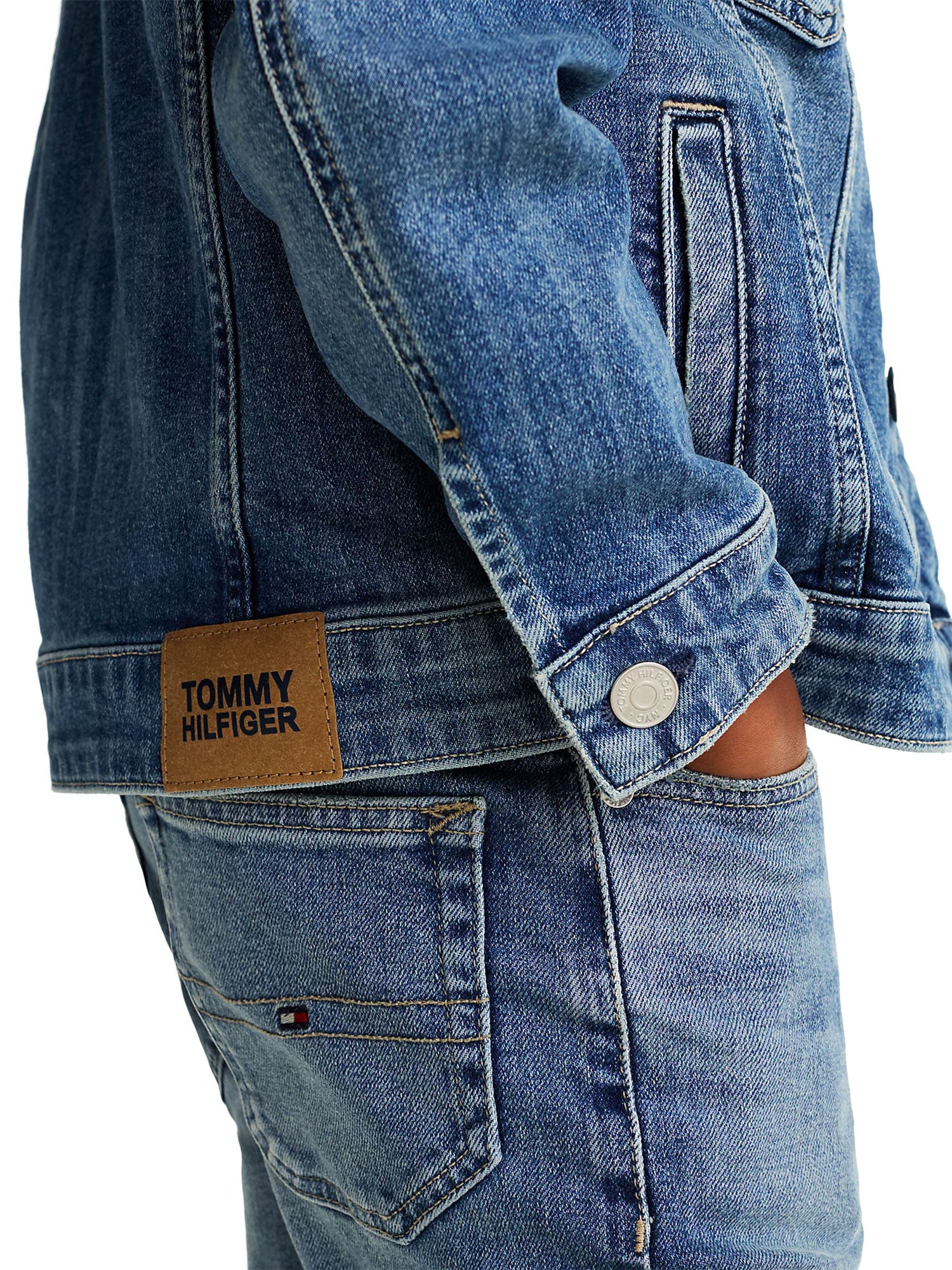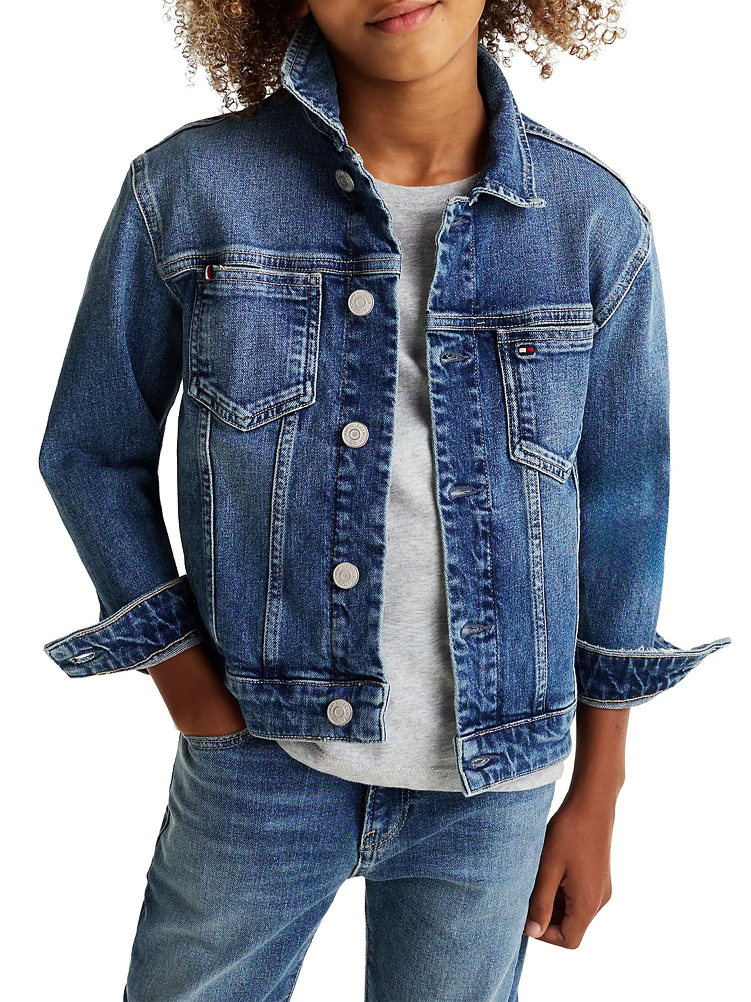 Giacca trucker in denim di cotone stretch Tommy Hilfiger per bambino. Stile retrò, si caratterizza per il taglio oversize di tendenza e i dettagli con scoloriture.