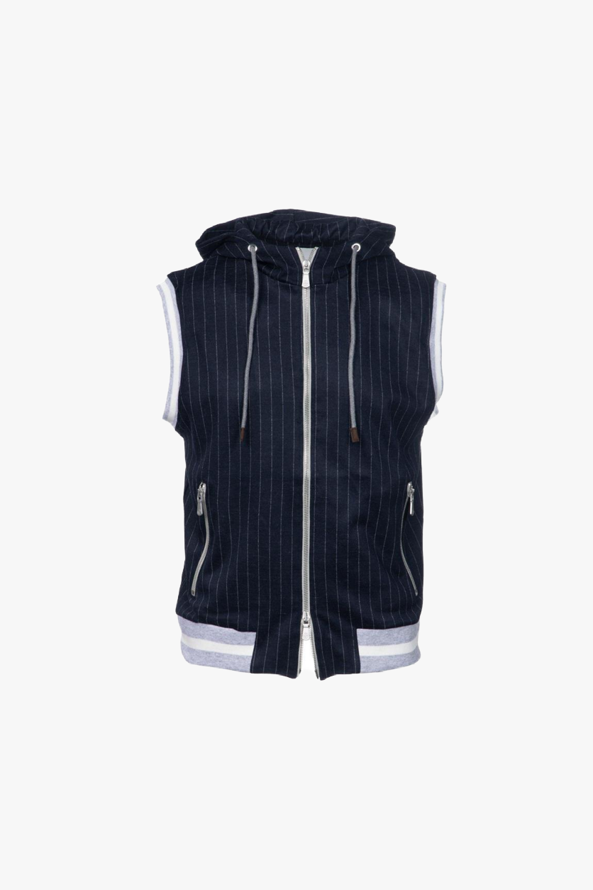Per un look completo, abbina il gilet al jogger gessato coordinato.
