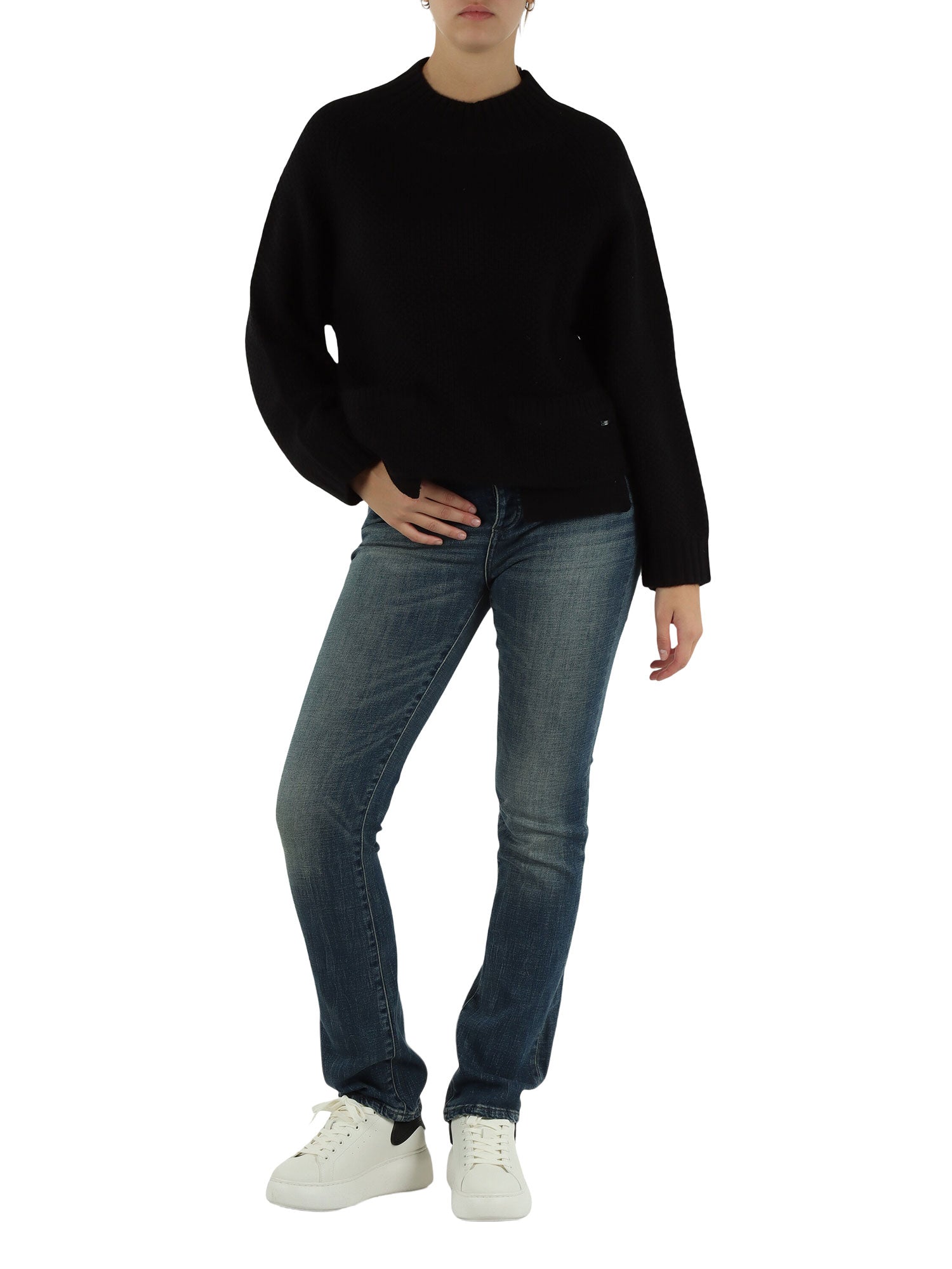 Maglione girocollo Armani Exchange donna tasche frontali nero