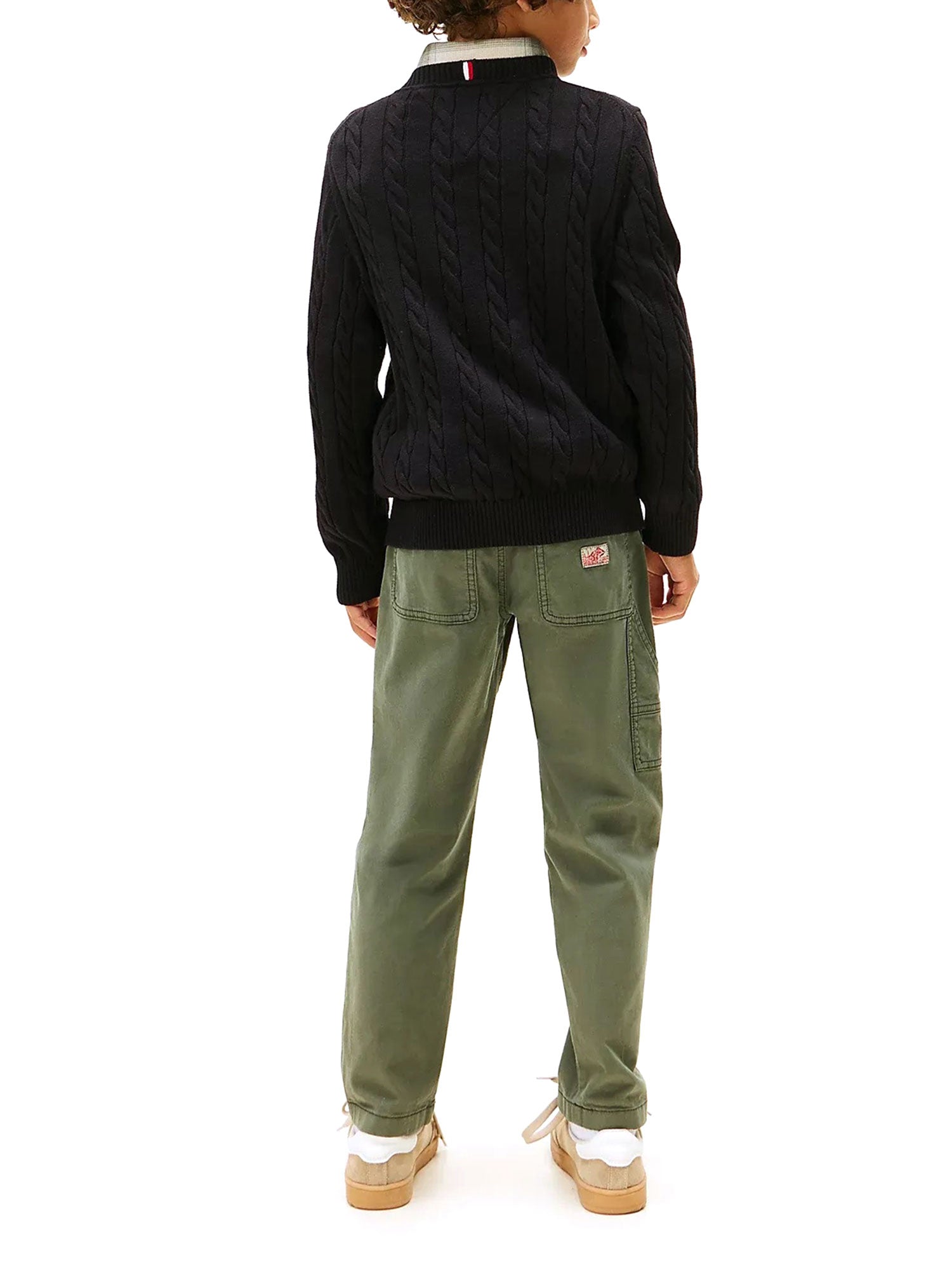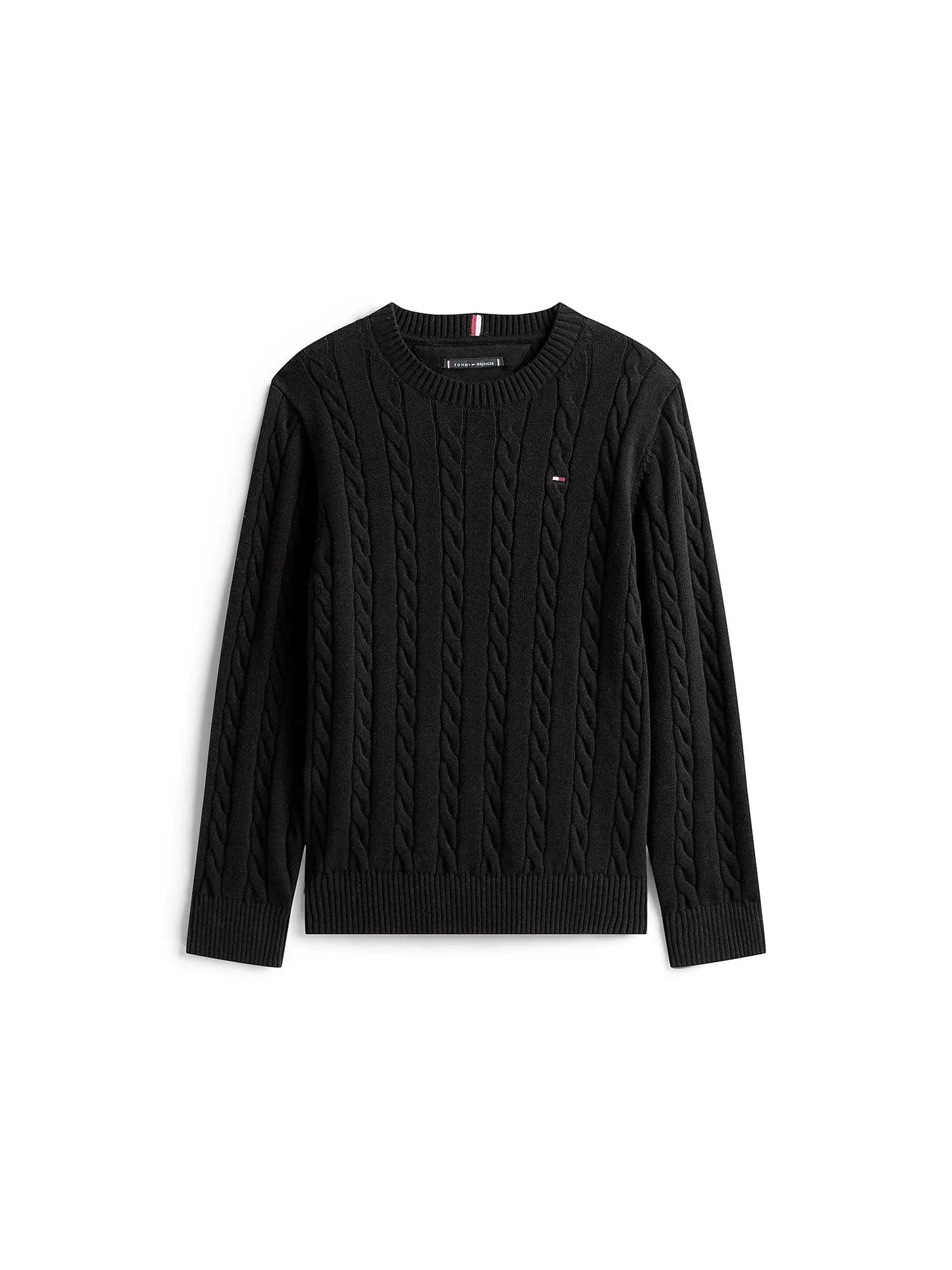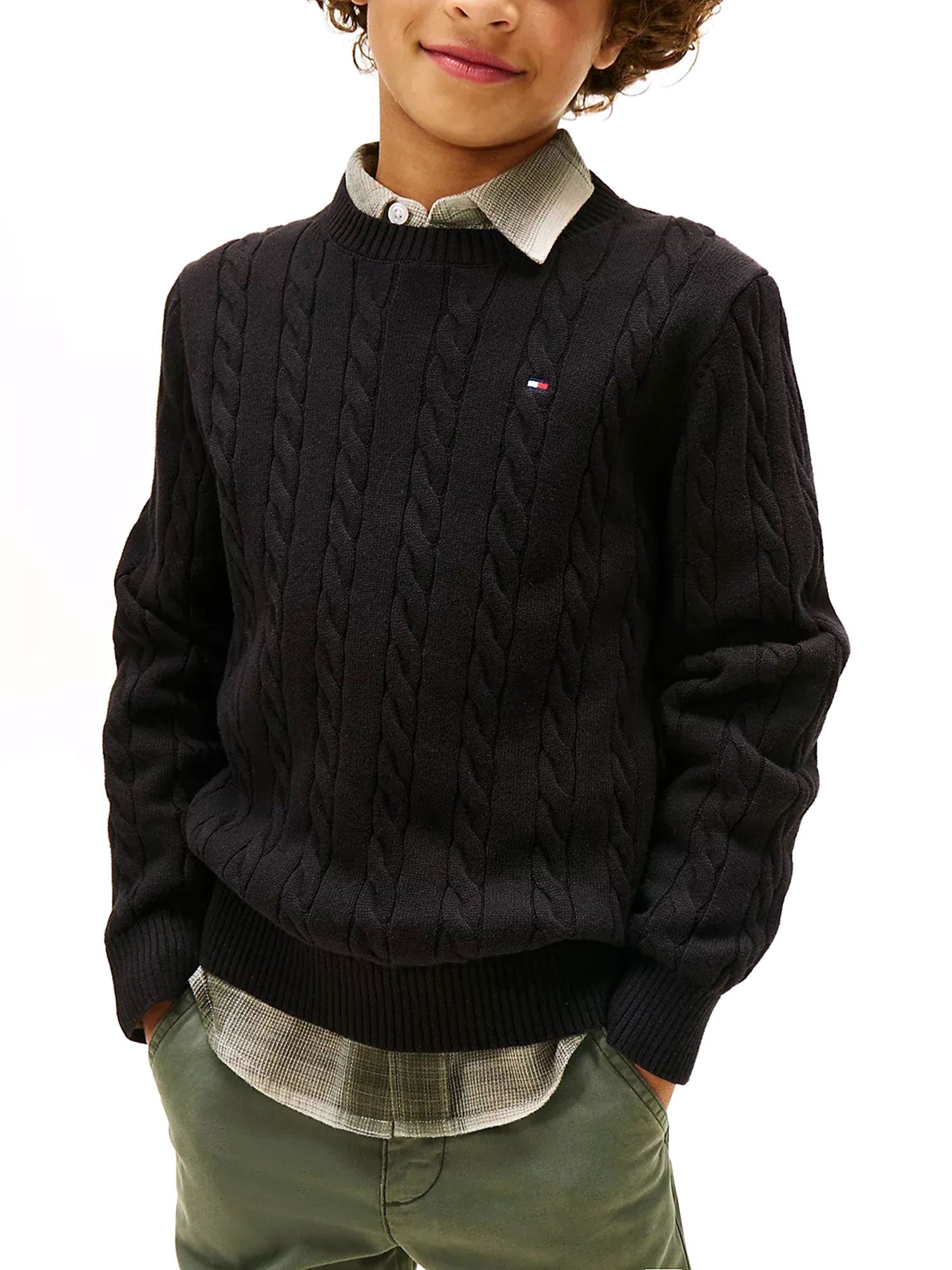 Maglione girocollo Tommy Hilfiger bambino lavorazione a trecce nero