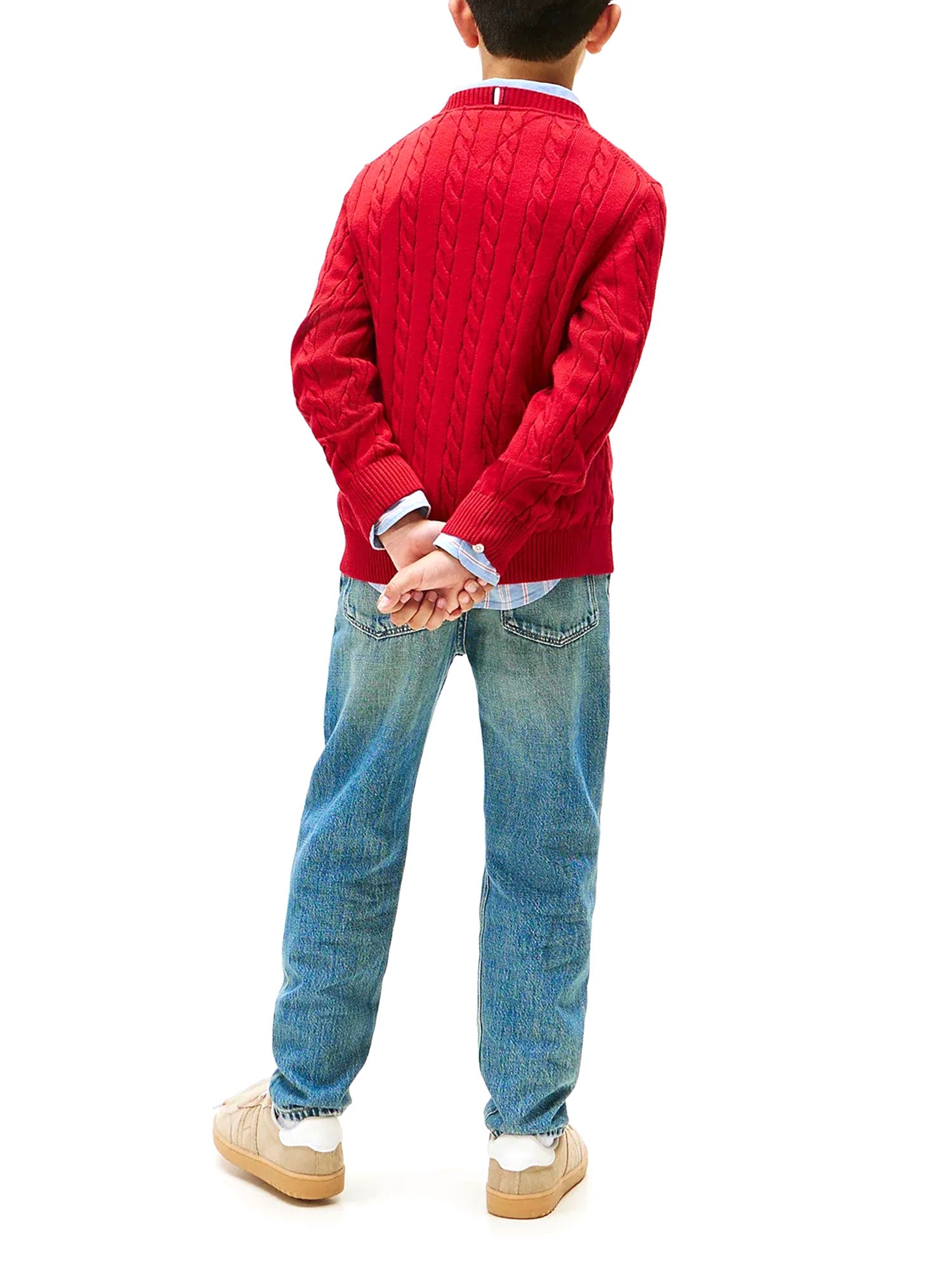 Maglione girocollo Tommy Hilfiger ragazzo lavorazione a trecce rosso