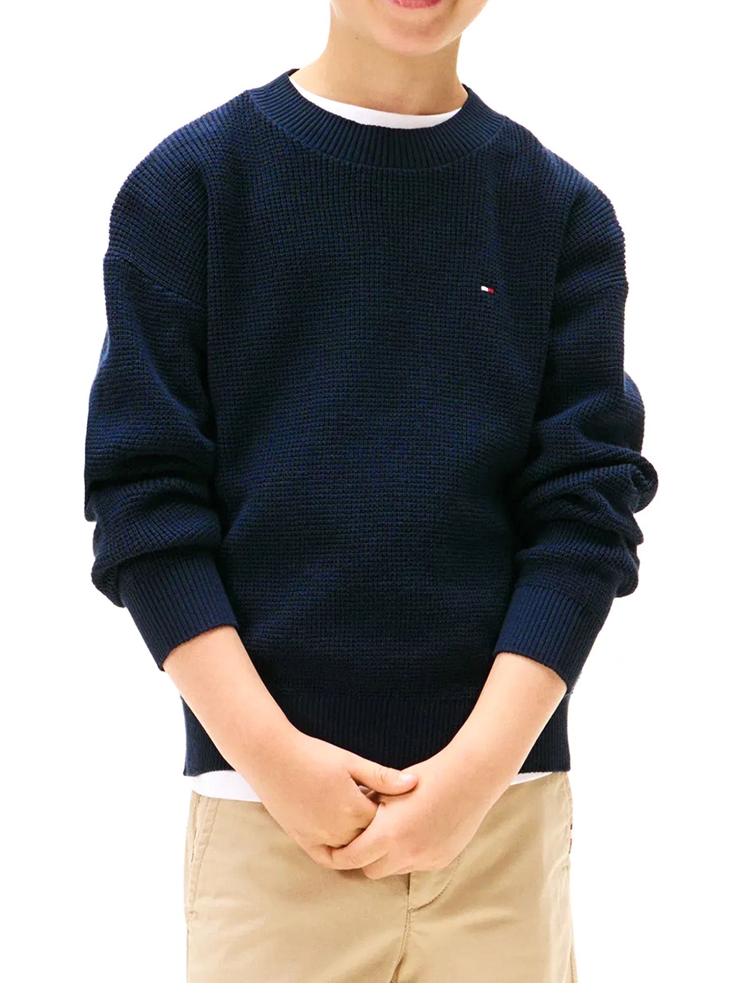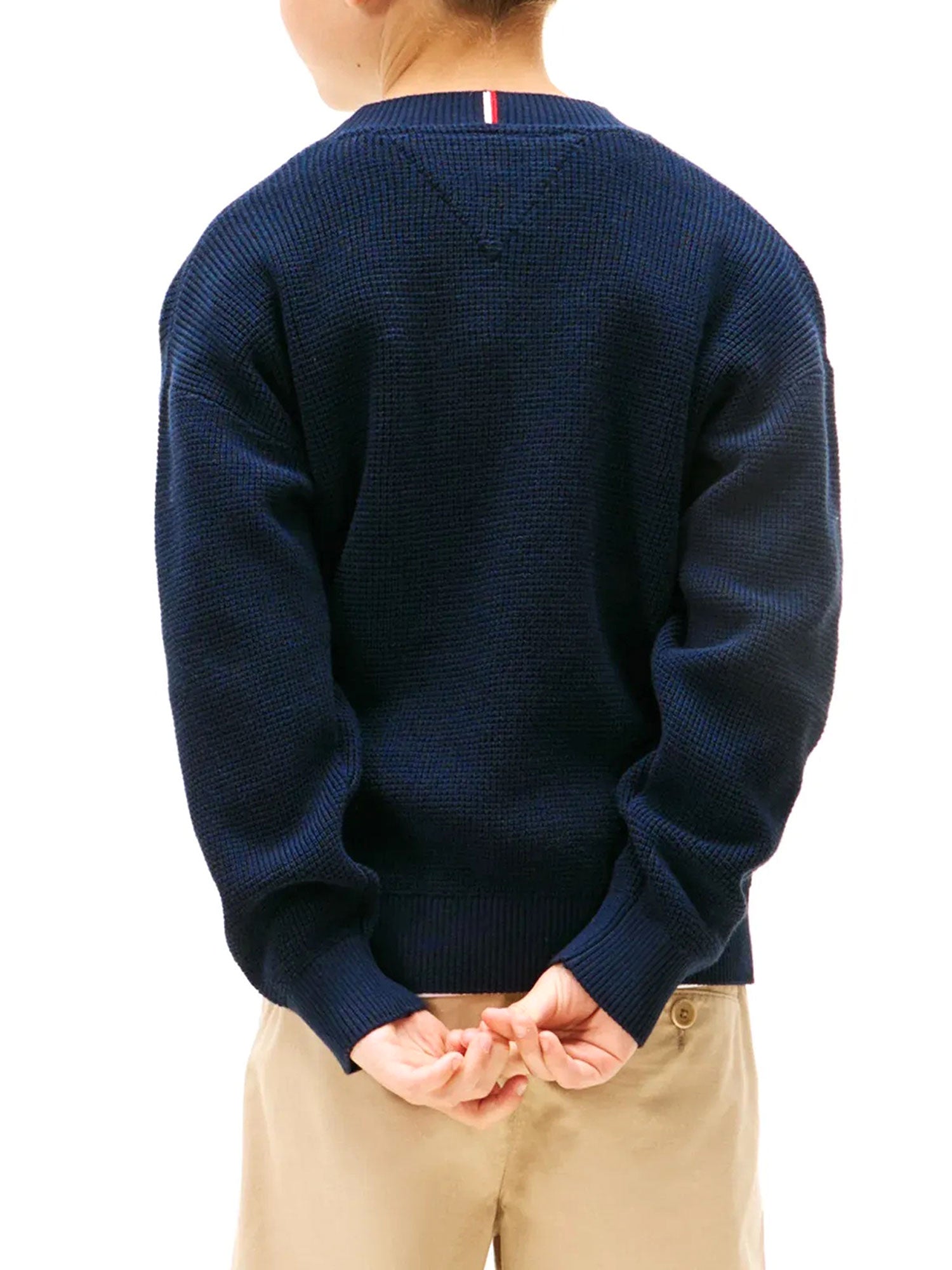 Maglione girocollo Tommy Hilfiger ragazzo texture trama con bandierina blu