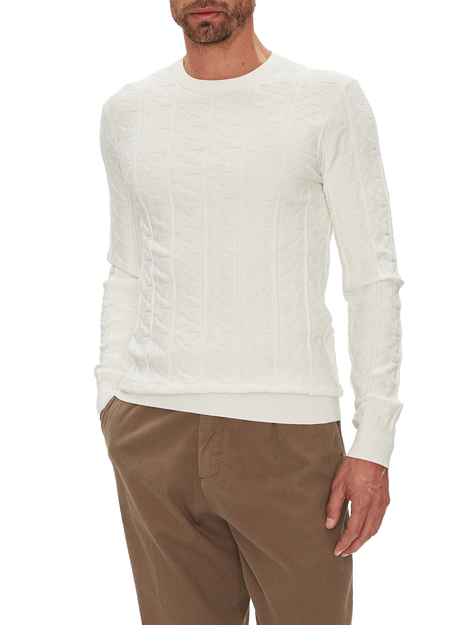 Girocollo Guess uomo con logo sul fondo ml heron monogram bianco