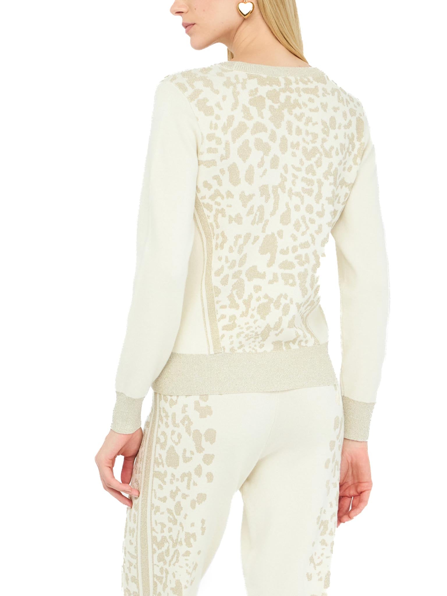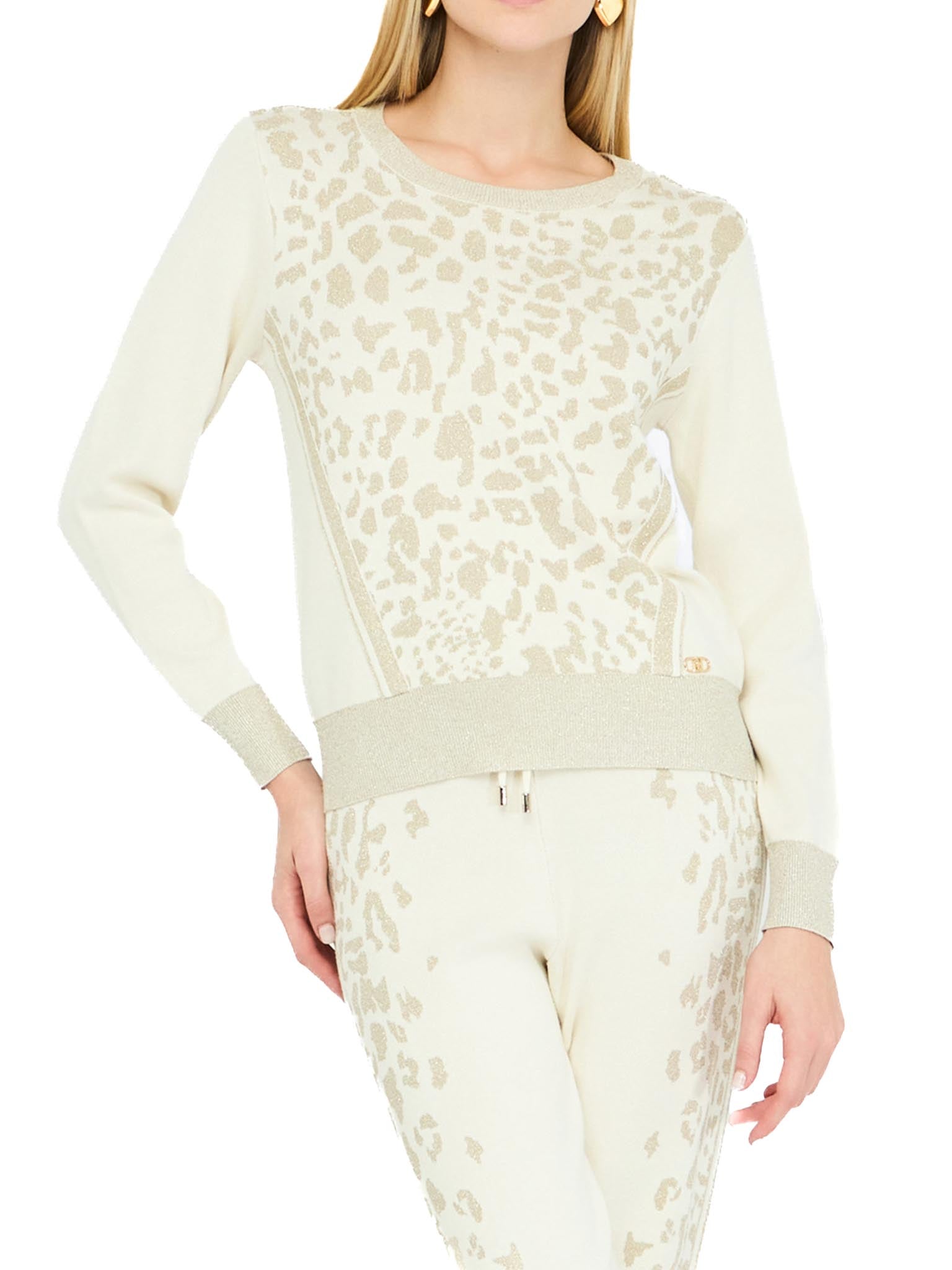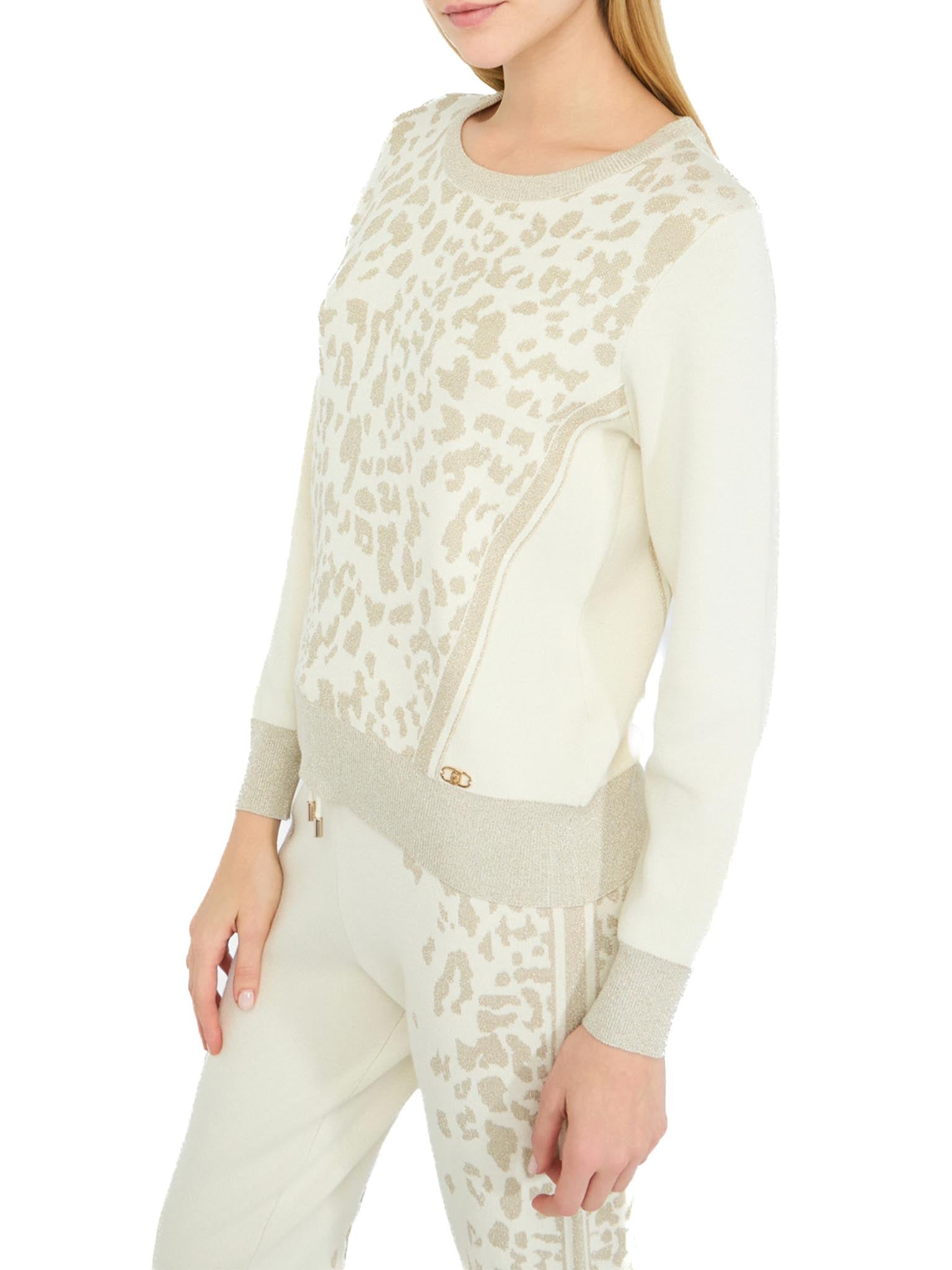 Girocollo LiuJo in maglia con stampa leopardata latte/oro