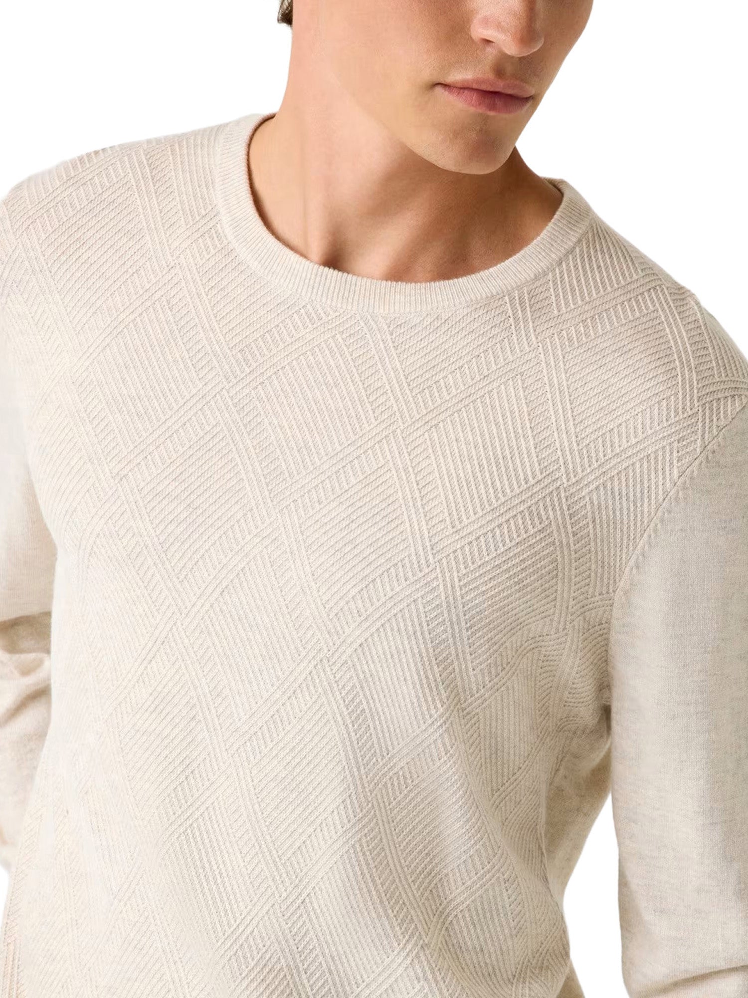 Girocollo in misto lana Guess uomo con dettaglio rombi all-over ml jamaar stitched beige