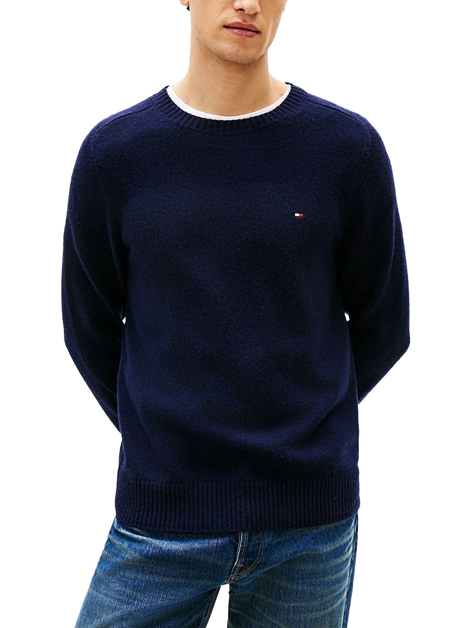 Maglione girocollo Tommy Hilfiger uomo in lambswool blu
