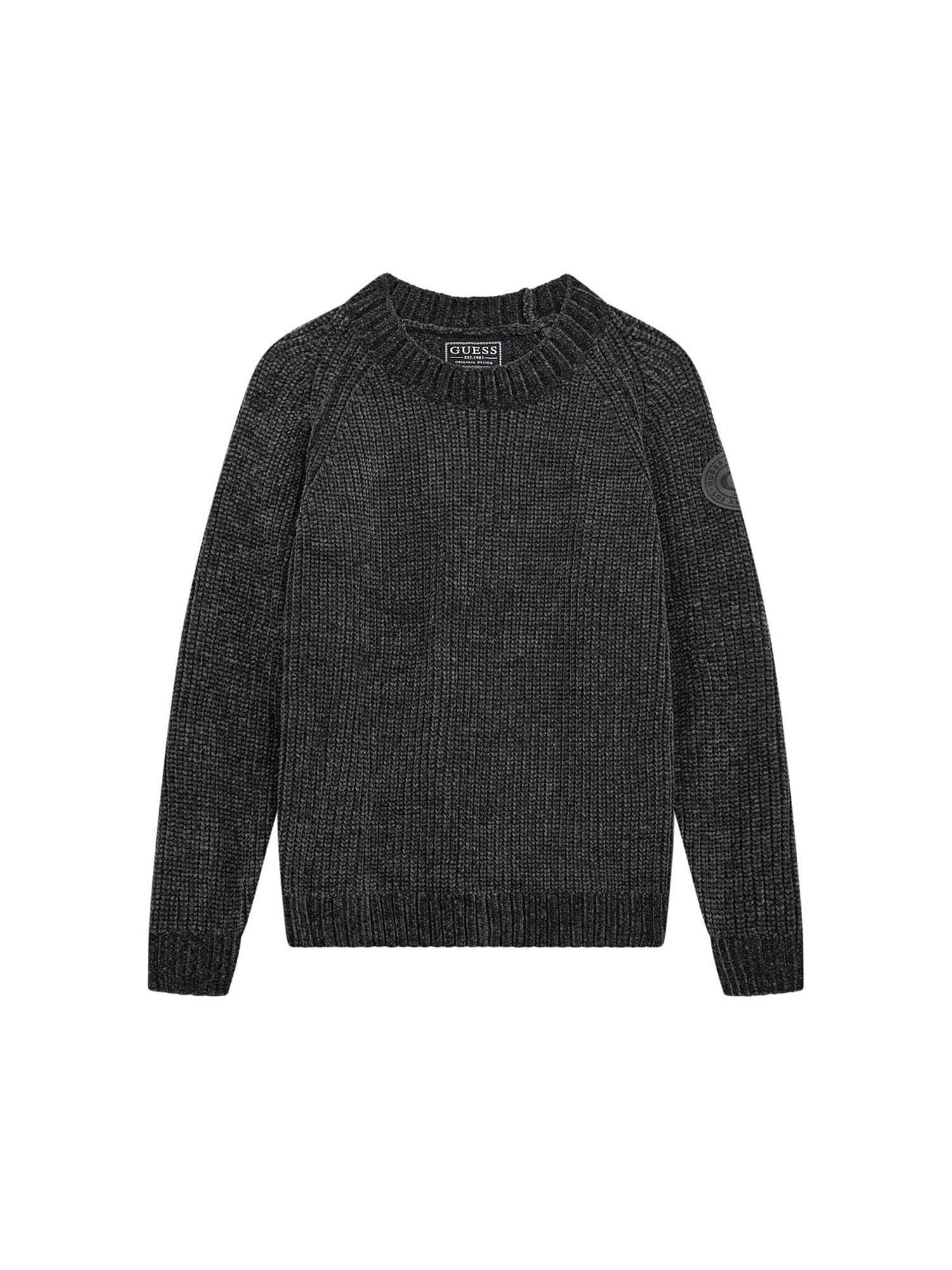 Maglione girocollo Guess ragazzo texture lavorato a trecce nero