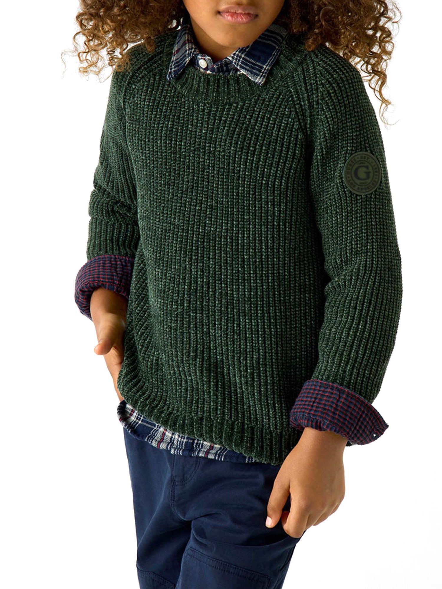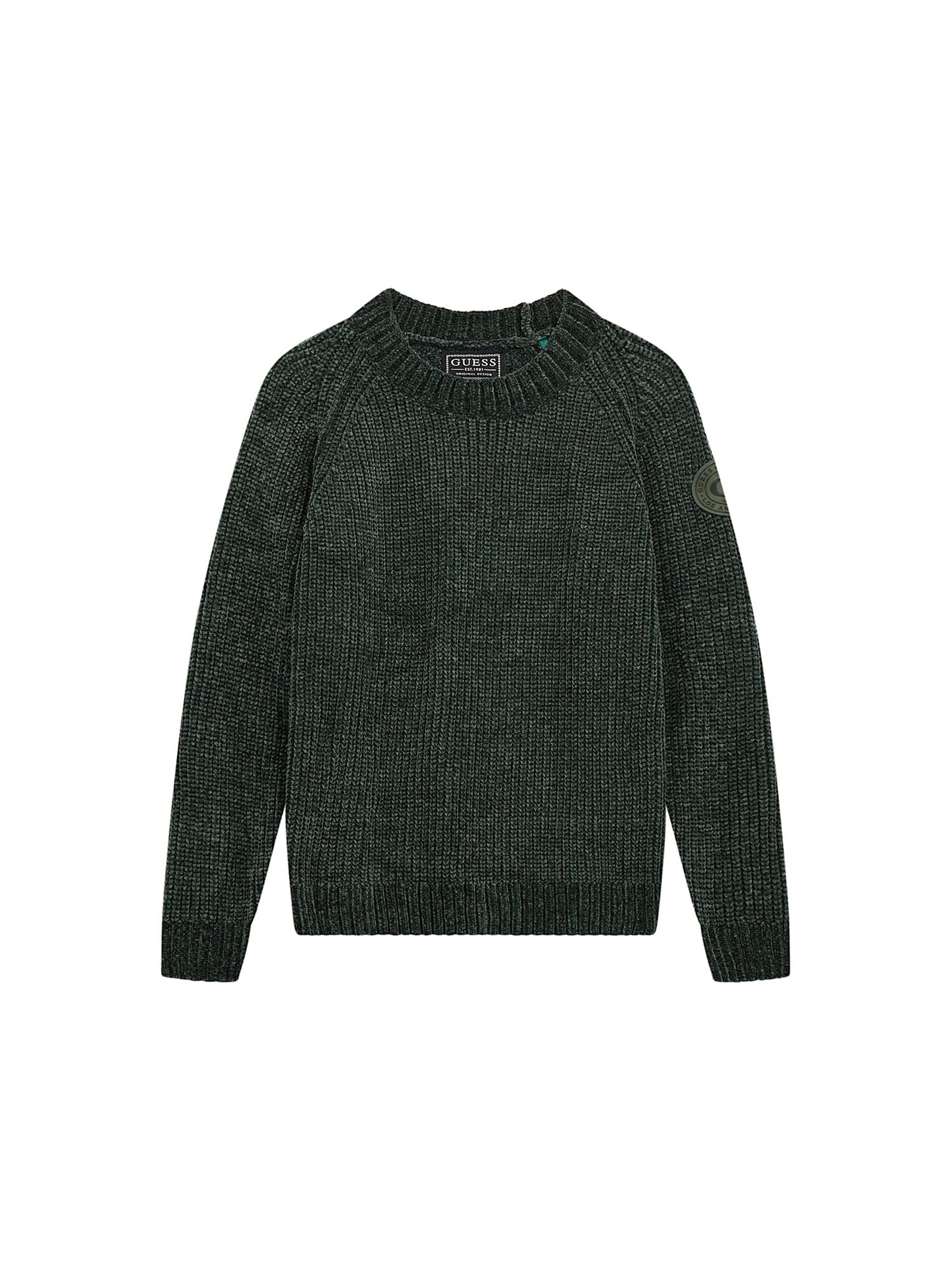 Maglione girocollo Guess ragazzo texture lavorato a trecce verde