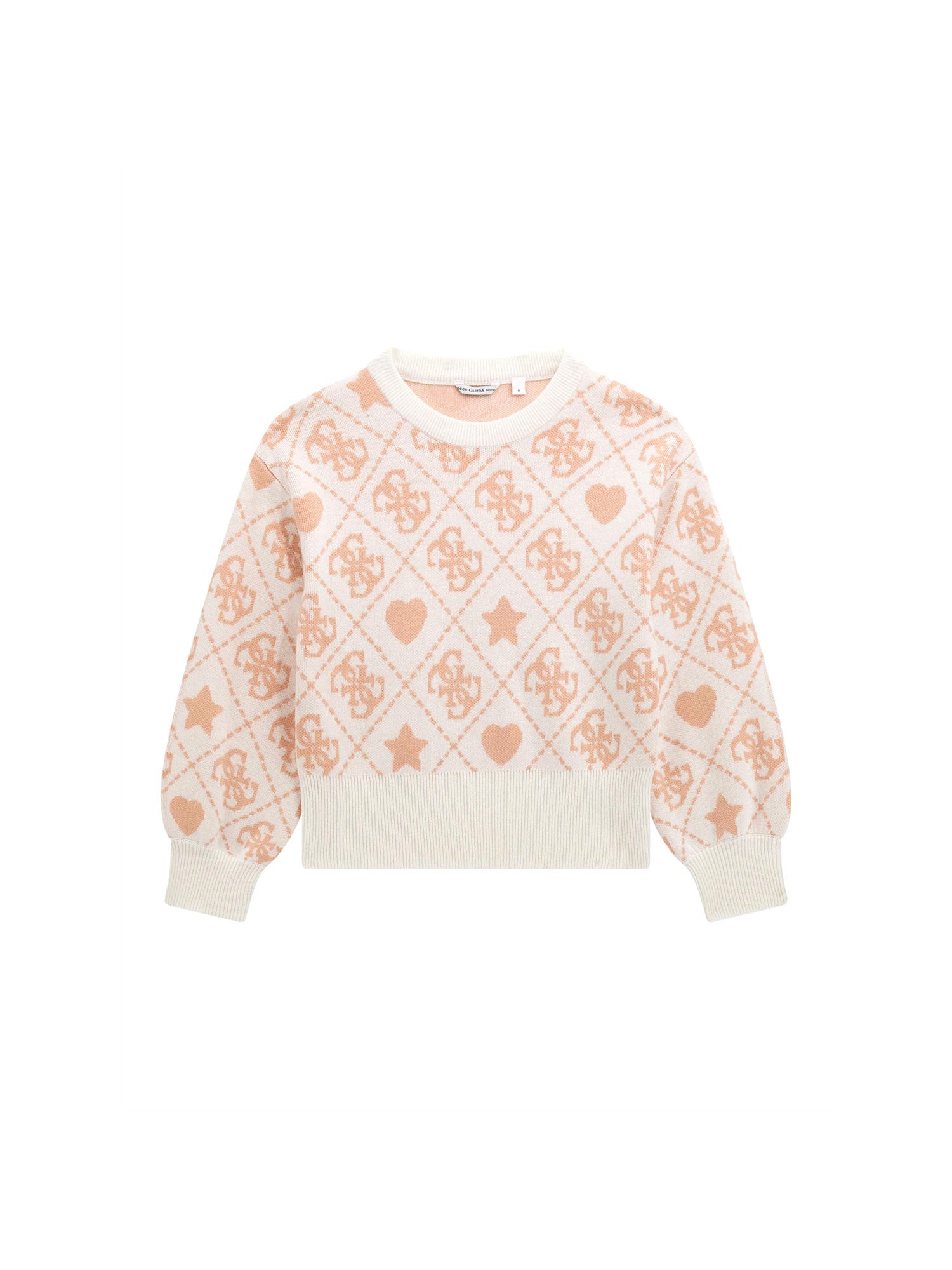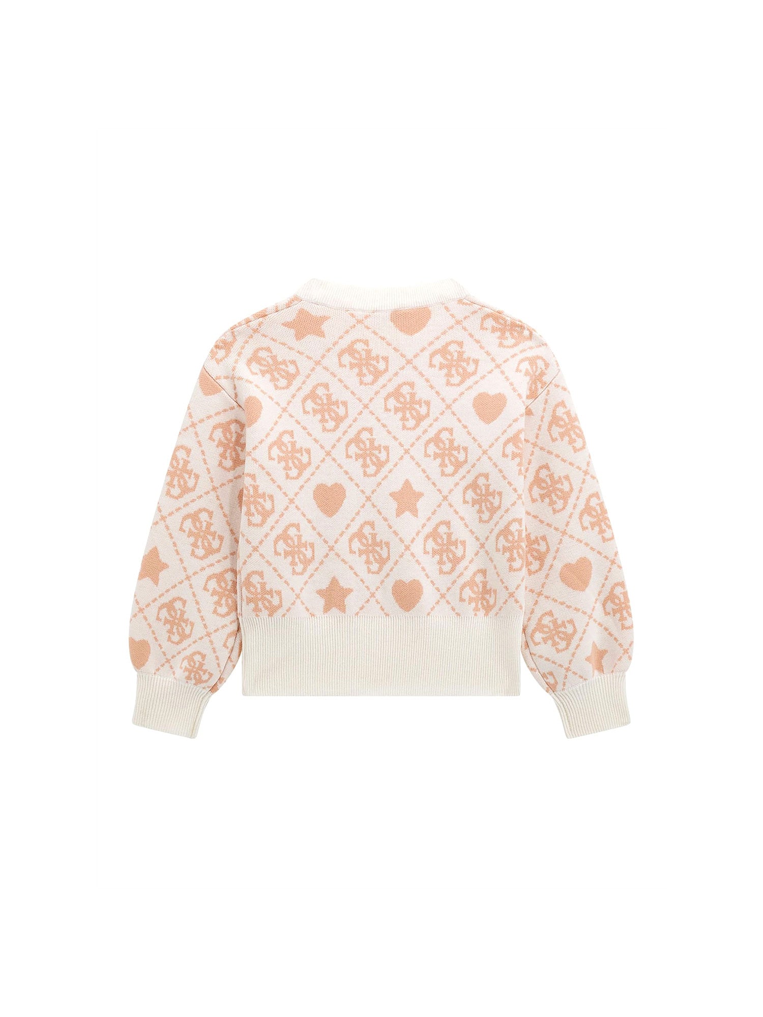Maglione girocollo Guess ragazza logo jacquard bianco multi