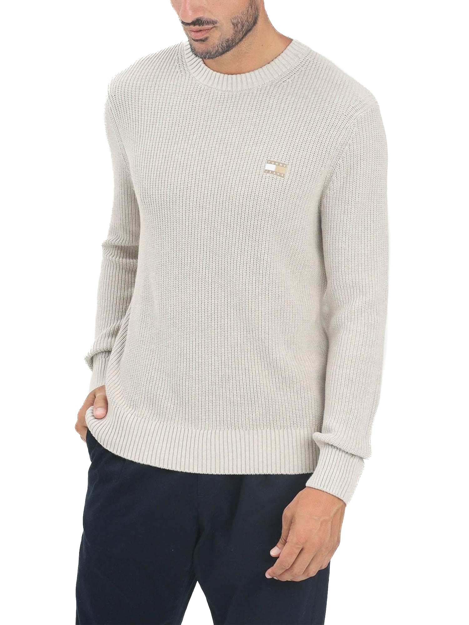- Girocollo classico con finitura a costine