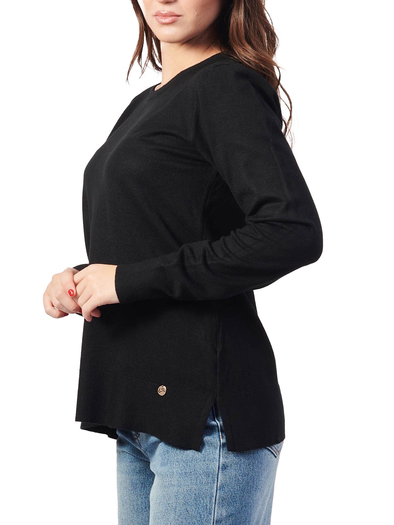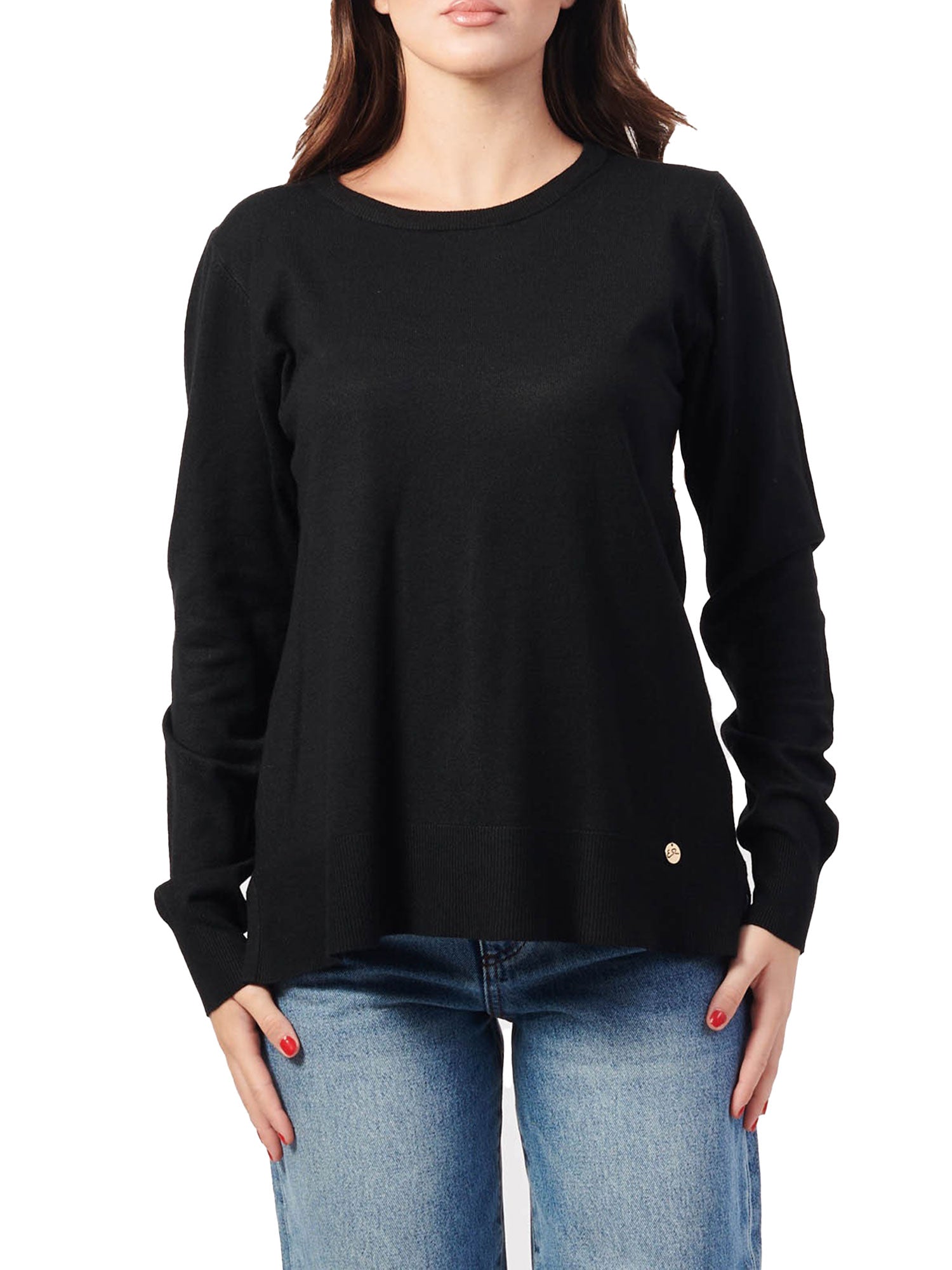 Maglia girocollo Yes Zee donna spacchetti laterali nero