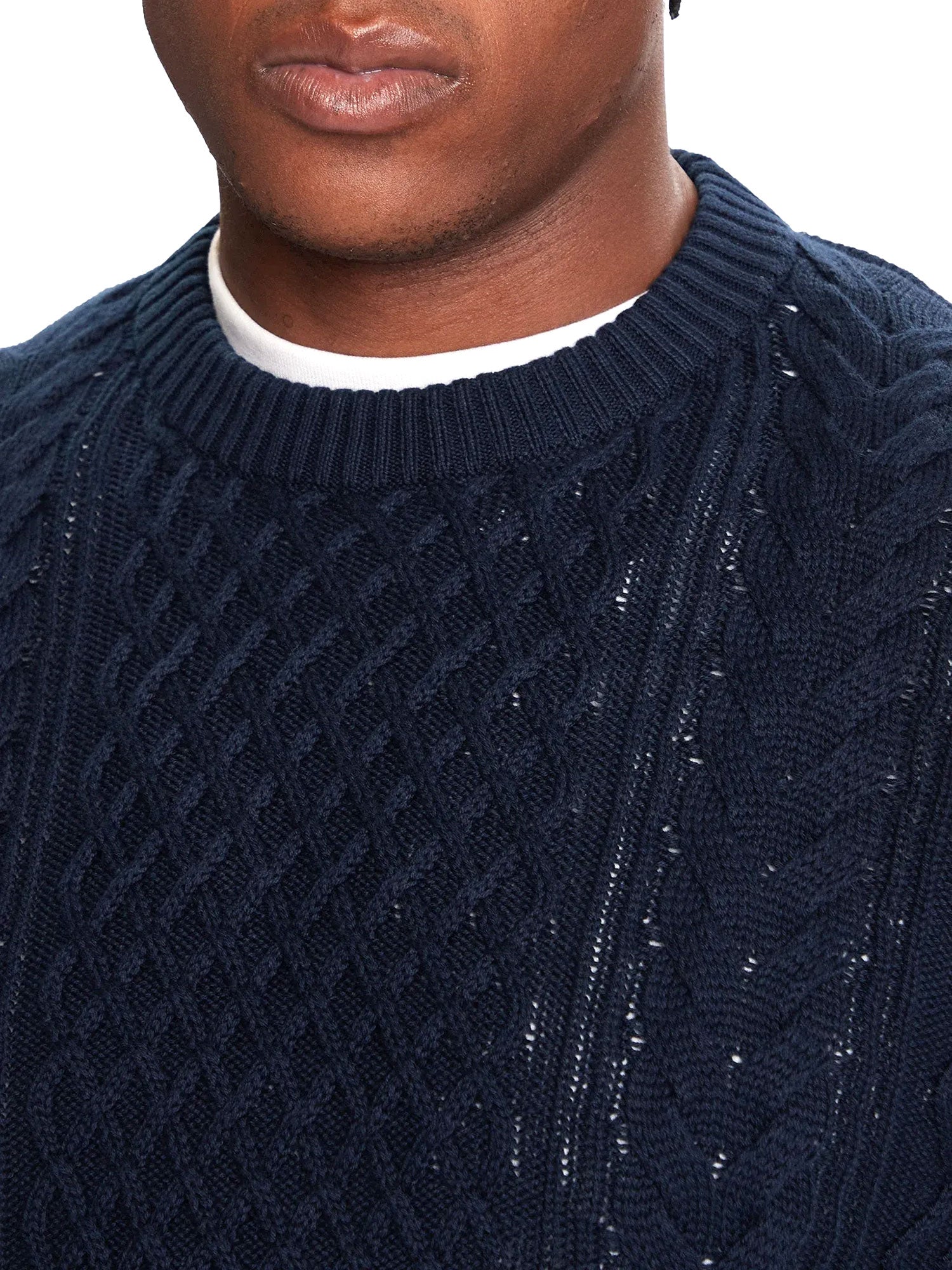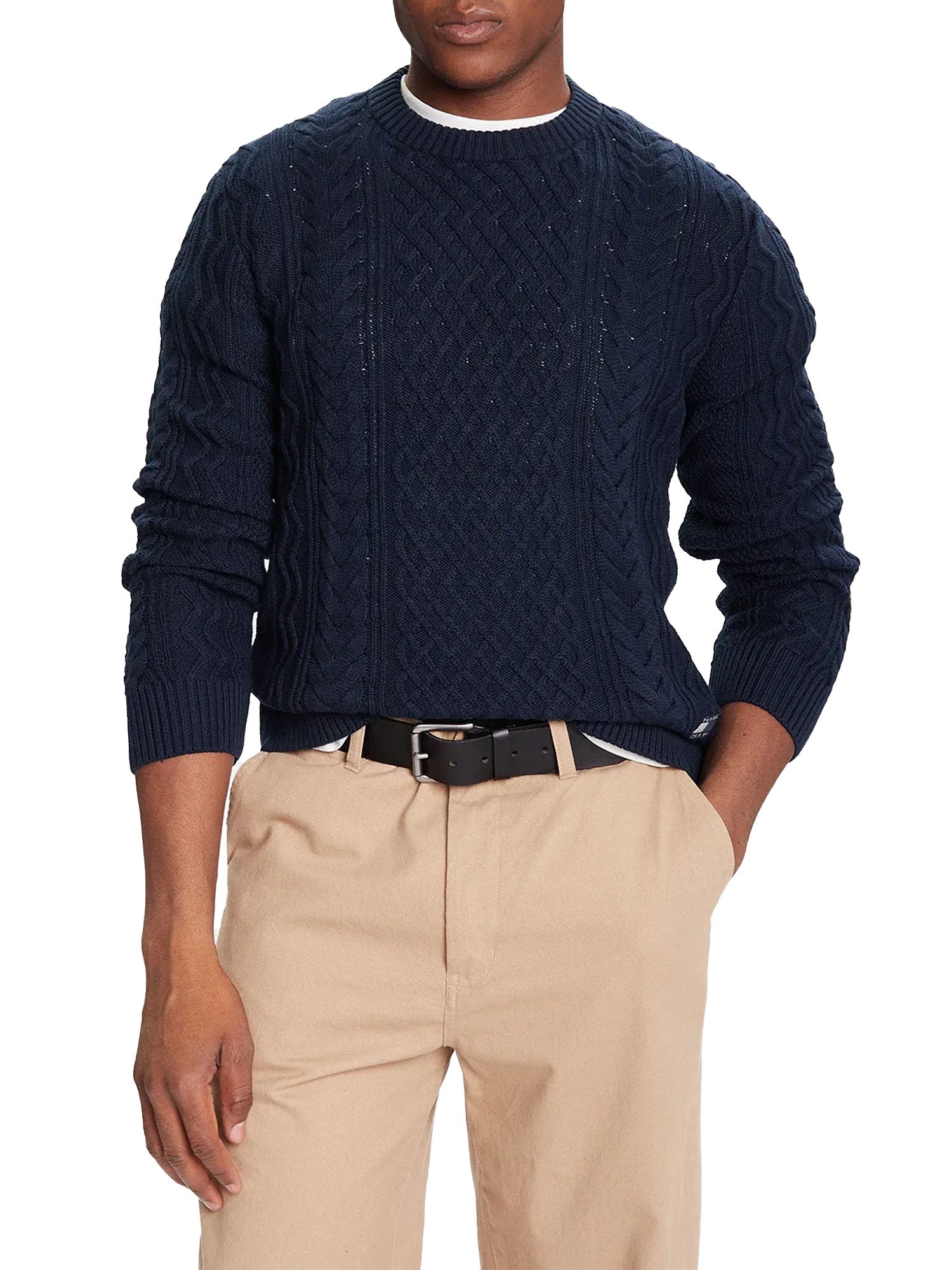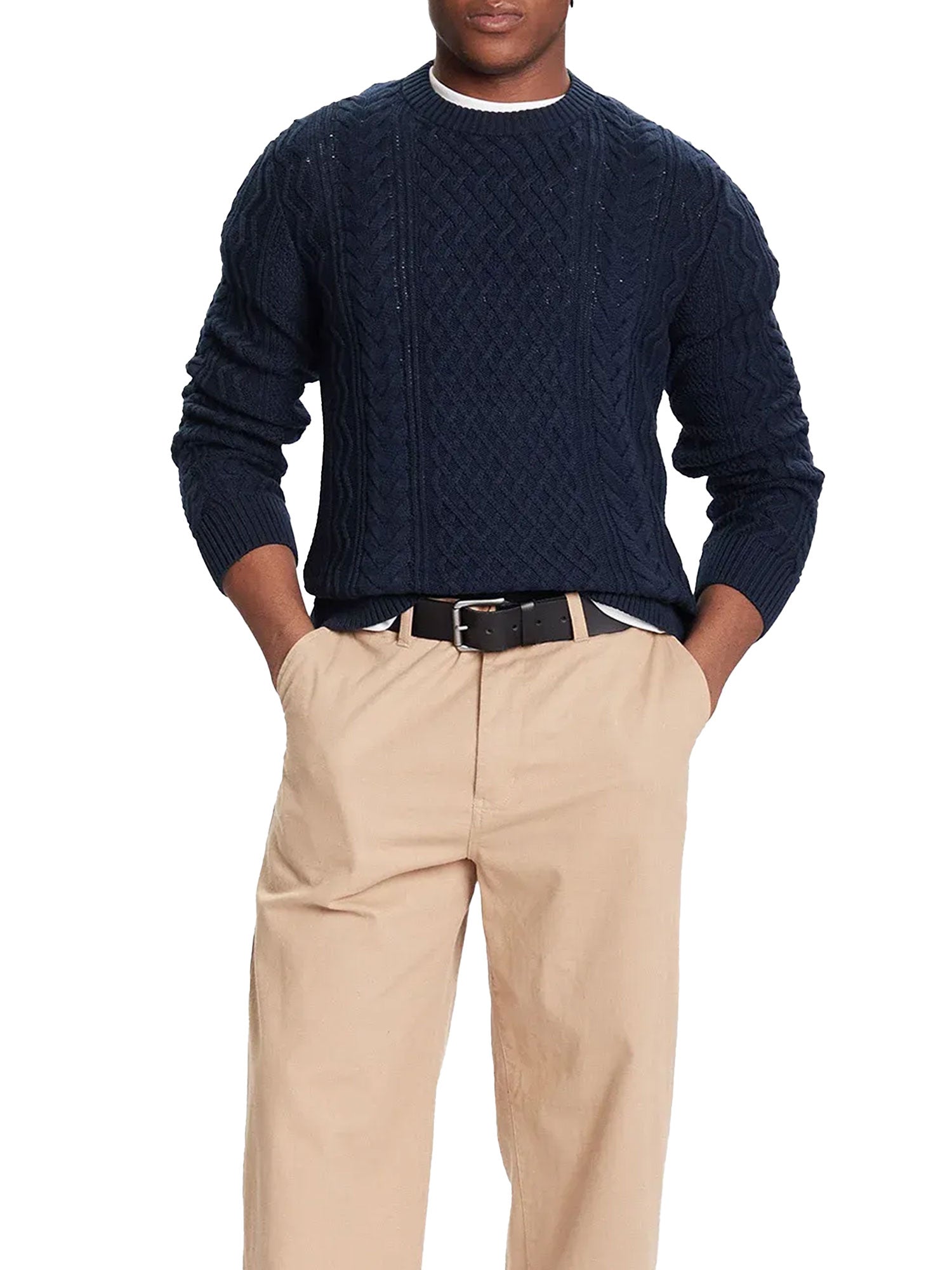 Girocollo Tommy Jeans uomo manica lunga slim badge cable knit blu