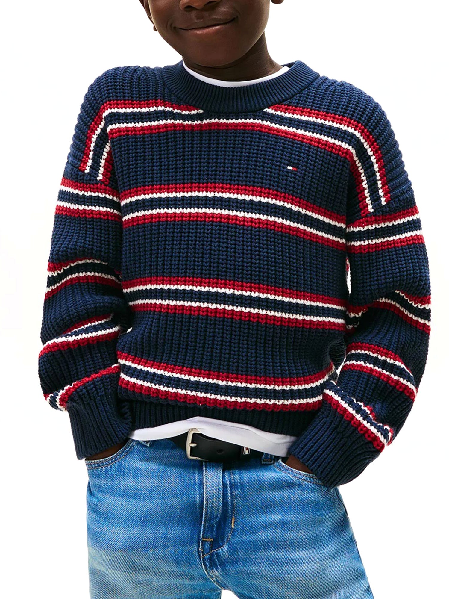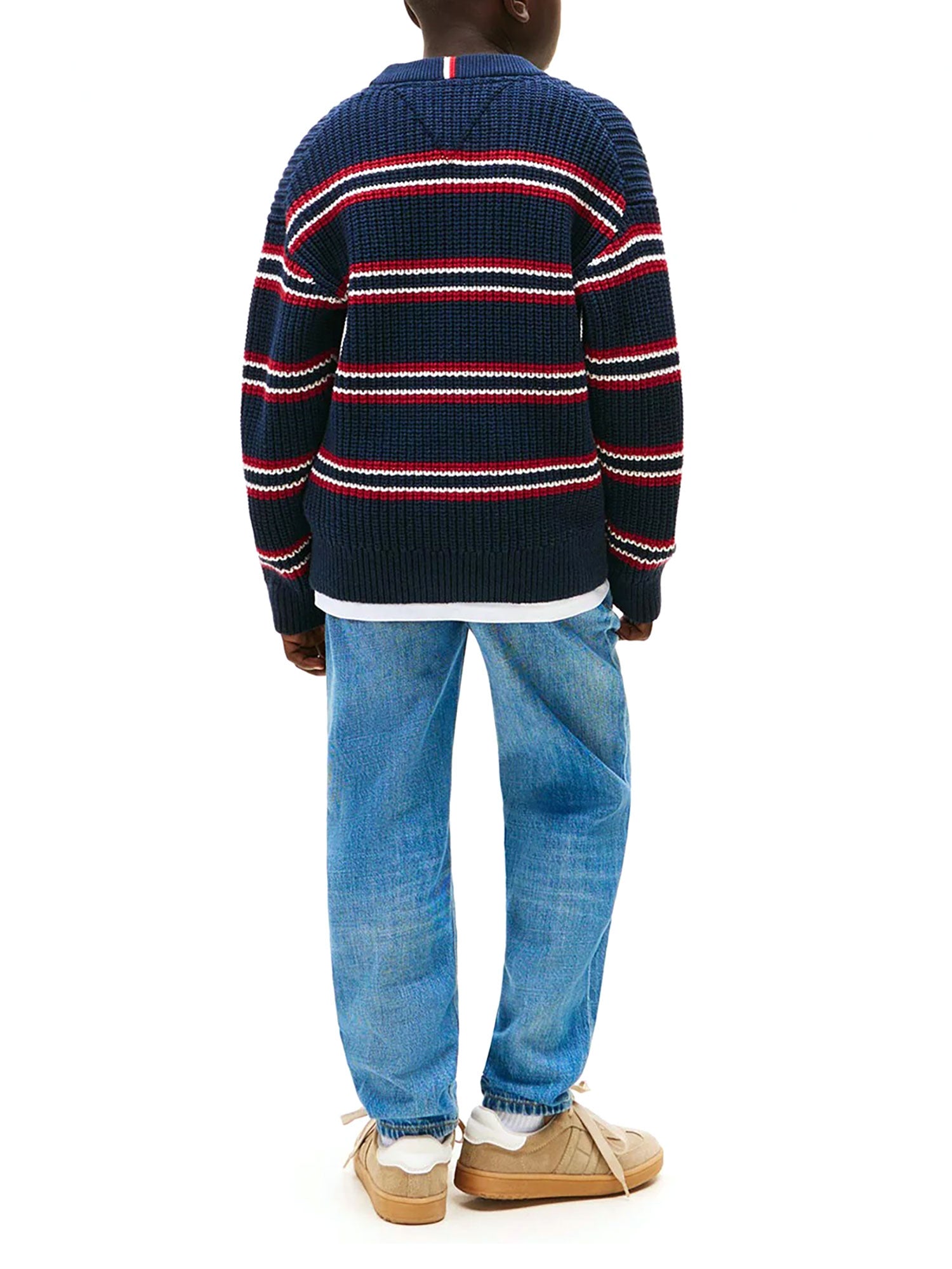 Maglione girocollo Tommy Hilfiger ragazzo fantasia righe blu