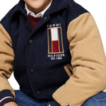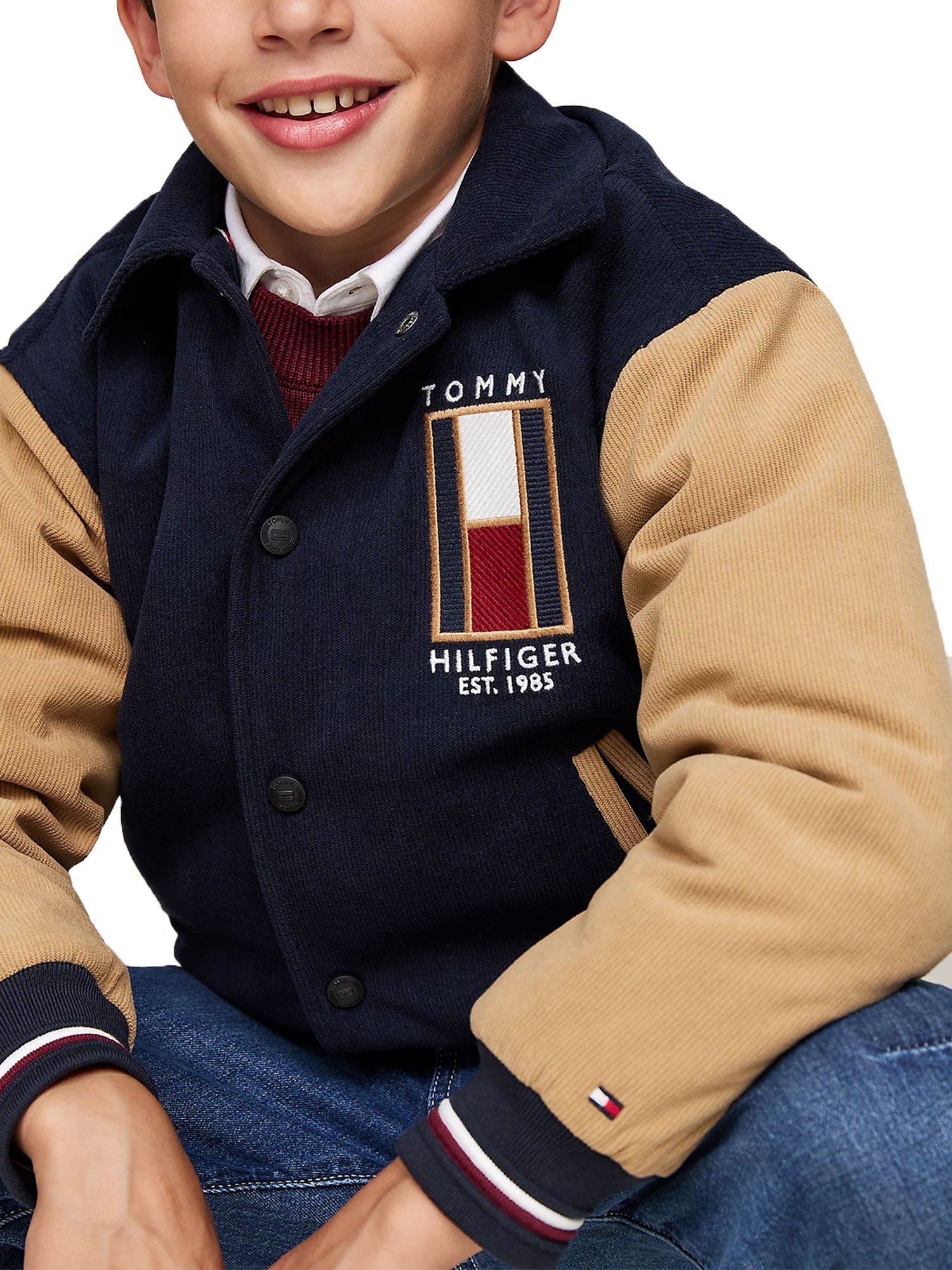 Bomber Tommy Hilfigher bambino in velluto a coste Questo modello esprime tutto il suo fascino grazie al motivo color block e ai loghi ricamati sul davanti e sul retro.