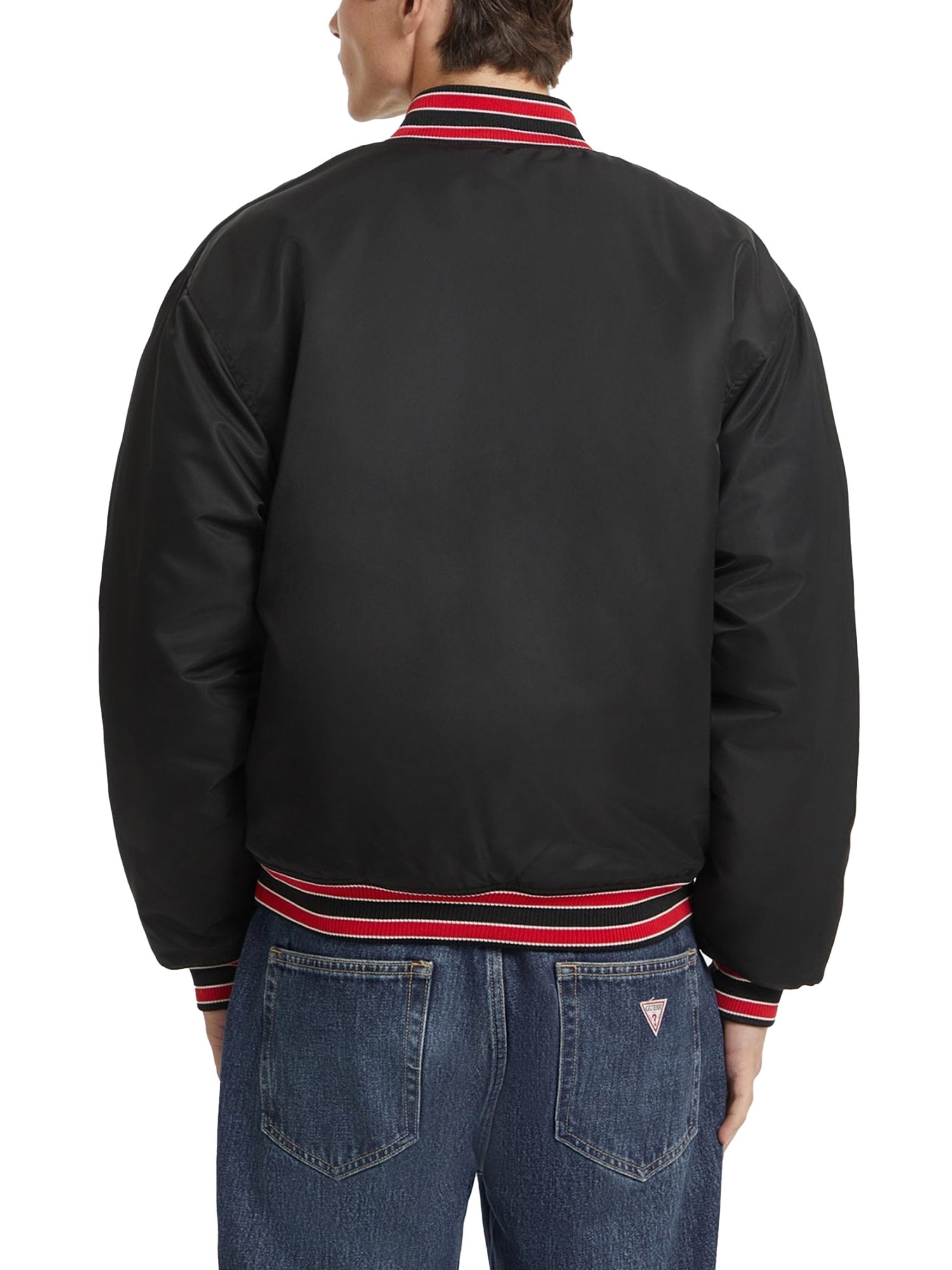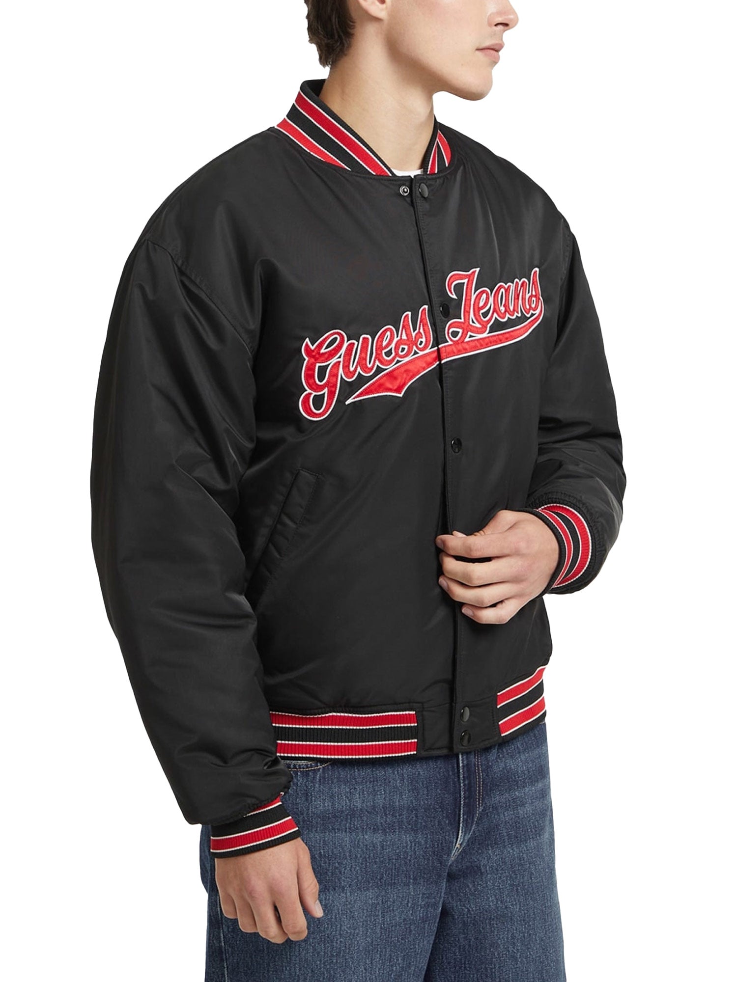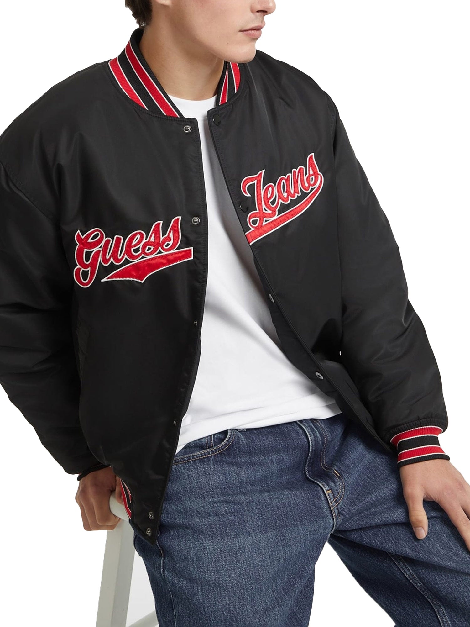 Bomber Guess, un modello classico arricchito da un motivo patchwork sportivo. Realizzato in nylon resistente, con un design dalle linee moderne e dettagli pregiati per un look contemporaneo.