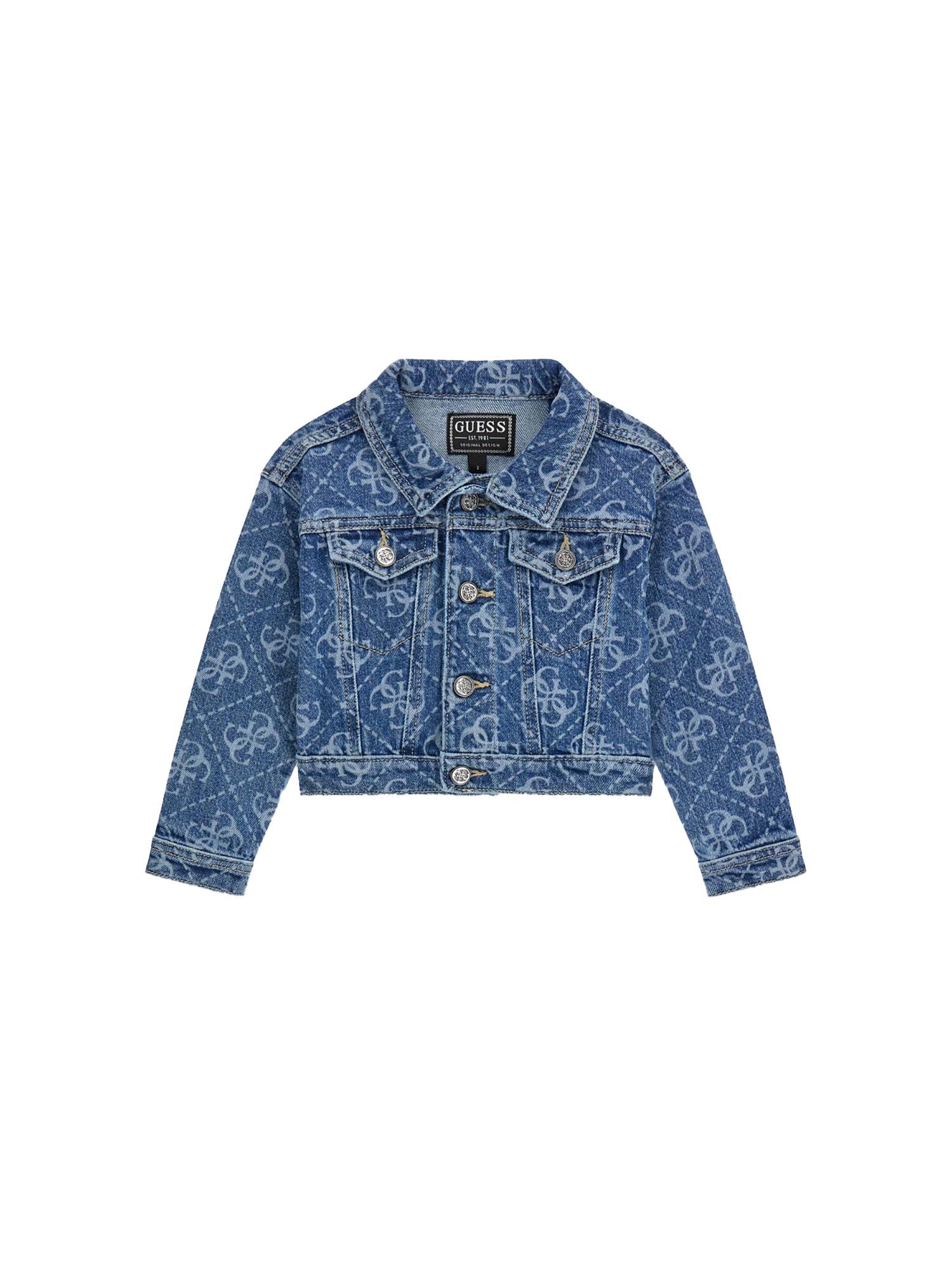 Giacca denim bambina con logo all-over Guess. Un capo iconico e contemporaneo, perfetto per dare carattere agli outfit quotidiani. Il classico denim viene reinterpretato con la stampa logo all-over per uno stile moderno e distintivo.