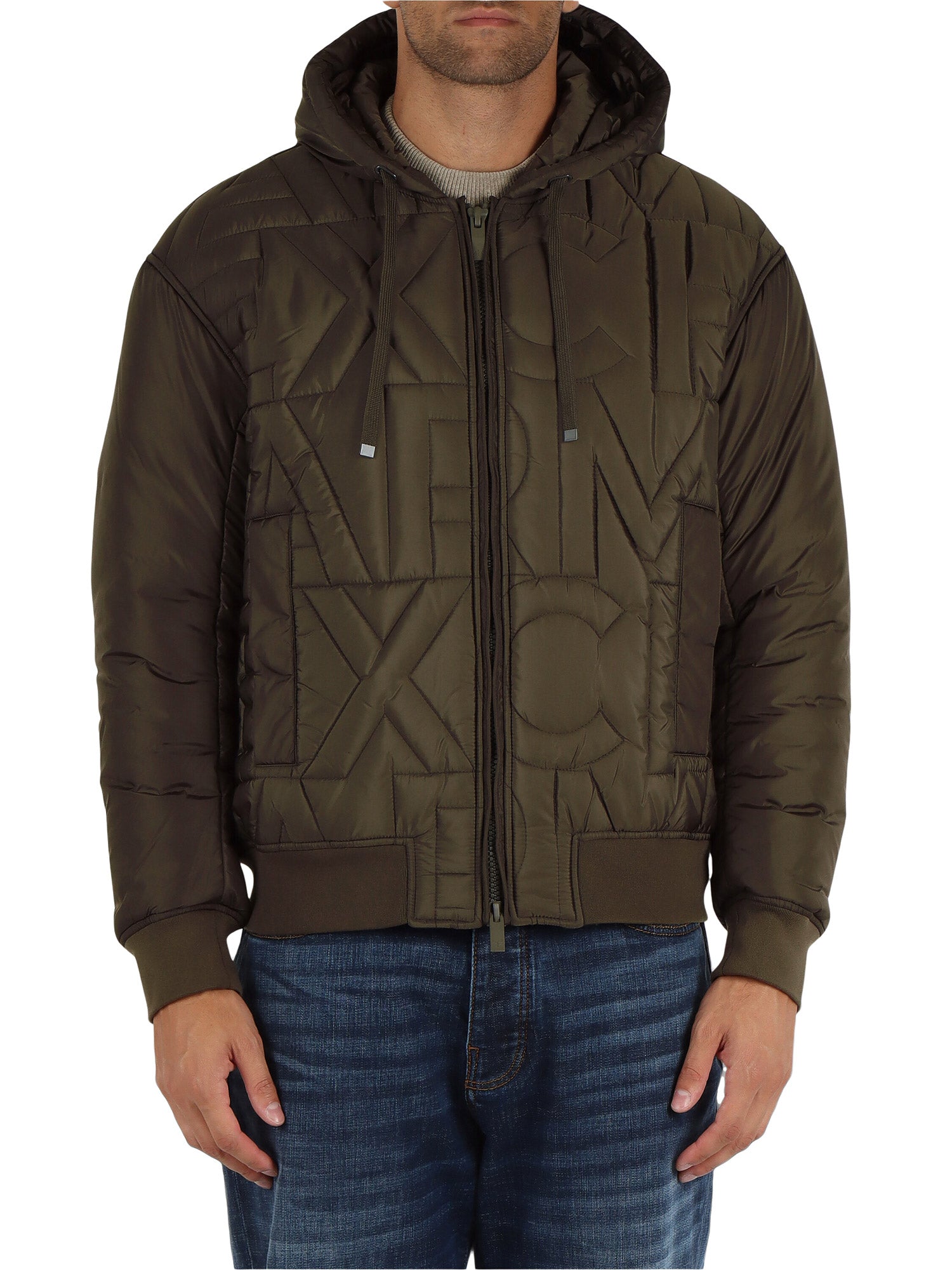 Giubbino con zip e cappuccio AX all over verde scuro