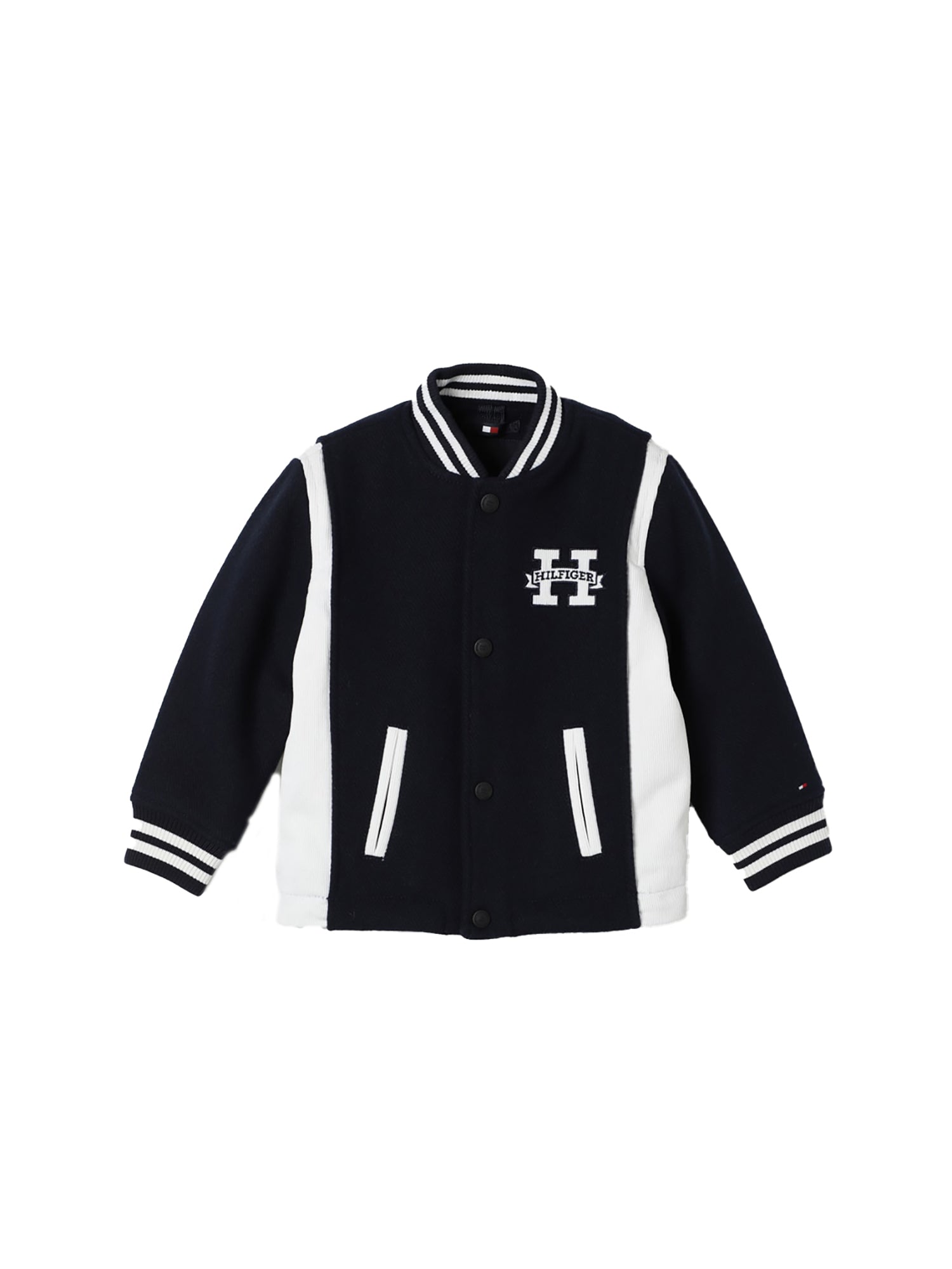 Giubbino da bambino elegante e dallo stile inconfondibile, questa giacca varsity firmata Tommy Hilfiger aggiunge un tocco classico al guardaroba dei più piccoli. Realizzata in misto lana di alta qualità, presenta un design bicolor con dettagli iconici come l’applicazione del logo "H" sul petto. La chiusura a bottoni automatici e i bordi a coste a righe donano un look sportivo e raffinato, ideale per ogni occasione.