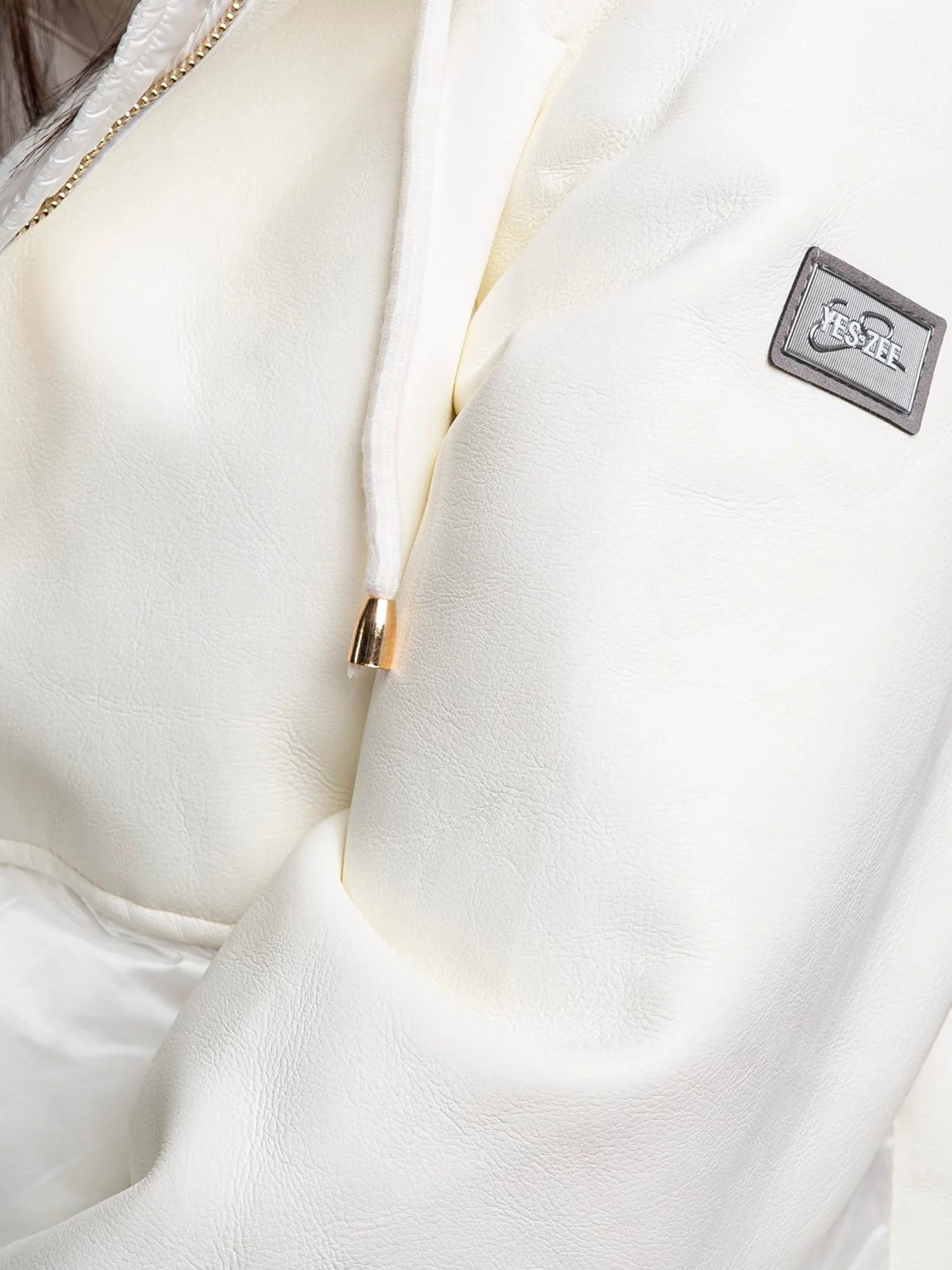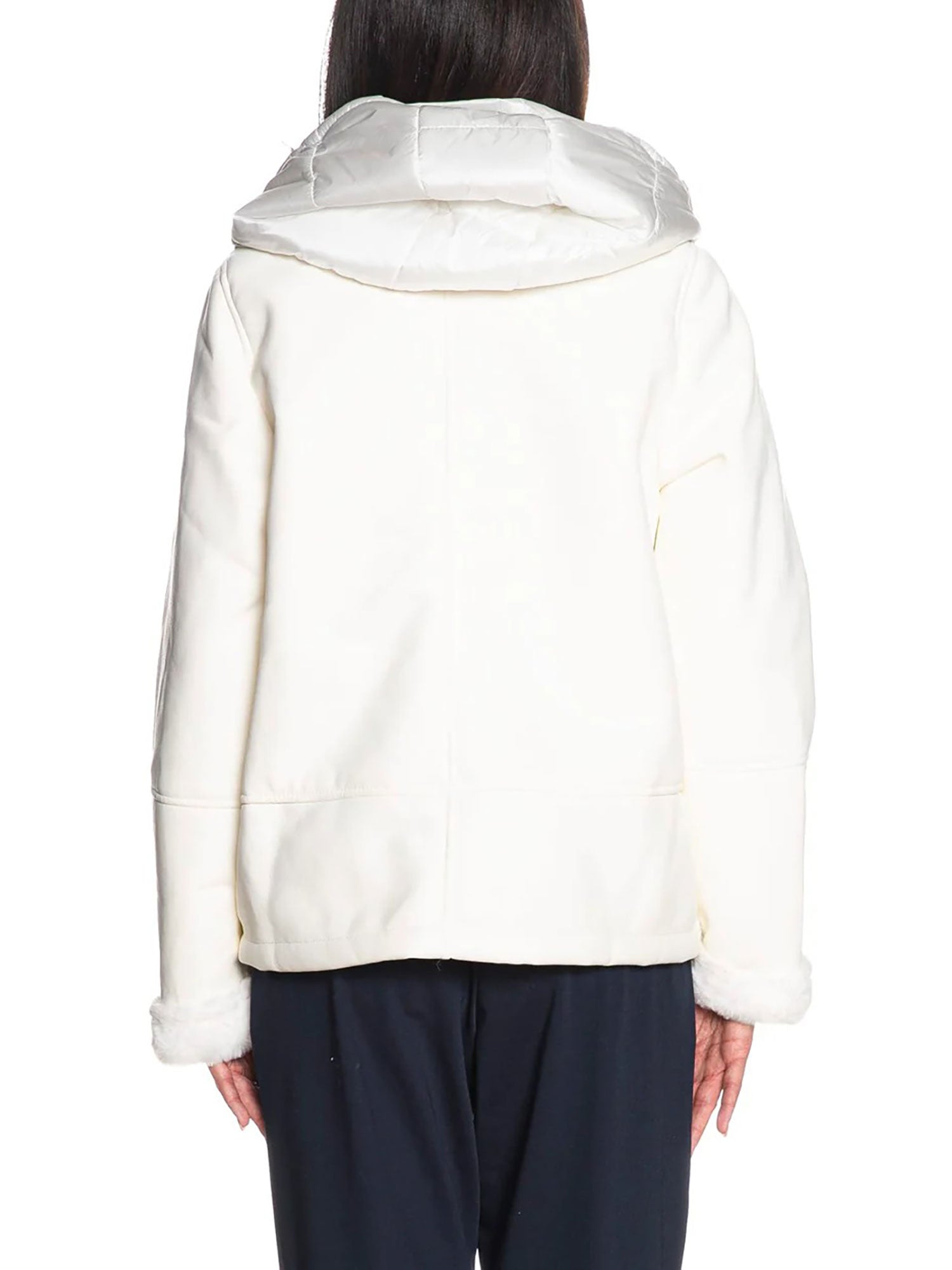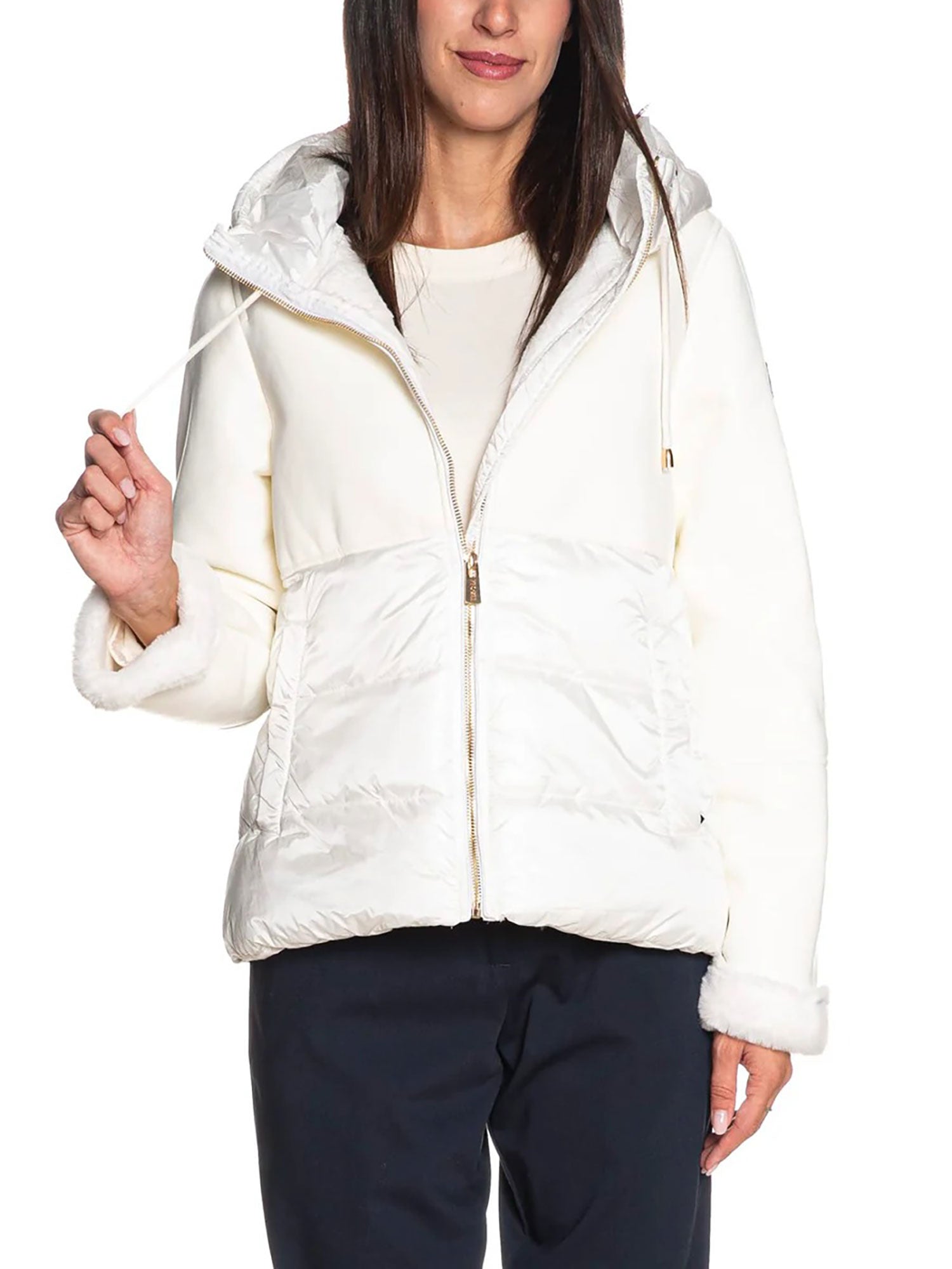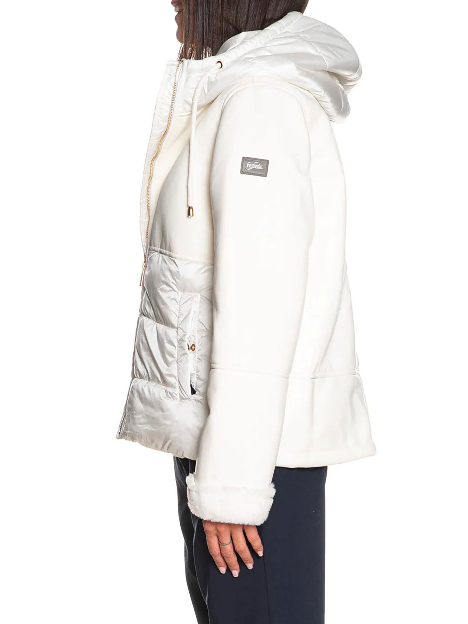 Giubbino corto Yes Zee donna con zip e cappuccio con inserto trapuntato e ecopelle avorio