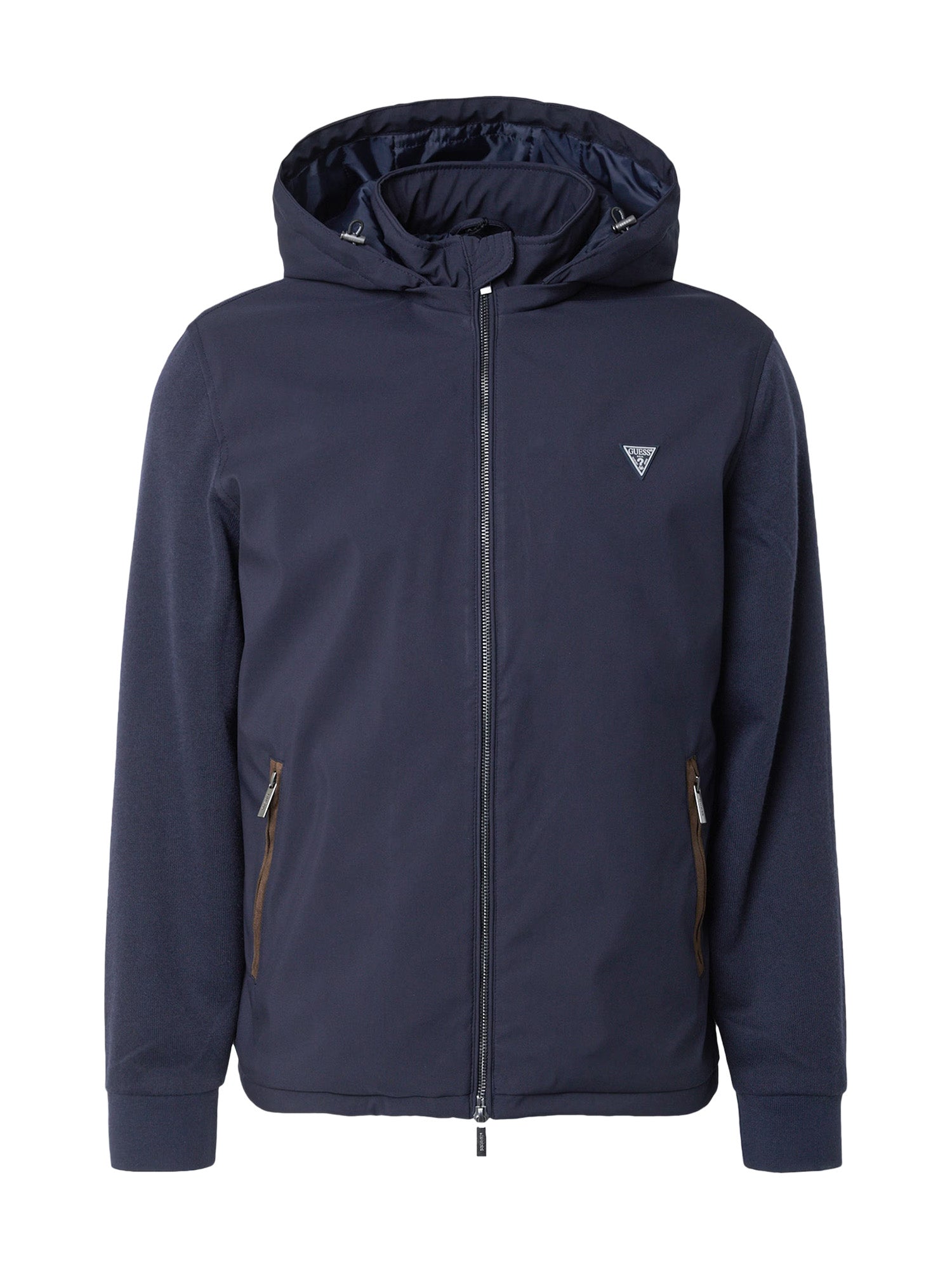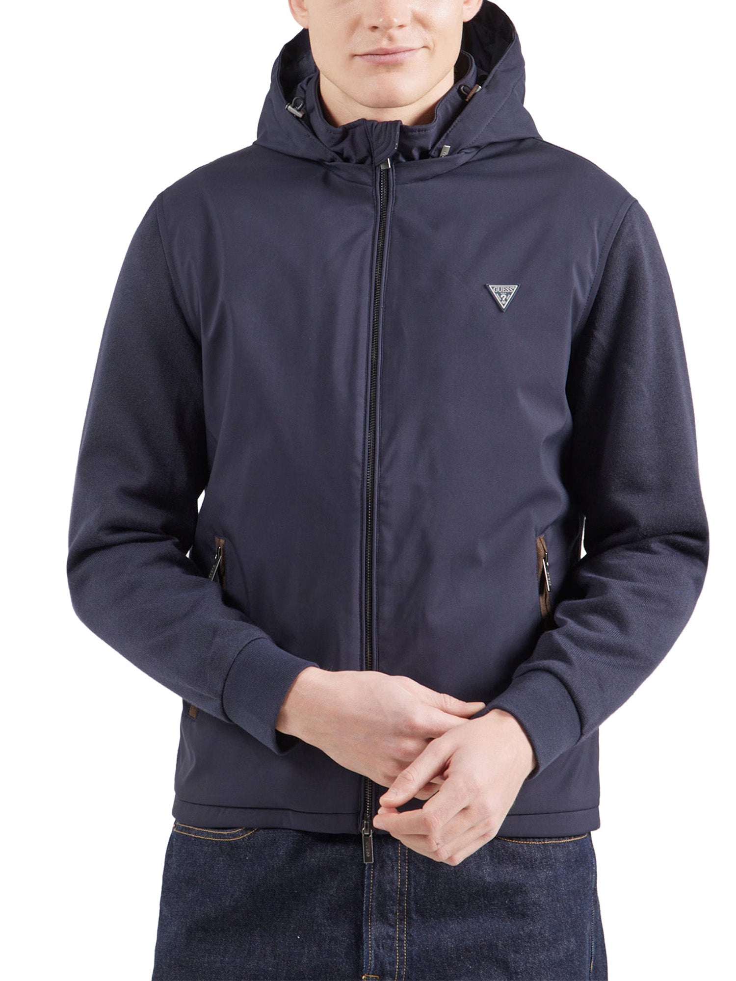 Giubbotto con zip e cappuccio Guess uomo in tessuto knittedg blu