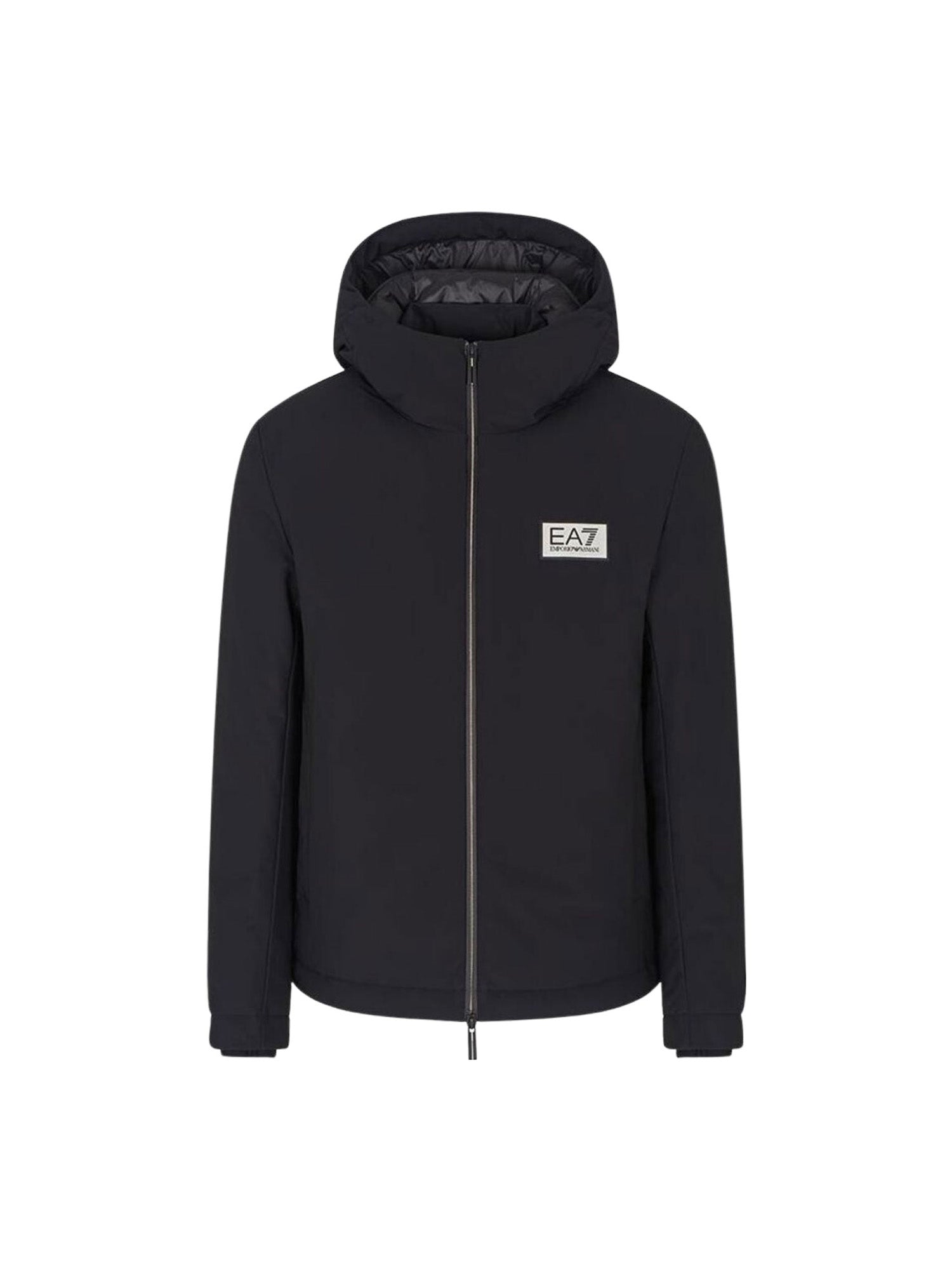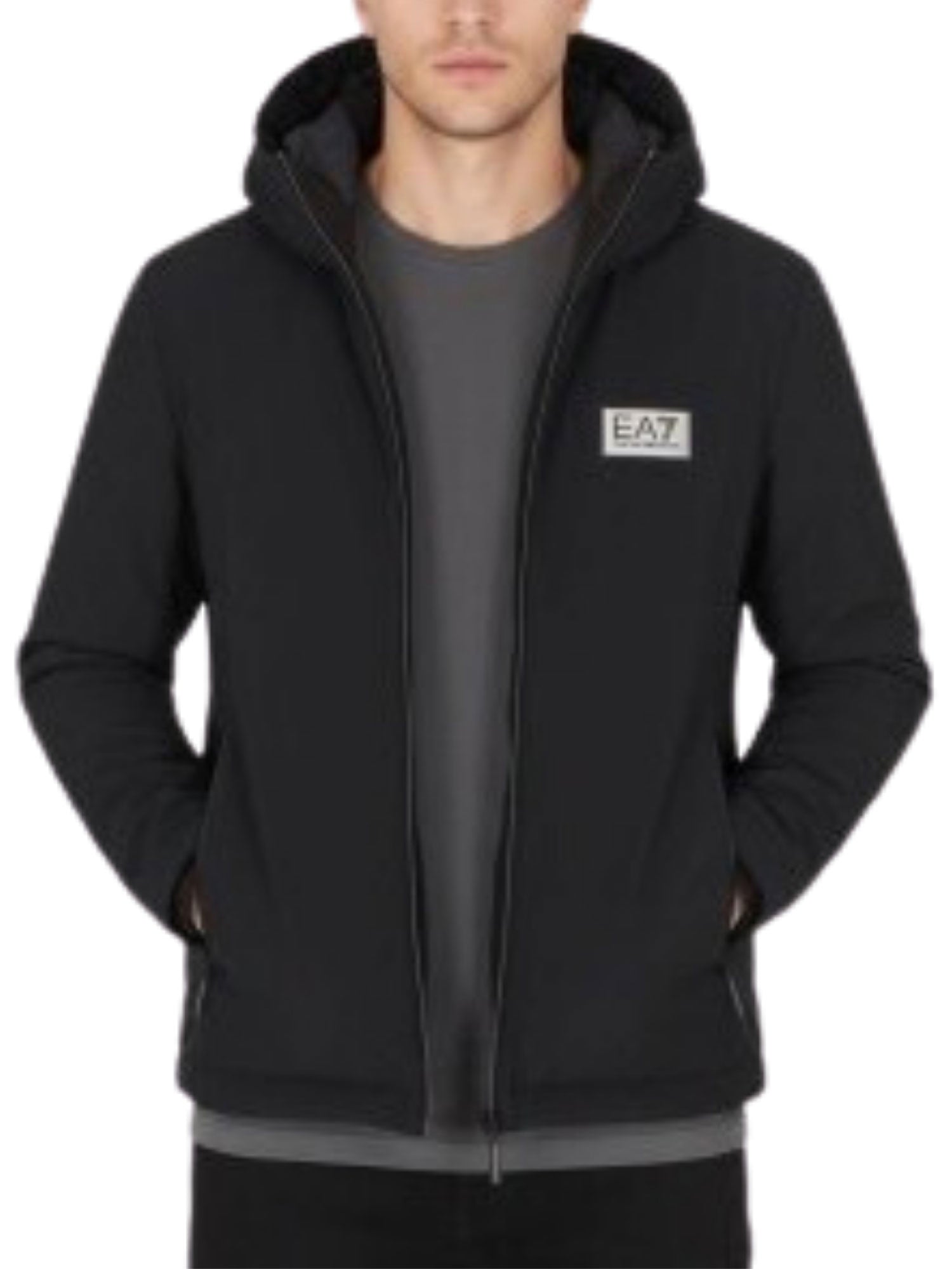Giubbino con cappuccio e zip logo EA7 uomo nero