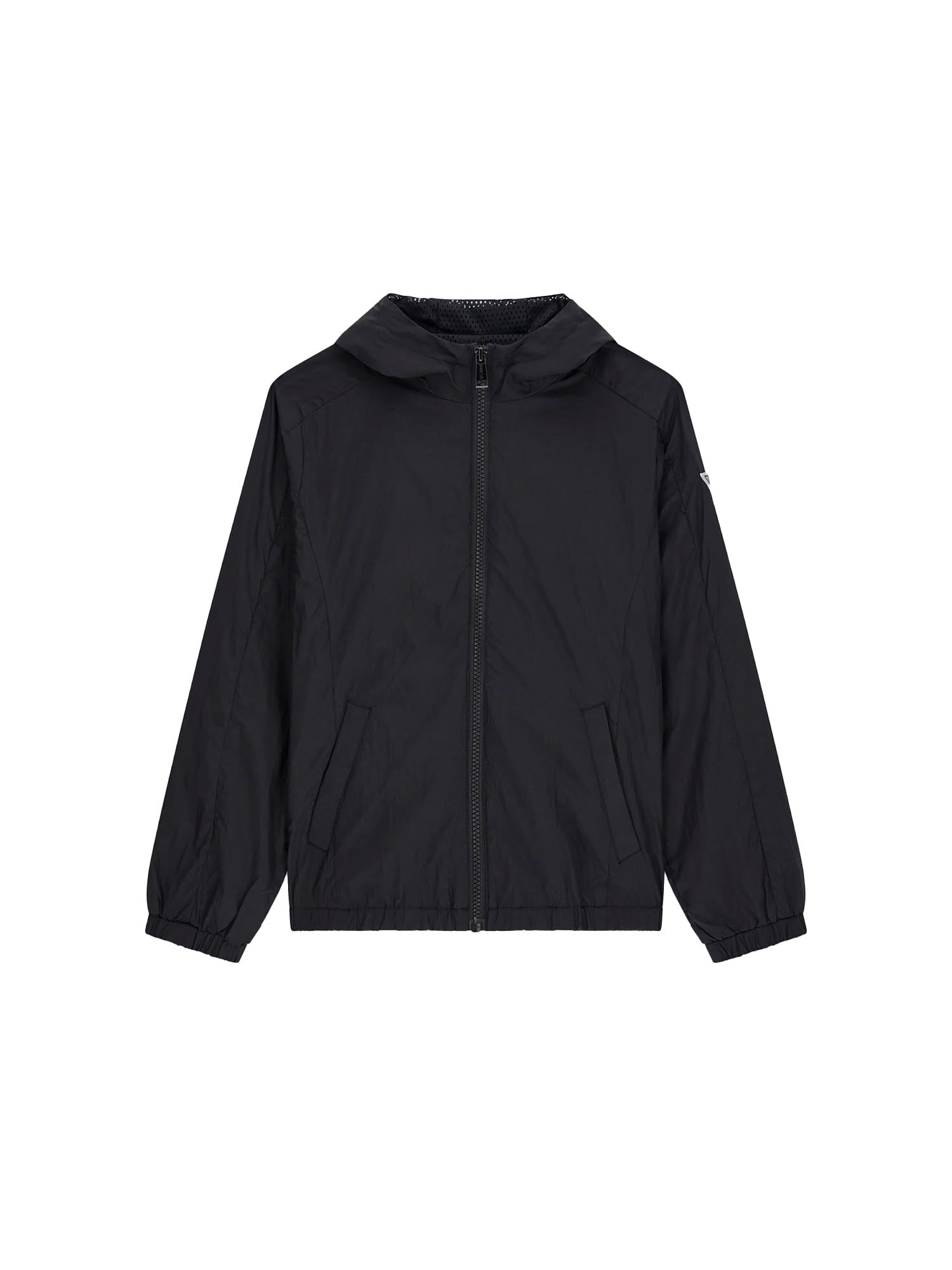 Giubbino Guess Ragazzo con zip e cappuccio logo patch nero