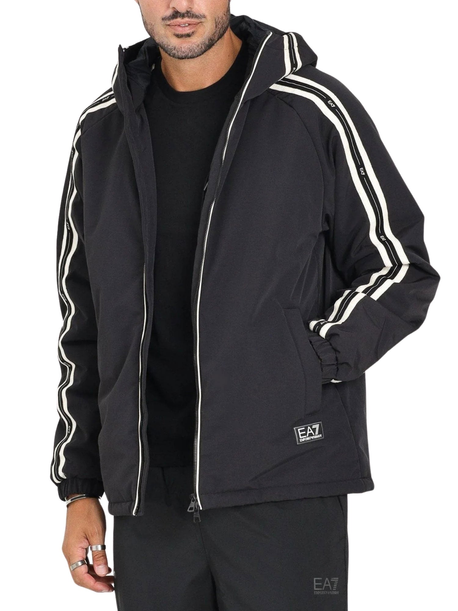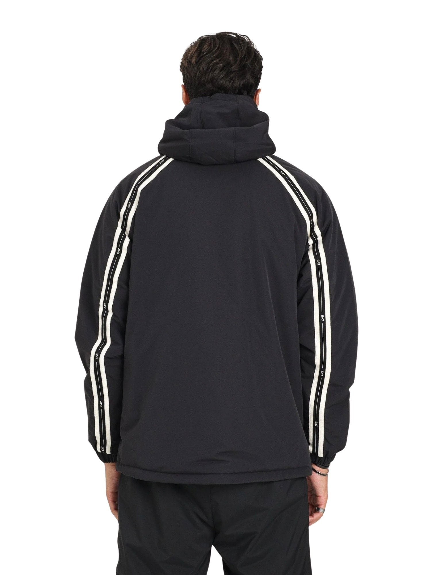 Giubbino con cappuccio e zip tape logo EA7 uomo nero