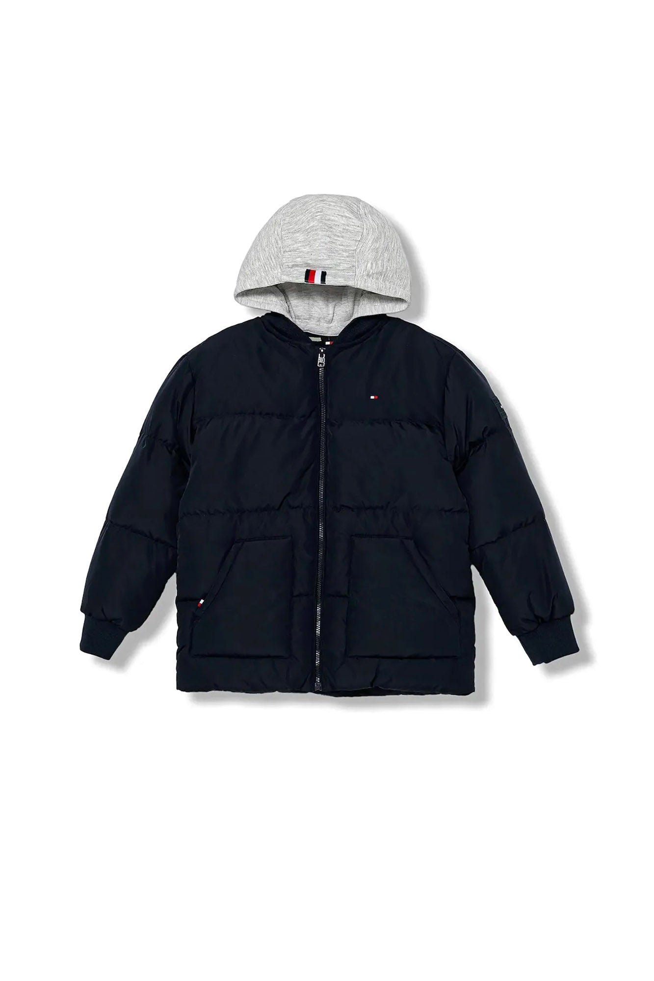 Giubbotto con zip e cappuccio in felpa Tommy Hilfiger bambino logo flag ricamato posteriore blu