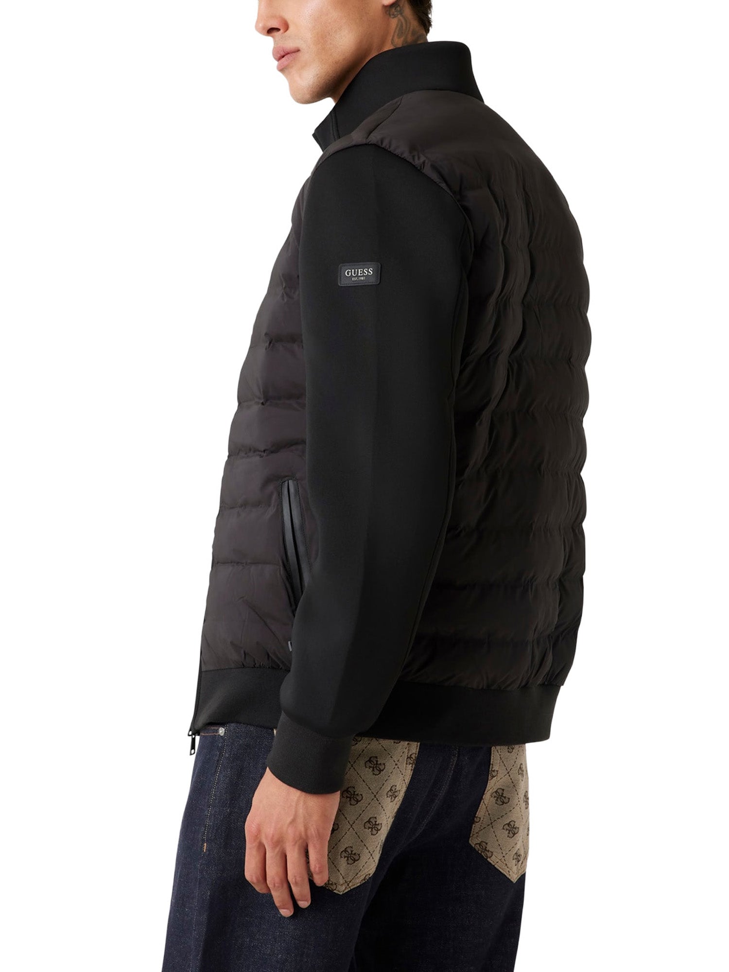 Giubbino bomber con zip Guess uomo in tessuto quilted nero