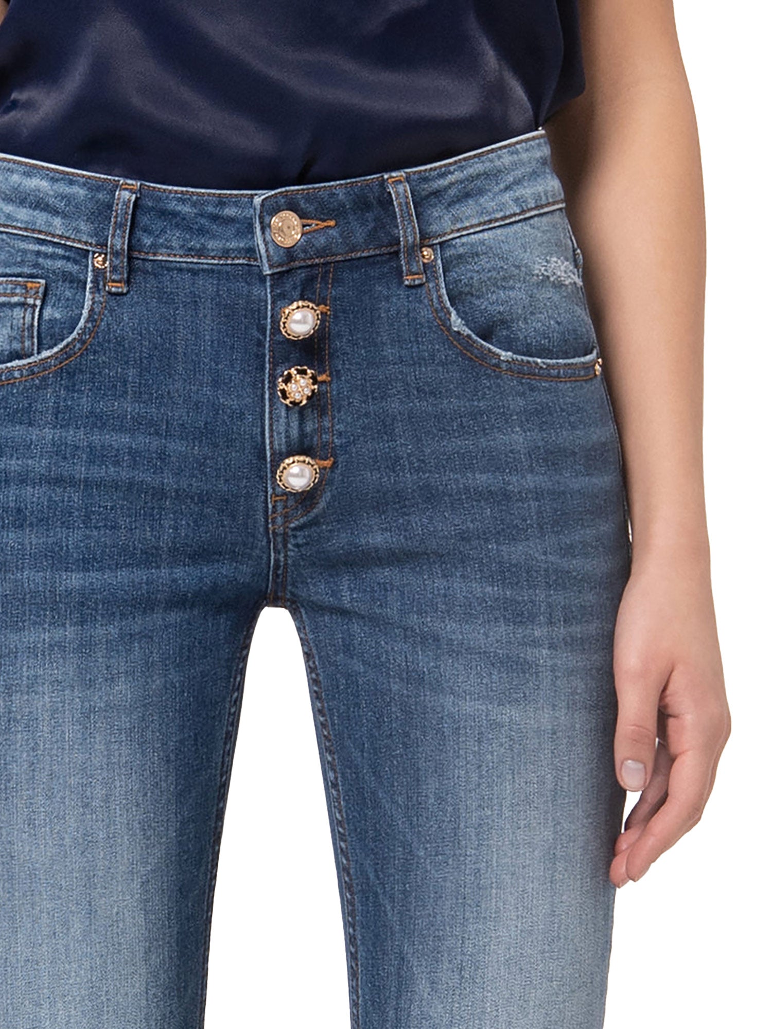 - Chiusura con bottoni gioiello dorati per un look ricercato