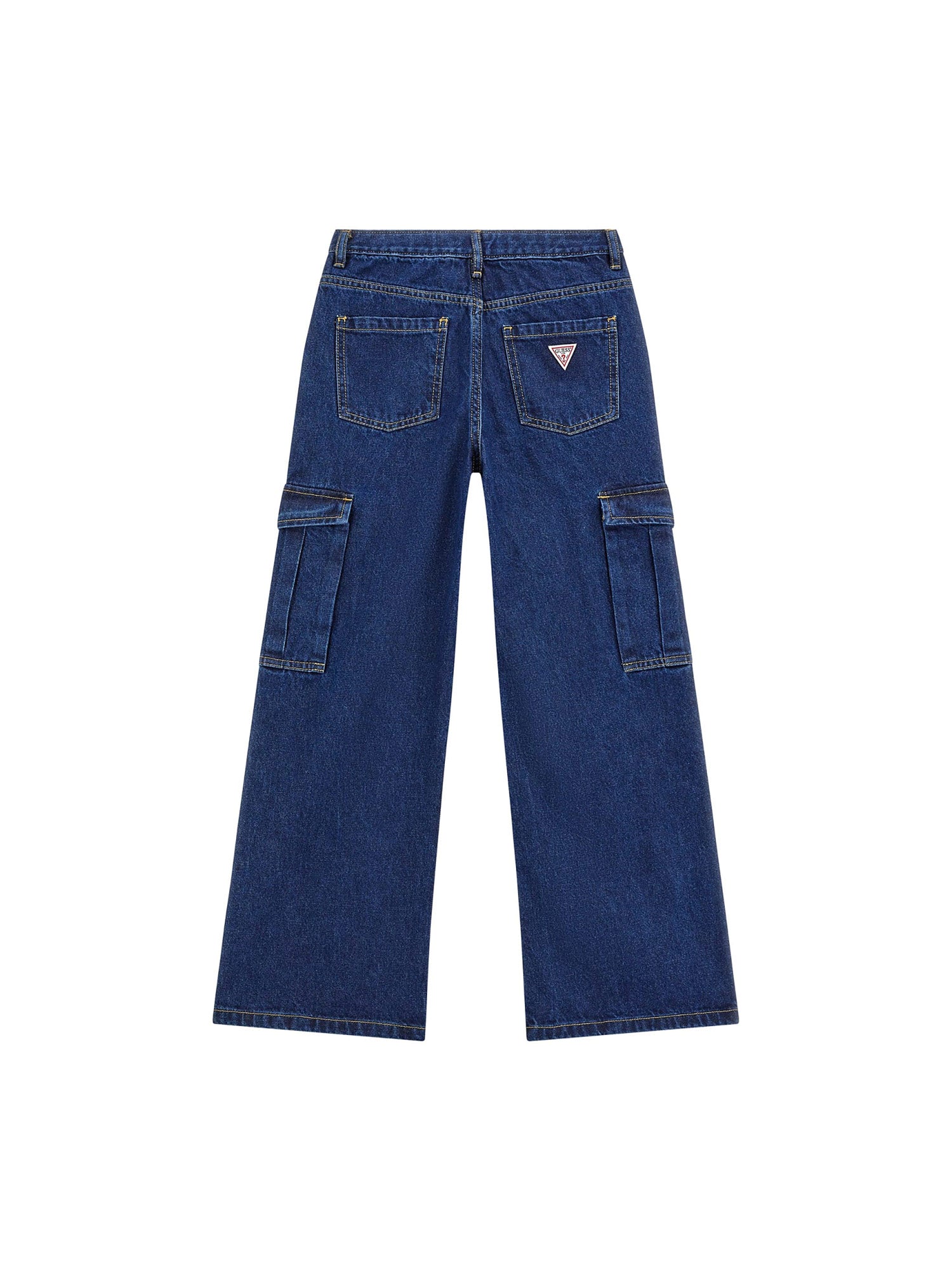 Jeans Guess bambina, modello cargo che combina stile e praticità, perfetto per le piccole fashioniste sempre in movimento. Realizzato in resistente denim blu scuro, offre una vestibilità comoda e versatile, adatta per ogni occasione.