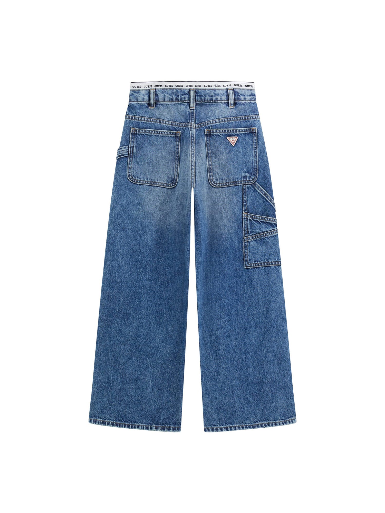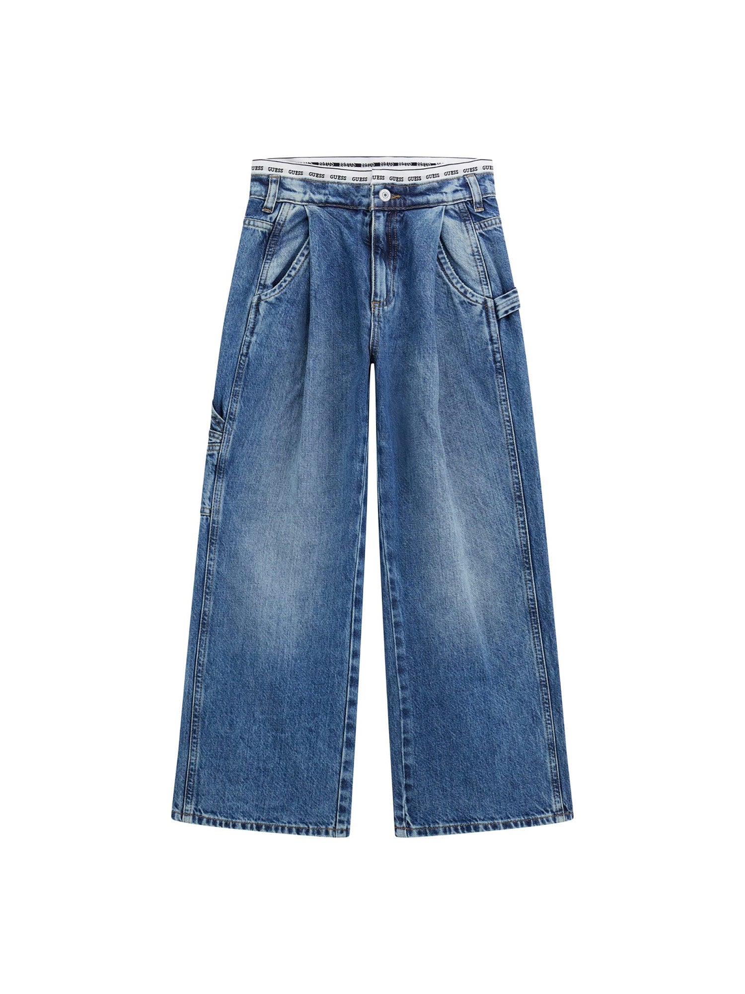 Jeans boyfriend Guess bambina, realizzati in denim, con un design ampio e casual. I jeans presentano una vita elastica e una vestibilità rilassata, perfetti per un comfort duraturo. Il dettaglio distintivo è la banda in vita con il logo Guess, che aggiunge un tocco di eleganza al look casual.