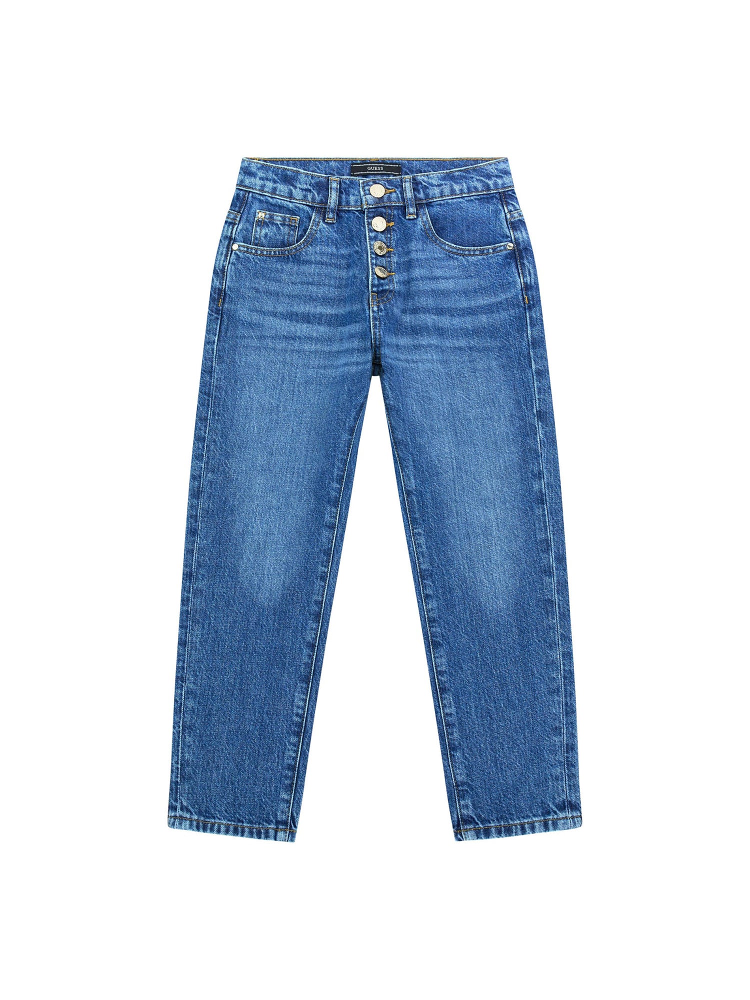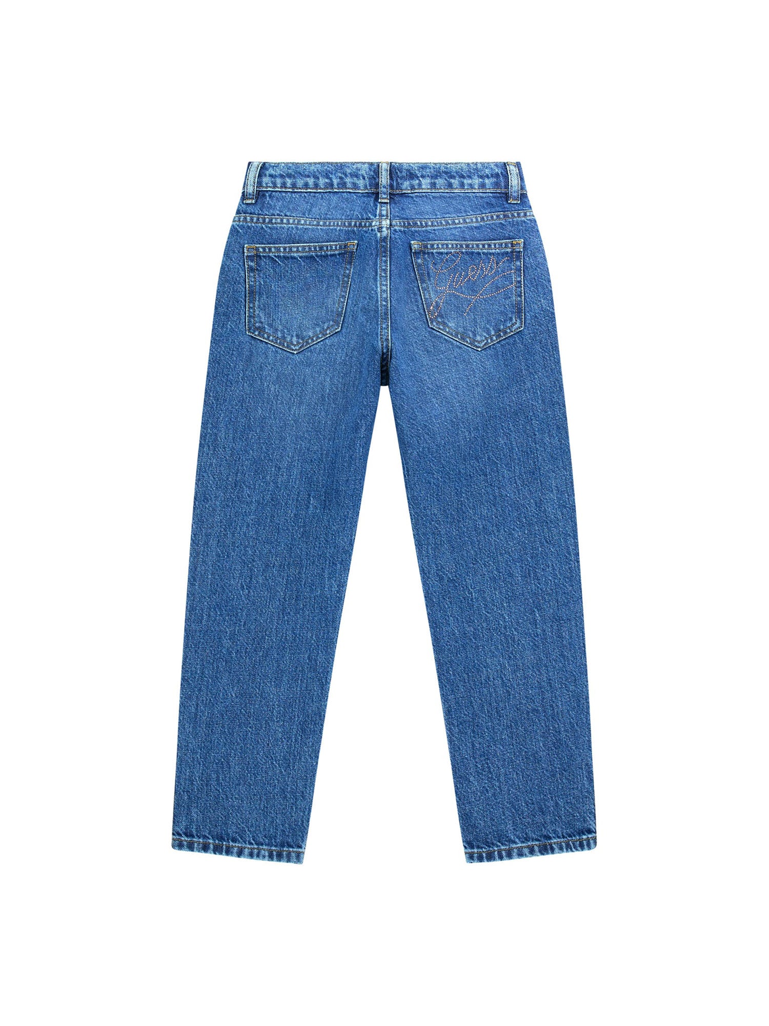 Jeans Guess bambina un modello casual, con una vestibilità dritta e un design moderno. Il tessuto denim presenta un leggero effetto slavato e qualche dettaglio strappato, dando ai jeans un look vissuto e autentico.