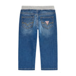 Jeans Guess in misto cotone lavaggio medio, dal carattere giocoso con deliziosi patch frontali teddy che rendono il look sfizioso, smorzato dalla fascia elastica in vita che lo rende comodo e adatto per occasioni più sportive.