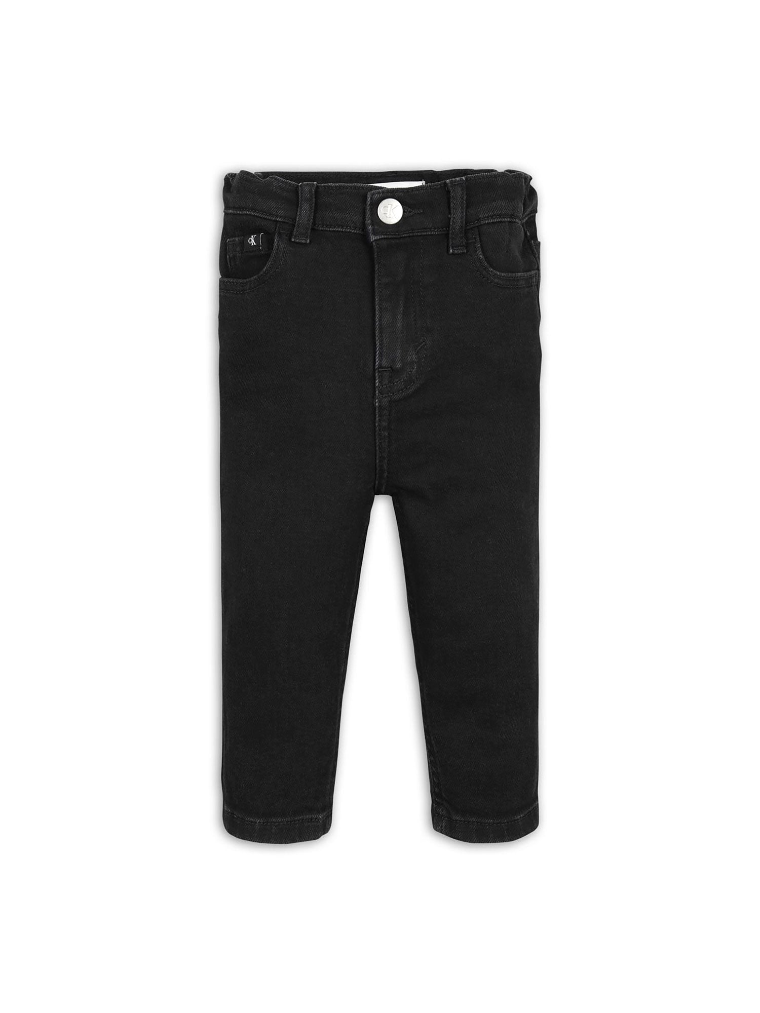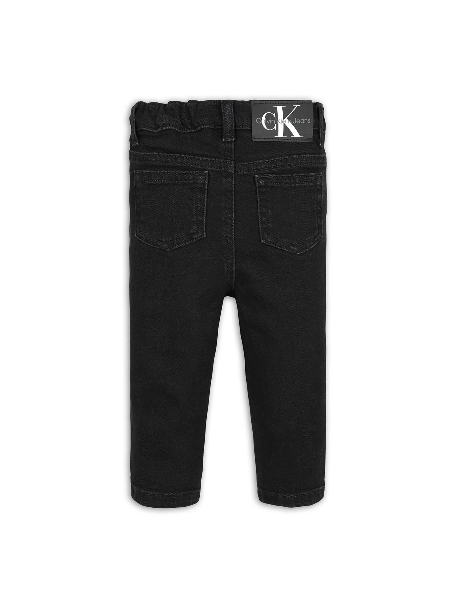 Jeans Calvin Klein neonato in denim nero dal taglio skinny, ideali per il guardaroba dei più piccoli. Il modello presenta una vita elasticizzata per un comfort superiore e una chiusura con bottone e zip. Il design classico con cinque tasche è impreziosito dal logo CK applicato sulla parte posteriore, che aggiunge un tocco distintivo. Perfetti per un look casual ma stiloso, si abbinano facilmente a magliette o felpe.