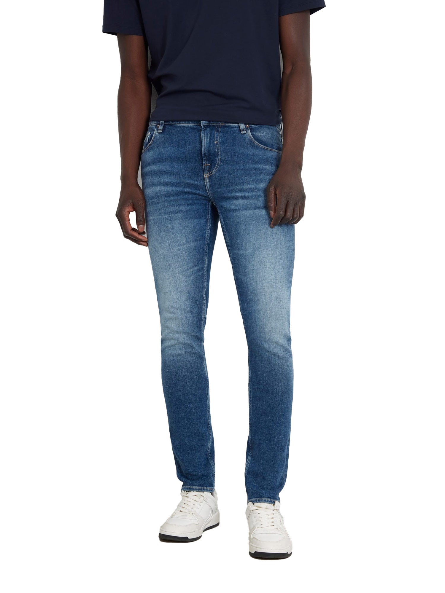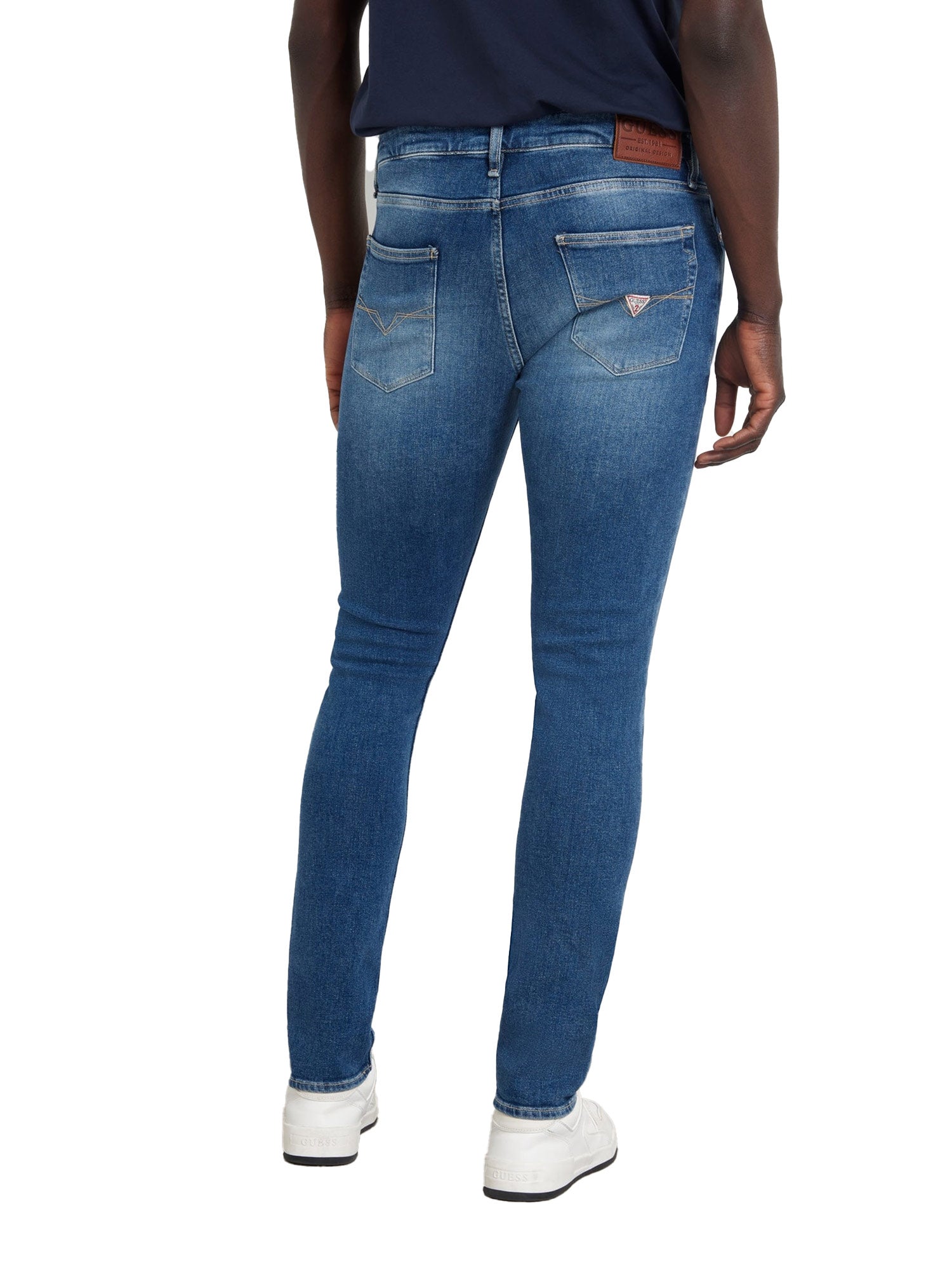 Jeans Guess Uomo, Modello Argon Slim Fit, dal design moderno e versatile. Con un lavaggio medio e dettagli classici, con logo ricamato sulla tasca posteriore.