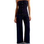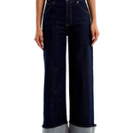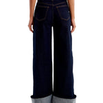Jeans Vicolo wide leg in denim scuro. Il maxi risvolto sul fondo aggiunge un dettaglio originale e distintivo, perfetto per completare outfit urban chic.