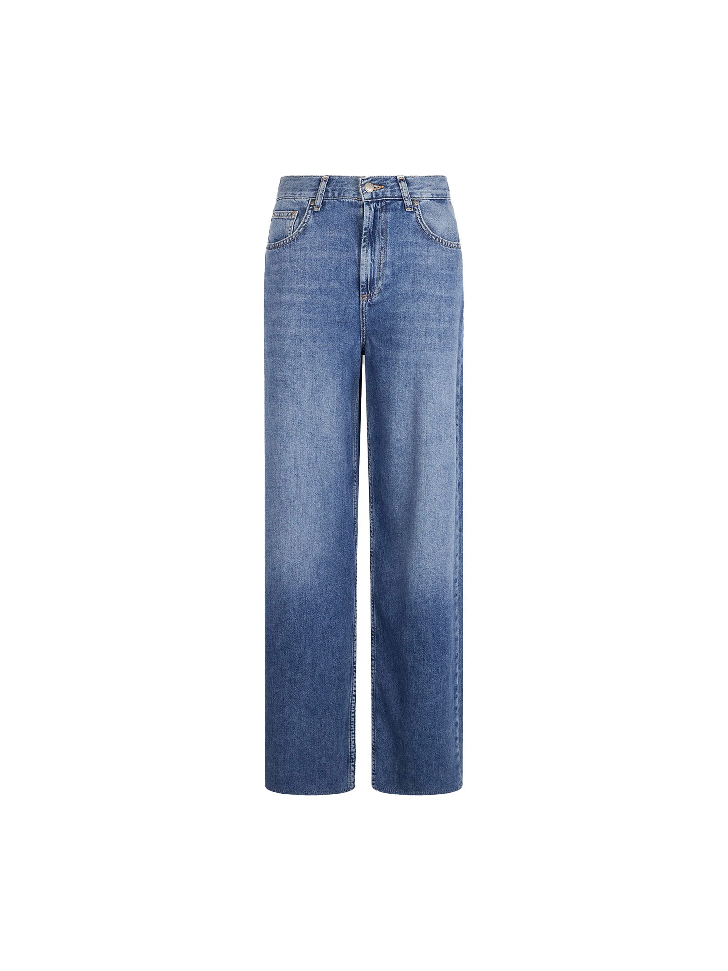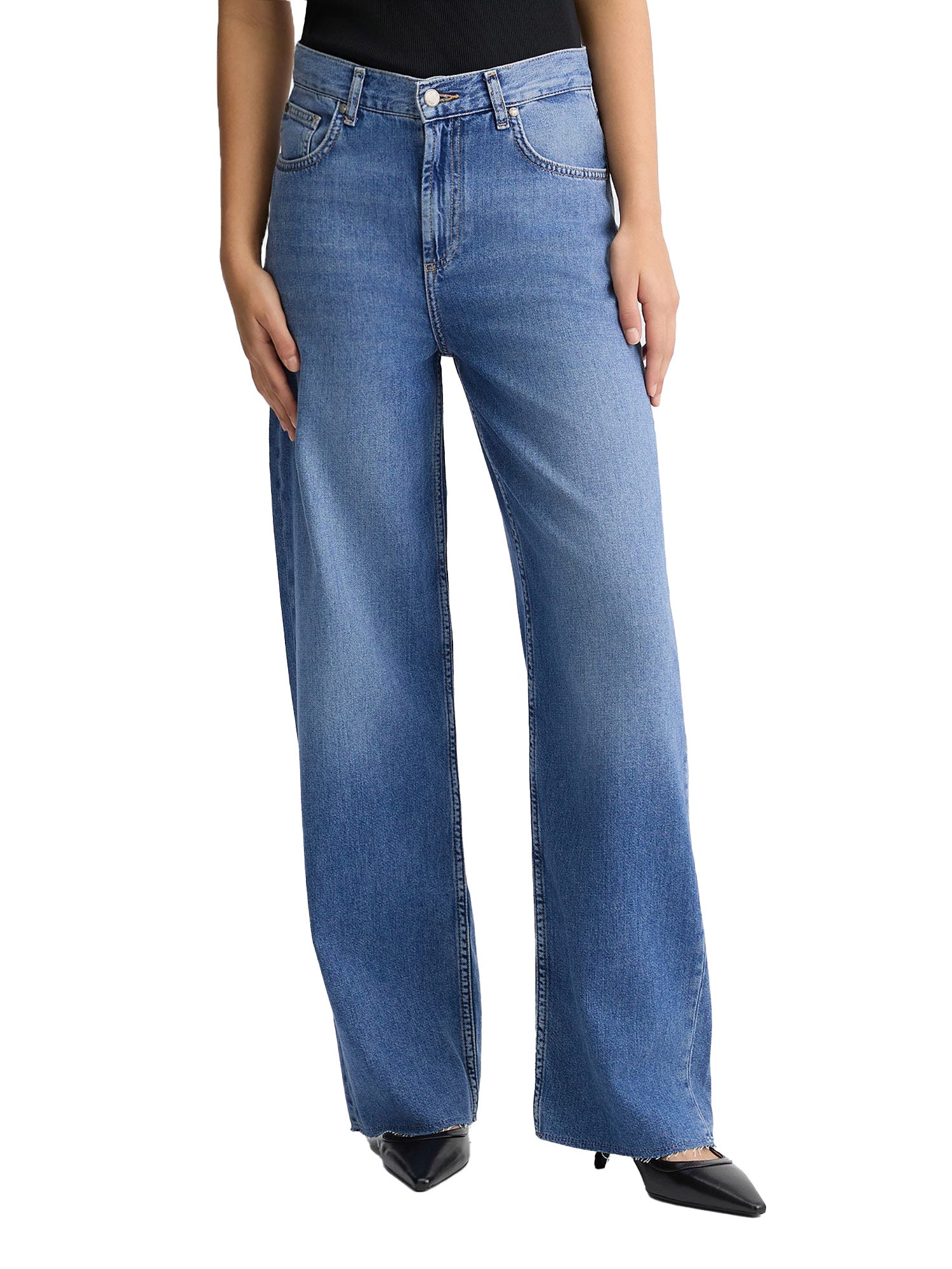 Jeans wide leg con piega stirata denim medio
