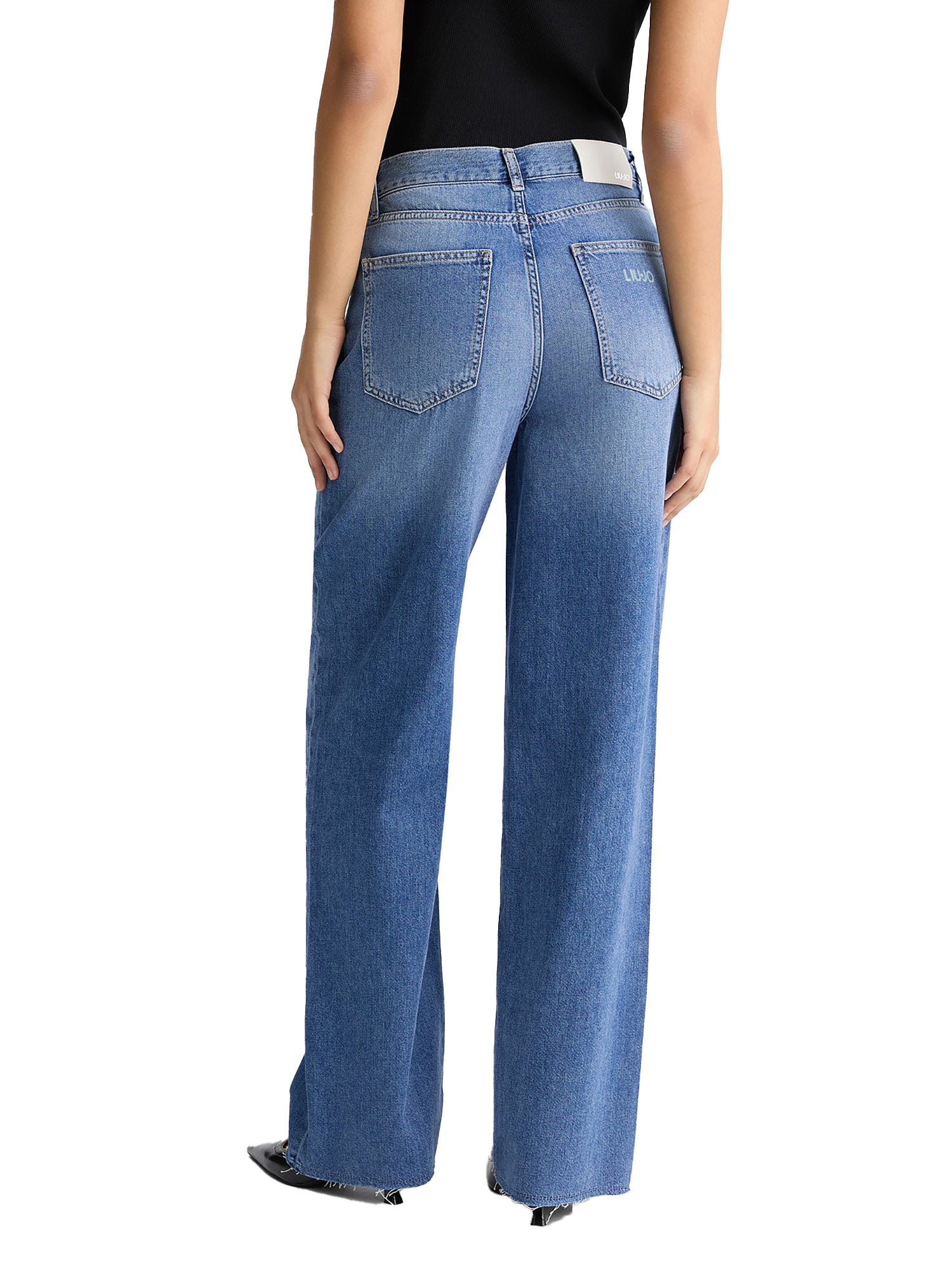 Jeans Liu Jo ,modello wide leg in denim di cotone e lavaggio used, con piega stirata. Un capo versatile, pensato per completare i tuoi look quotidiani.
