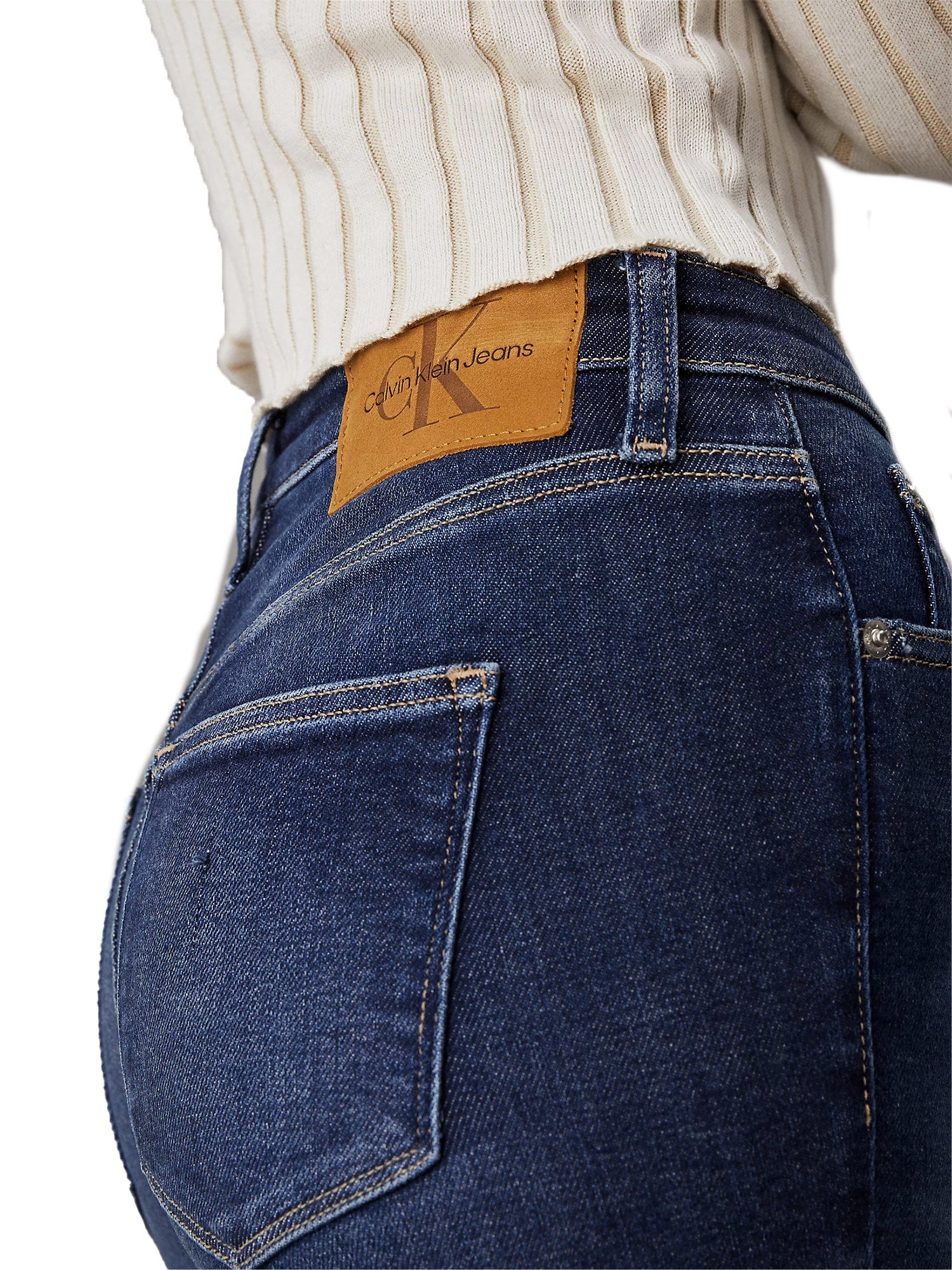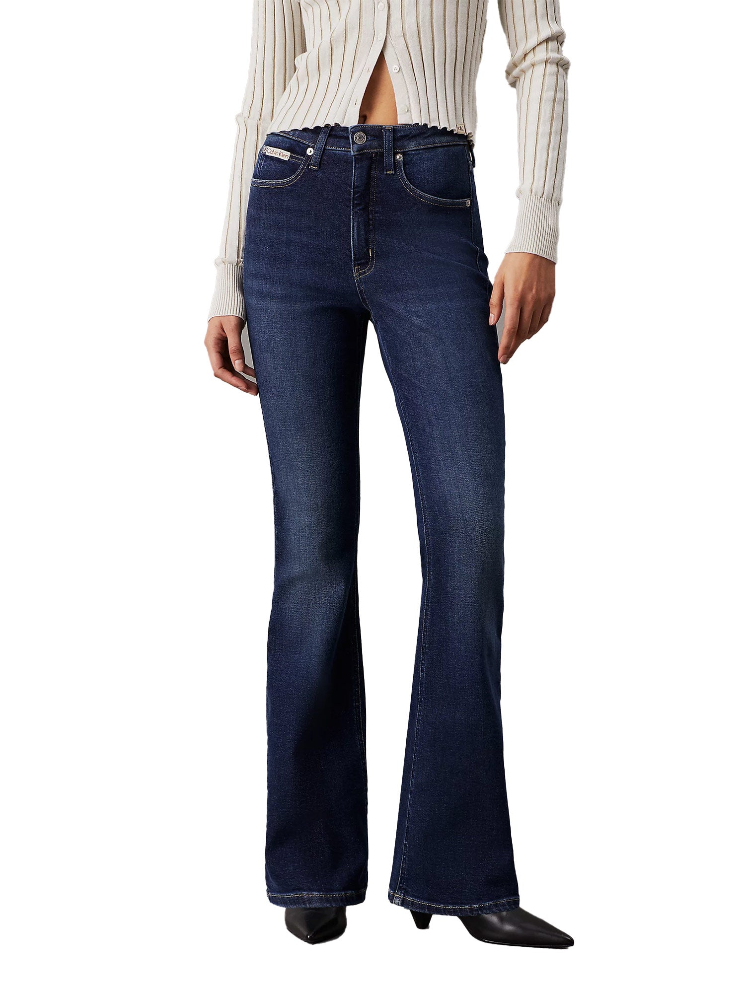 Jeans Calvin Klein Jeans, modello a gamba leggermente svasata e vita alta, con logo posteriore, perfetti per un look casual e raffinato.