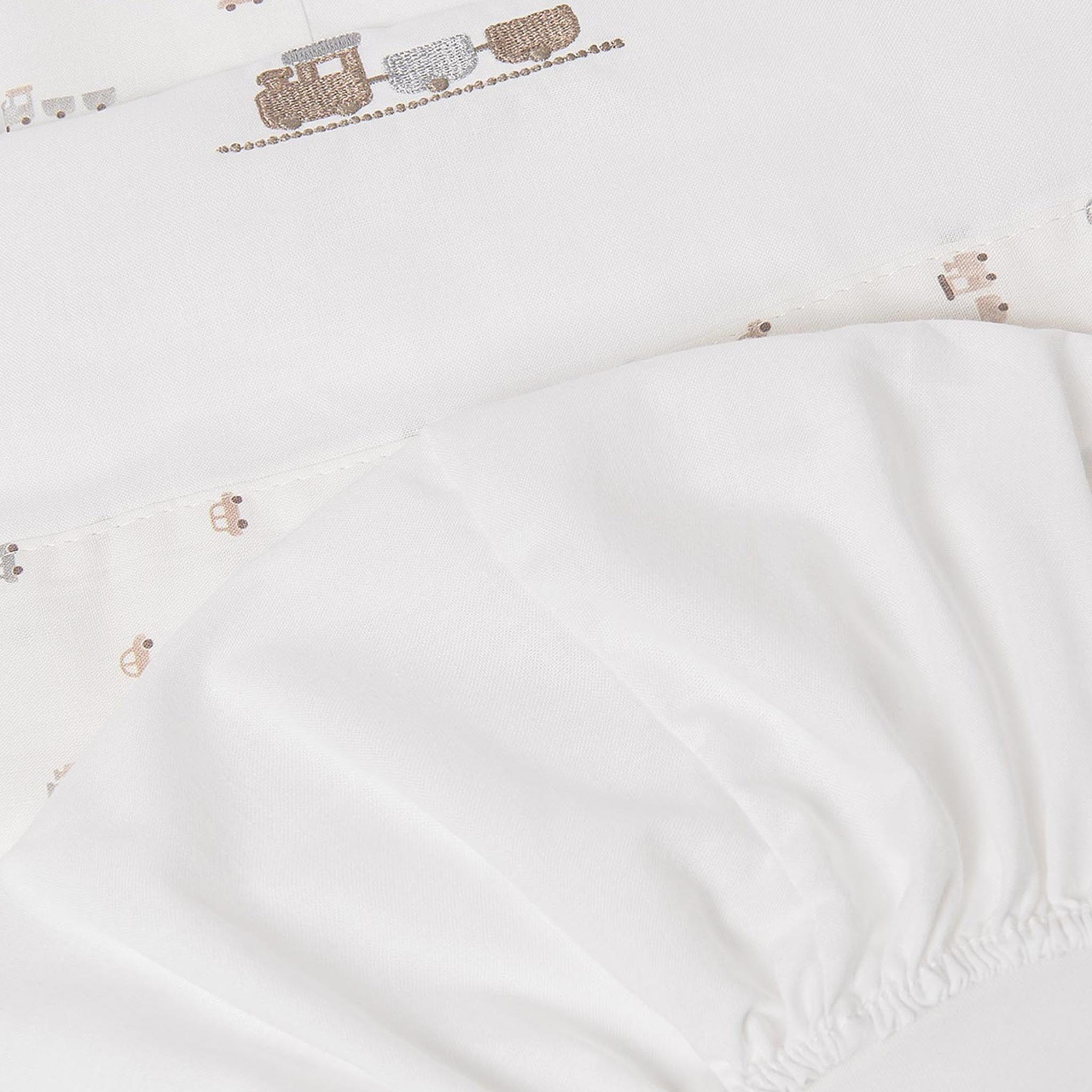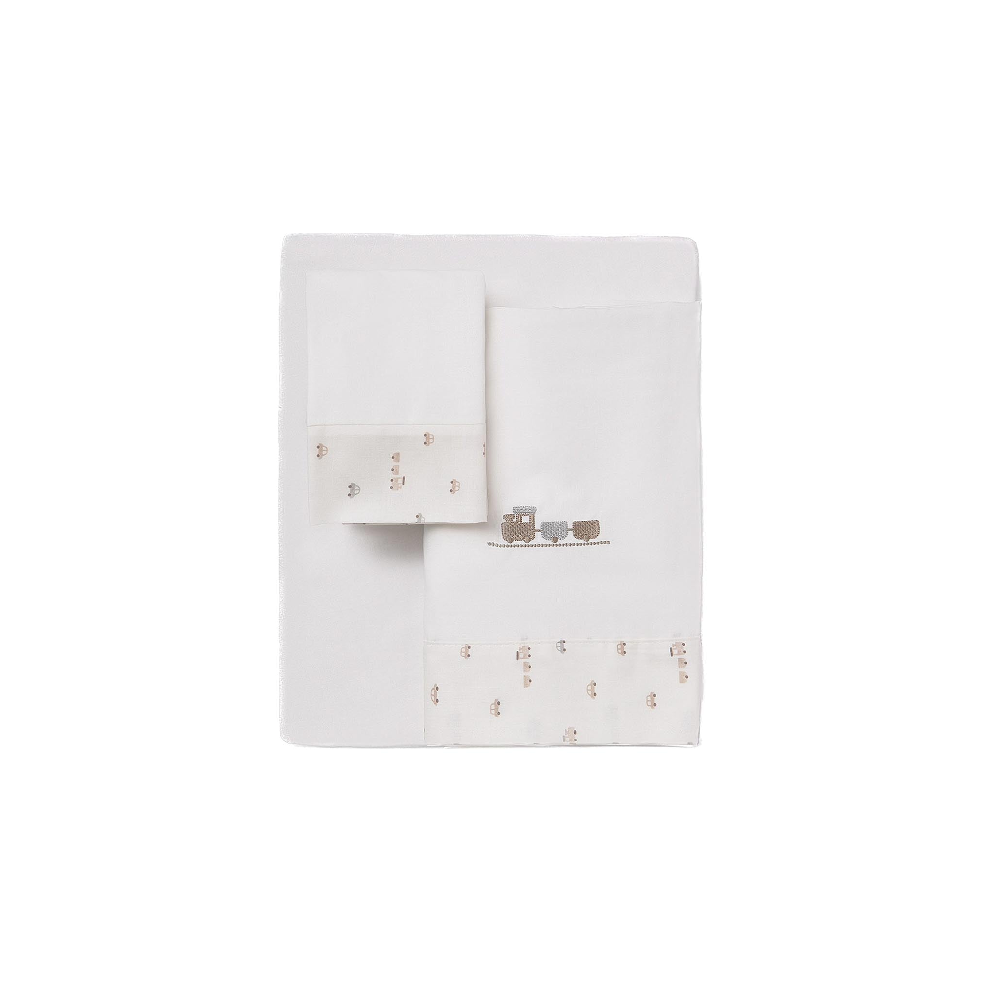 Set lenzuola 3 pezzi in cotone con trenino panna multi