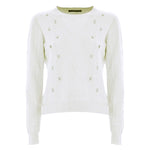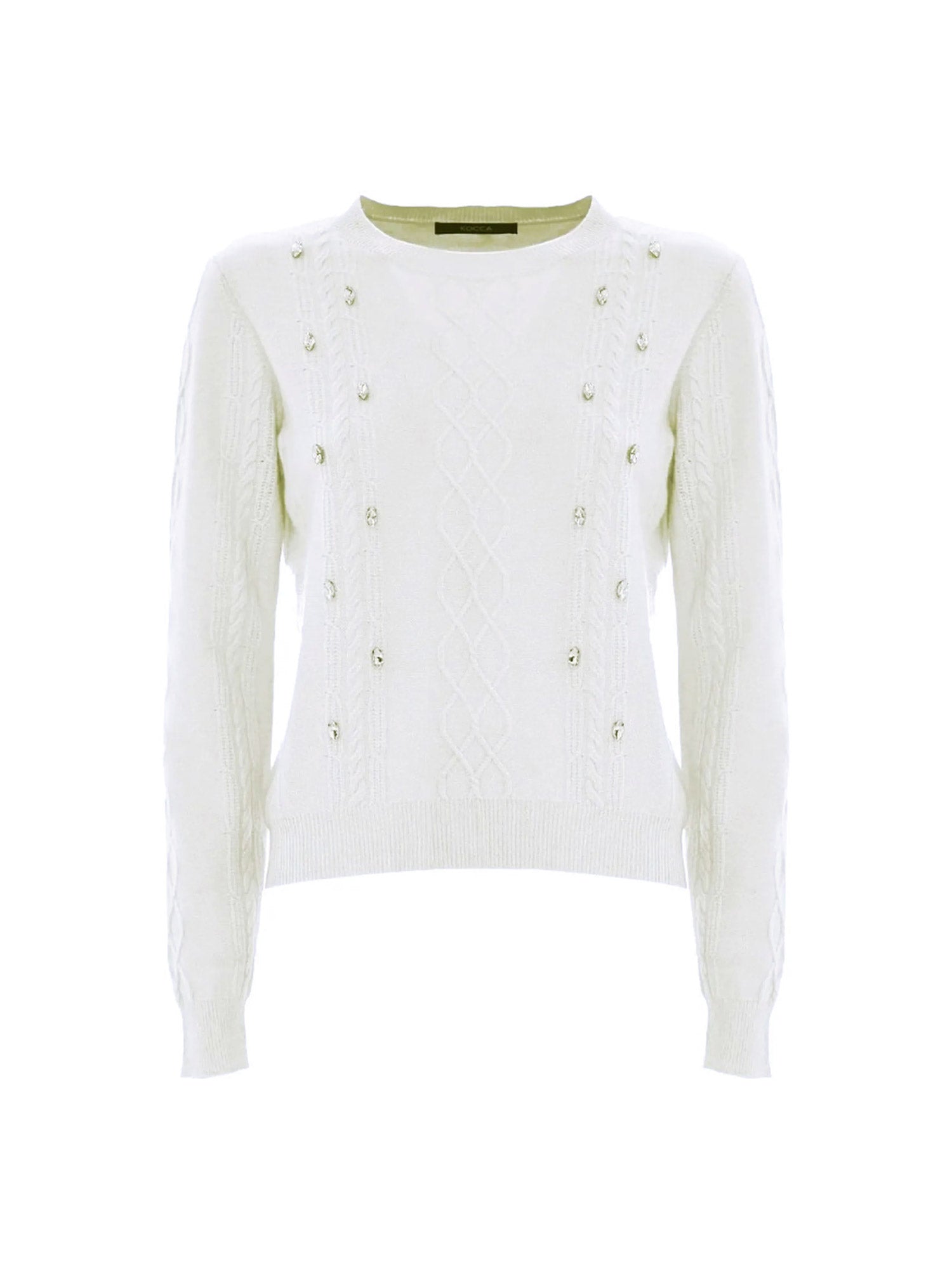 Maglia girocollo Regis firmata Kocca. Modello in morbida maglia in lana con lavorazione a intrecci e applicazione strass.
