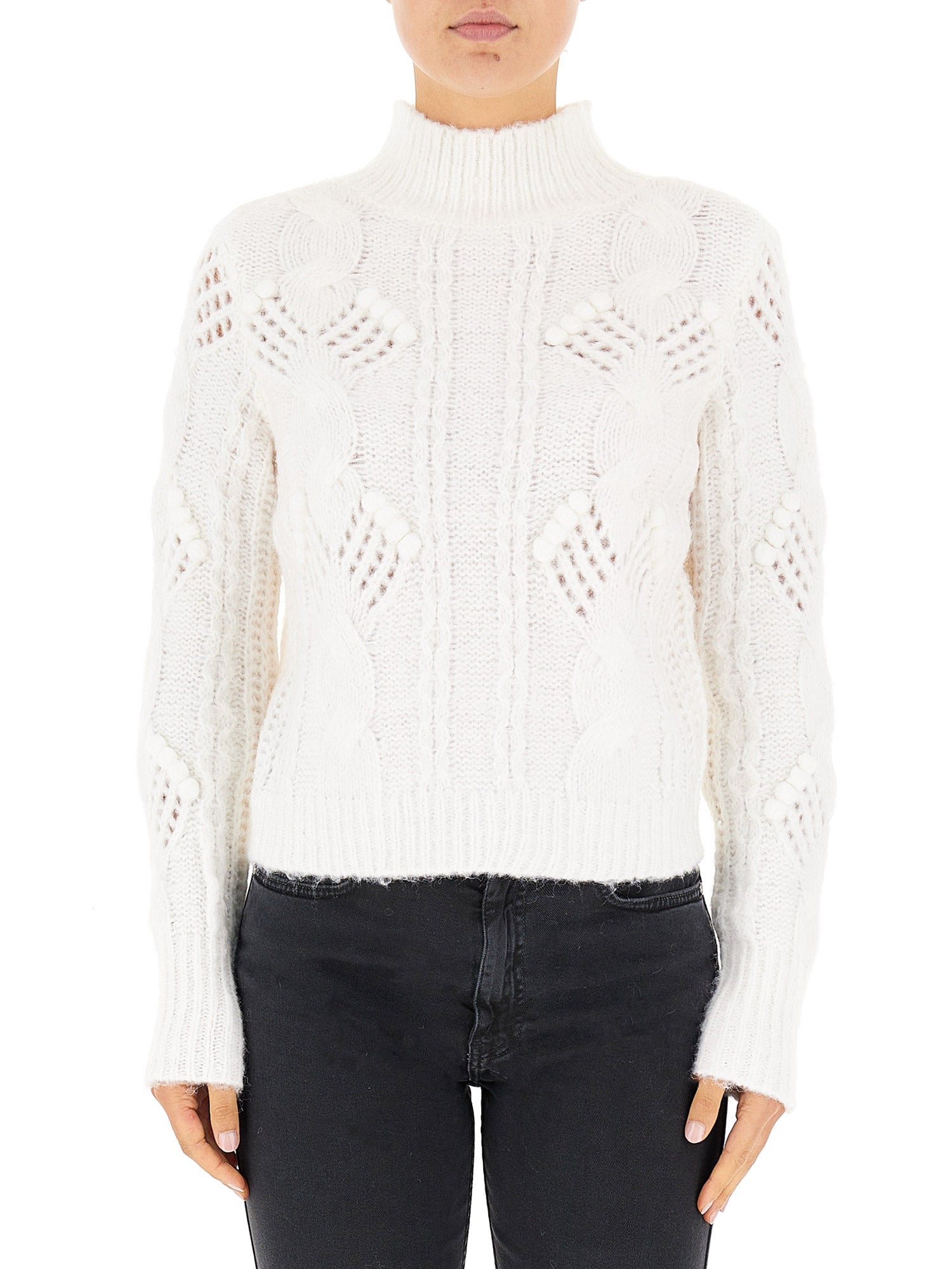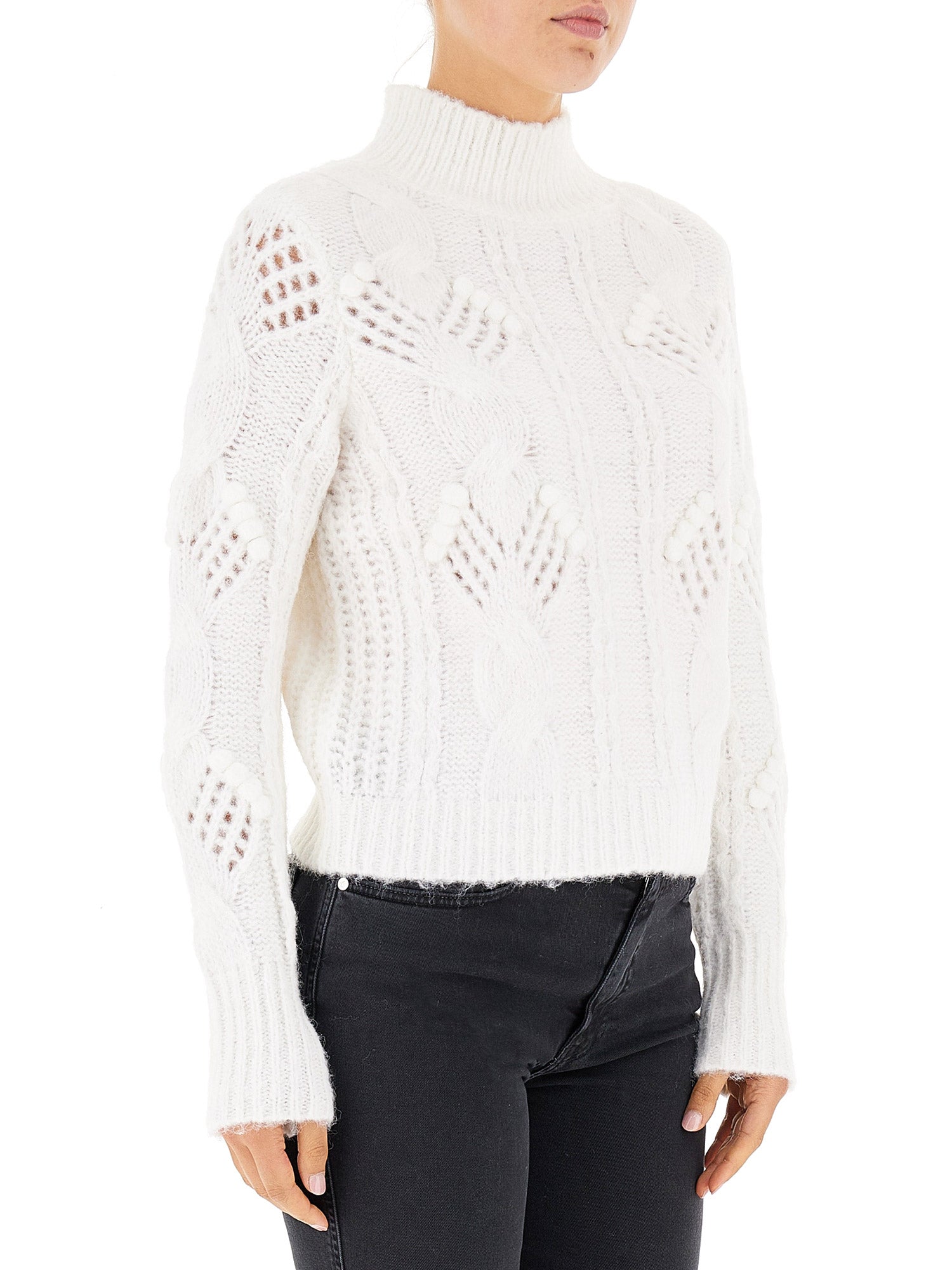 Maglia dolcevita Orsolina firmata Kocca. Lavorazione a intrecci con dettagli 3D ideale per le giornata più fredde.