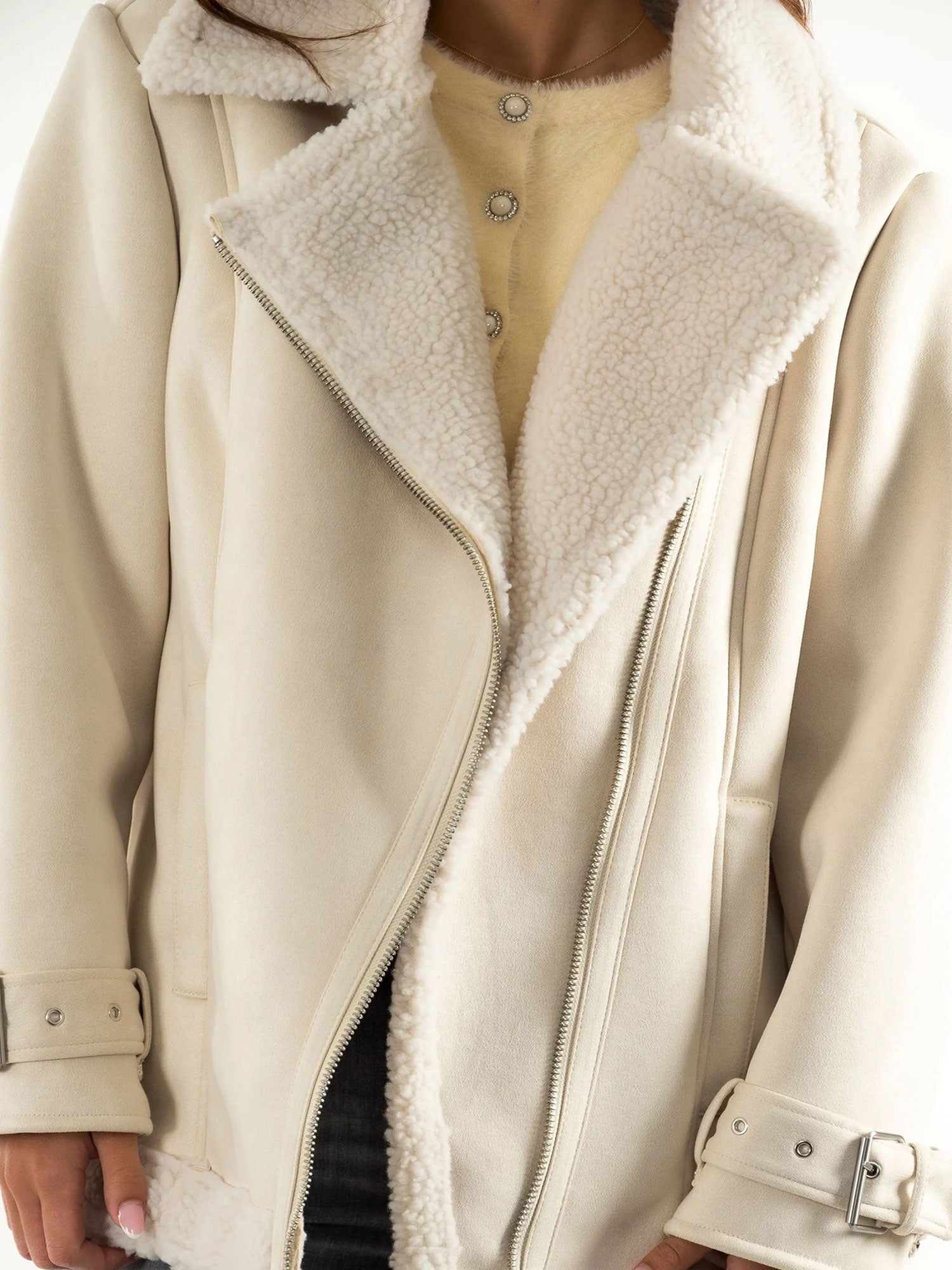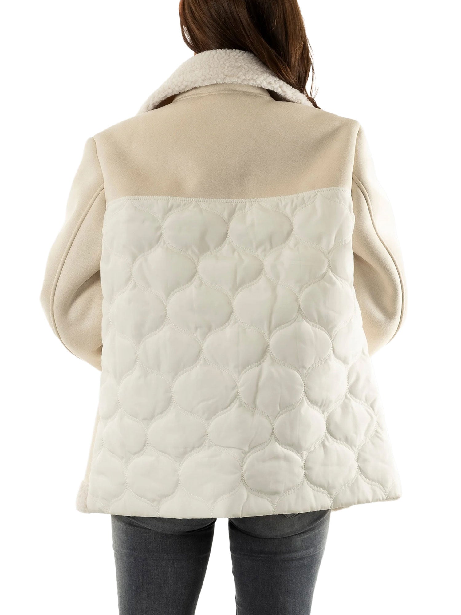 Cappotto montone Guess donna Maristella con collo ecopelliccia crema