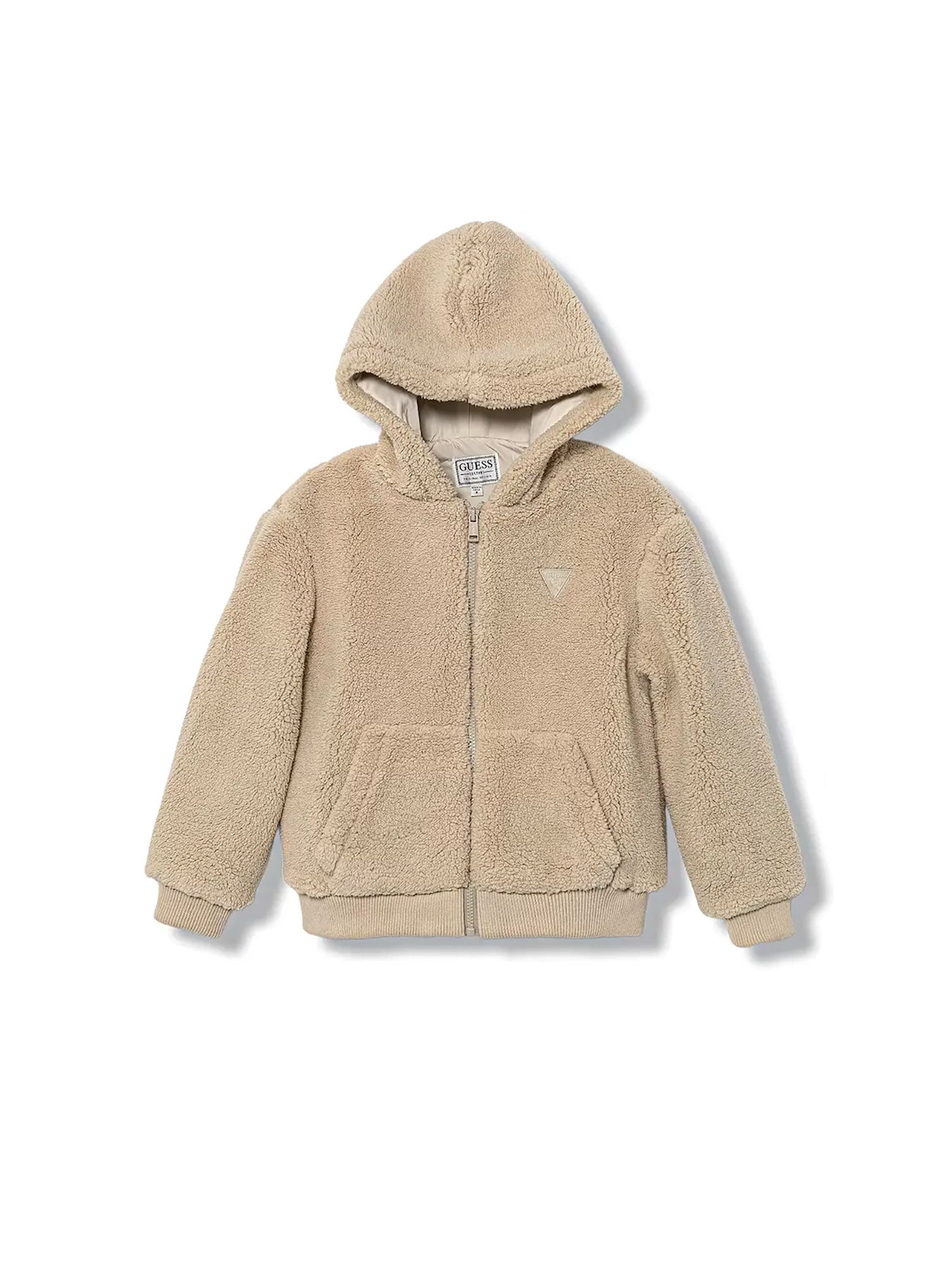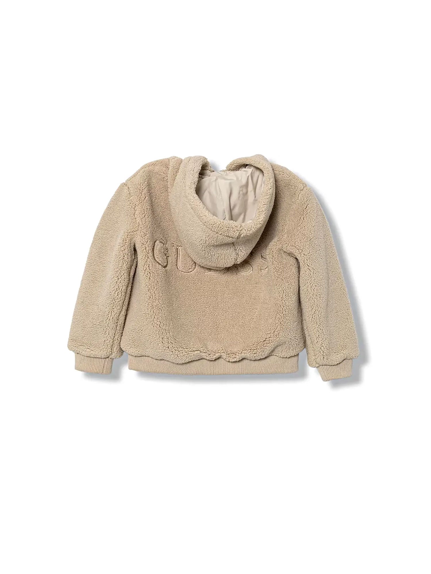 Giacca teddy Guess ragazza con zip e cappuccio beige