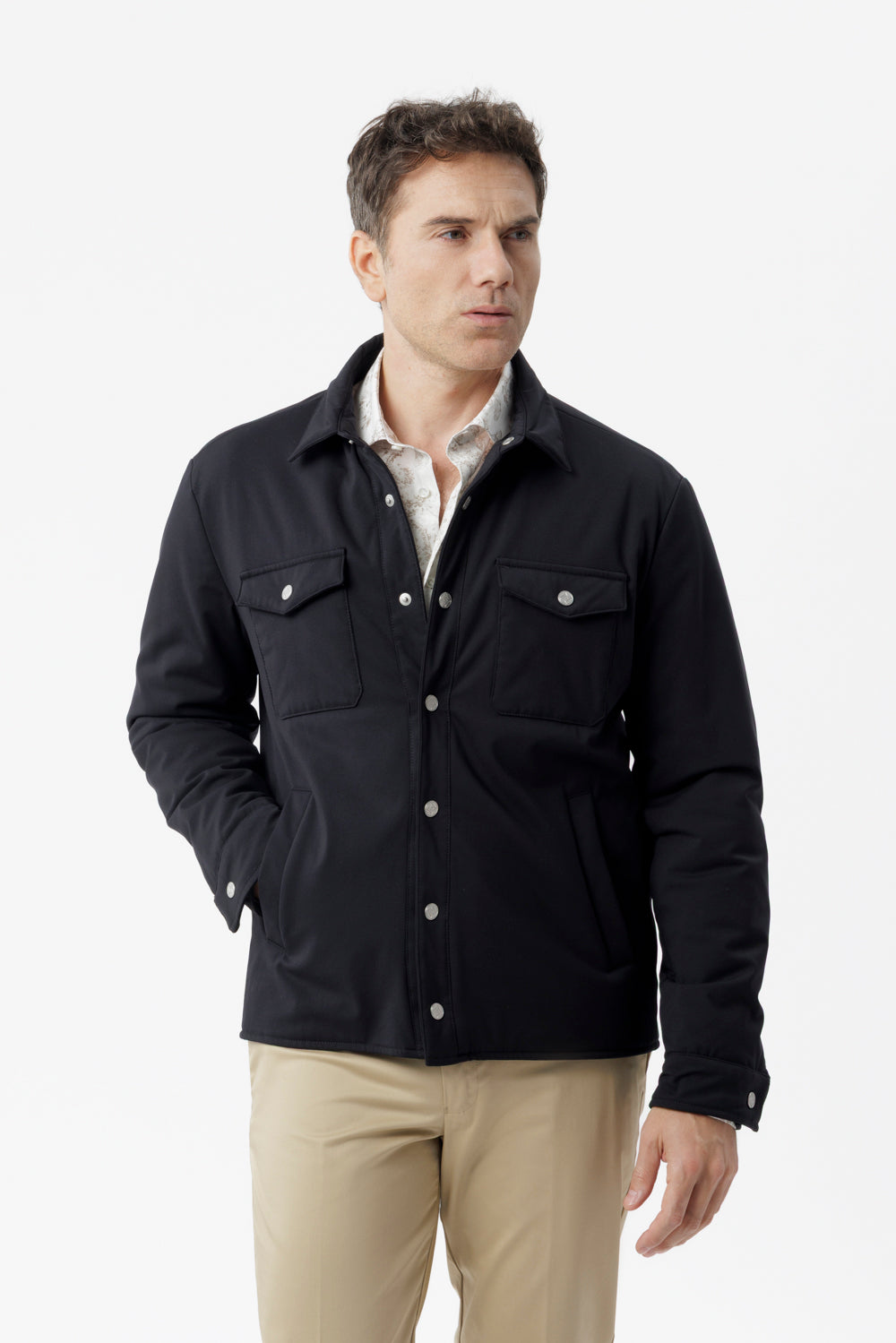 Un capo trasversale, a metà tra camicia e giacca, pensato per accompagnare con stile contesti dinamici e temperature variabili.